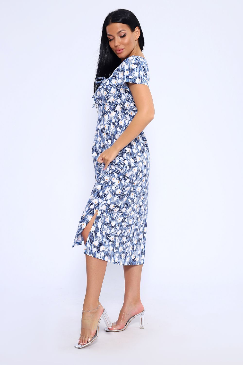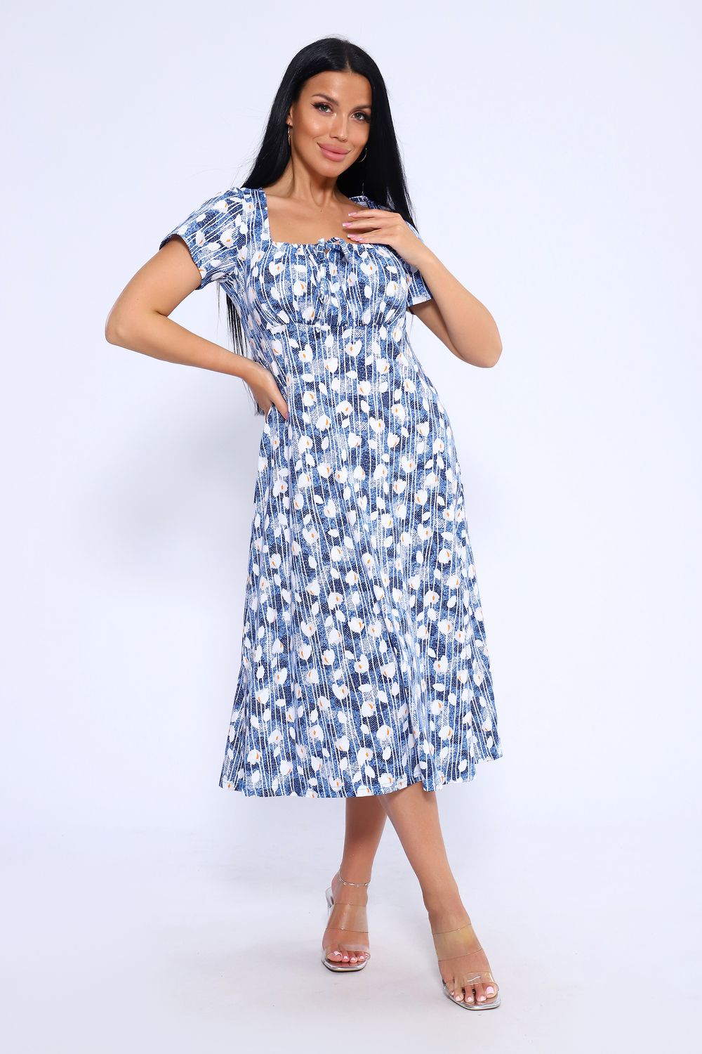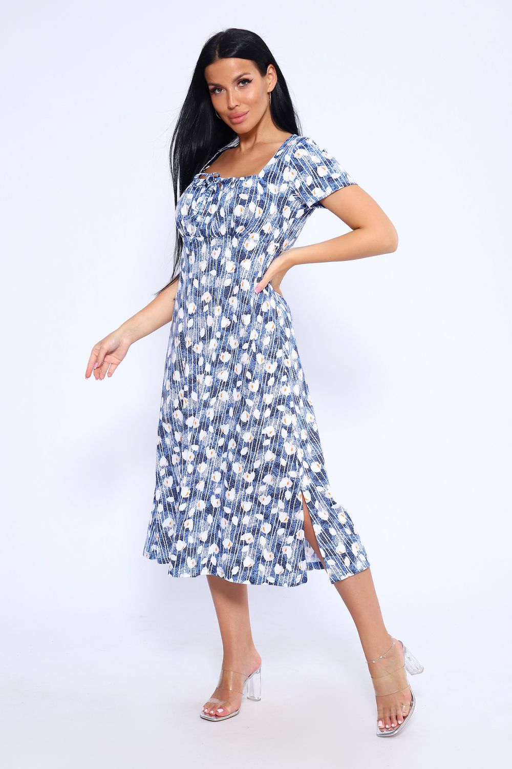 Длинное романтичное платье с короткими рукавами, декорировано квадратным вырезом декольте с завязками на груди. Милое, воздушное платье ниже колена с разрезами по боковым швам. Платье имеет свободный крой А-силуэта, который подходит для разного типа фигуры. Модель подойдет для прогулок, отдыха на пляже.