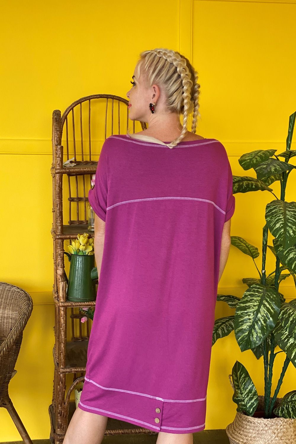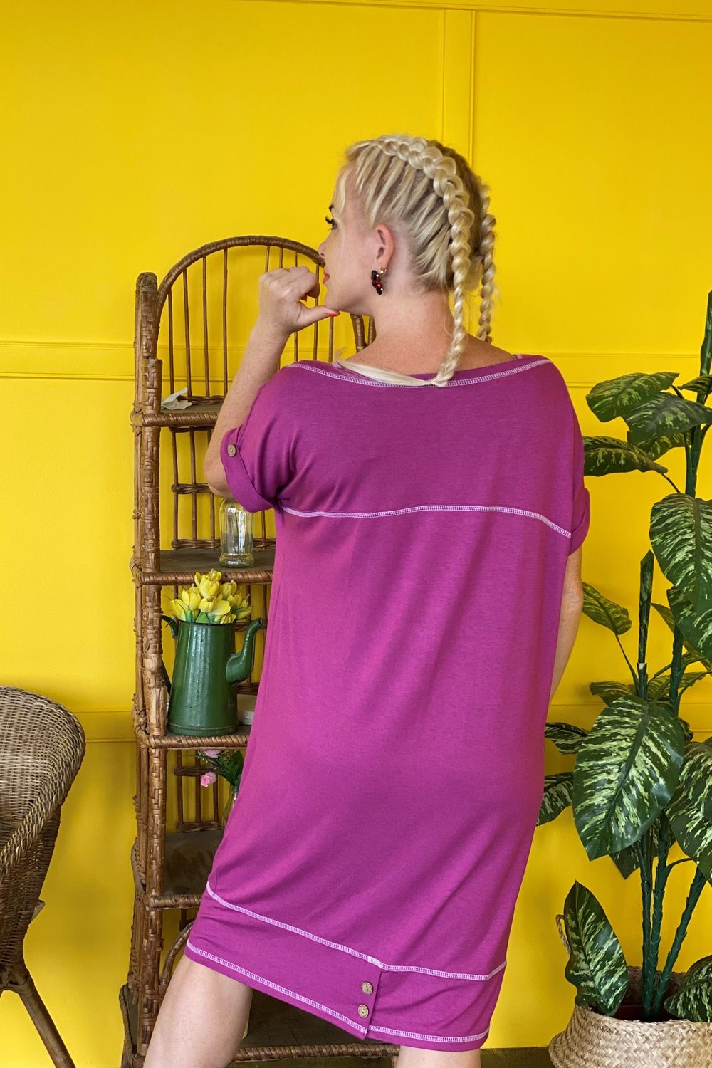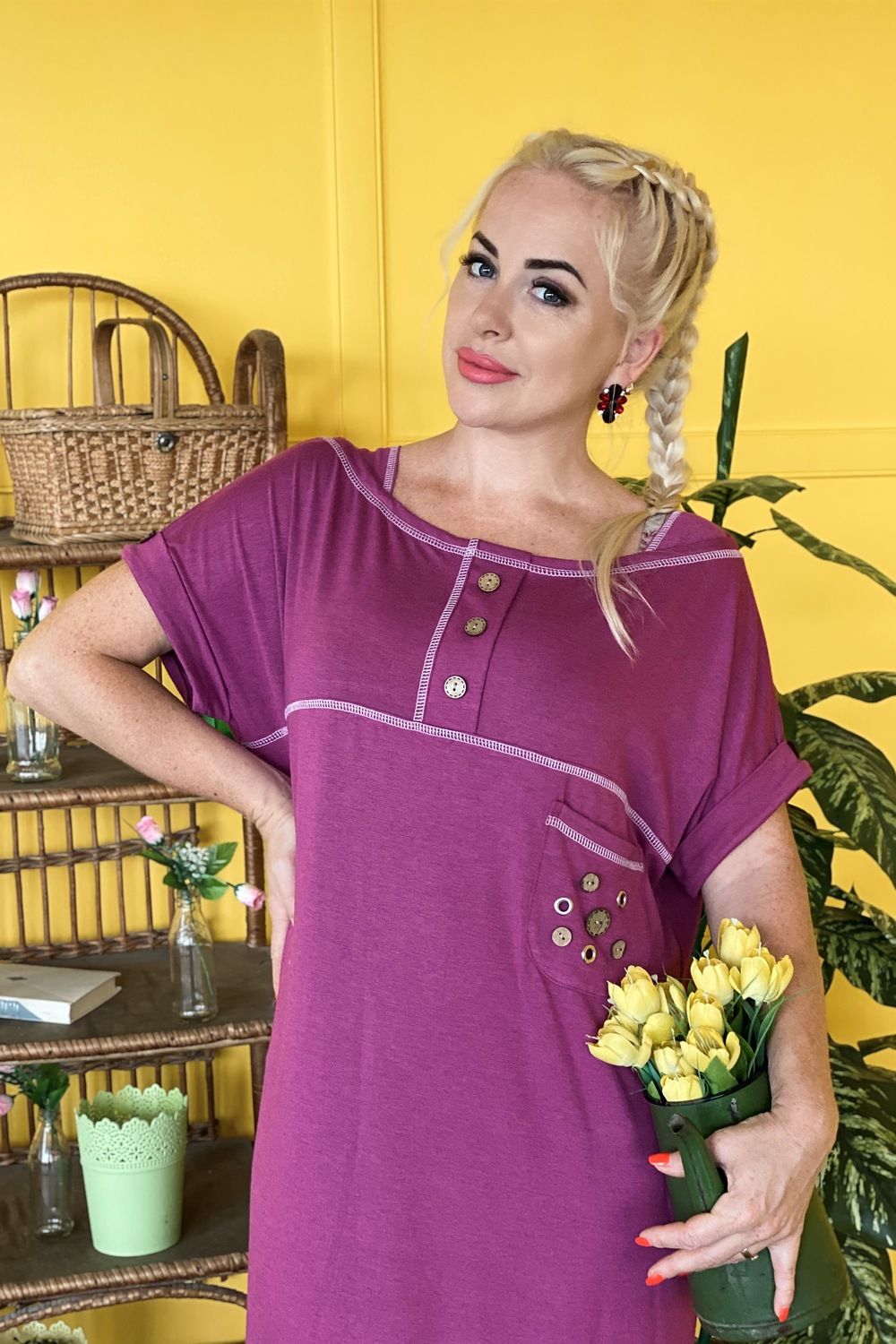 Платье женское прямого силуэта. На полочке и спинке кокетки. Рукав цельнокроенный с притачной манжетой на пуговице. На кокетке полочки планка с тремя декоративными пуговицами. На полочке нагрудный карман с тремя люверсами и четырьмя пуговицами. Шов притачивания нижней части платья, швы притачивания кокеток, планки и горловина отделаны контрастной декоративной строчкой. На нижней части спинки шлица на двух пуговицах.