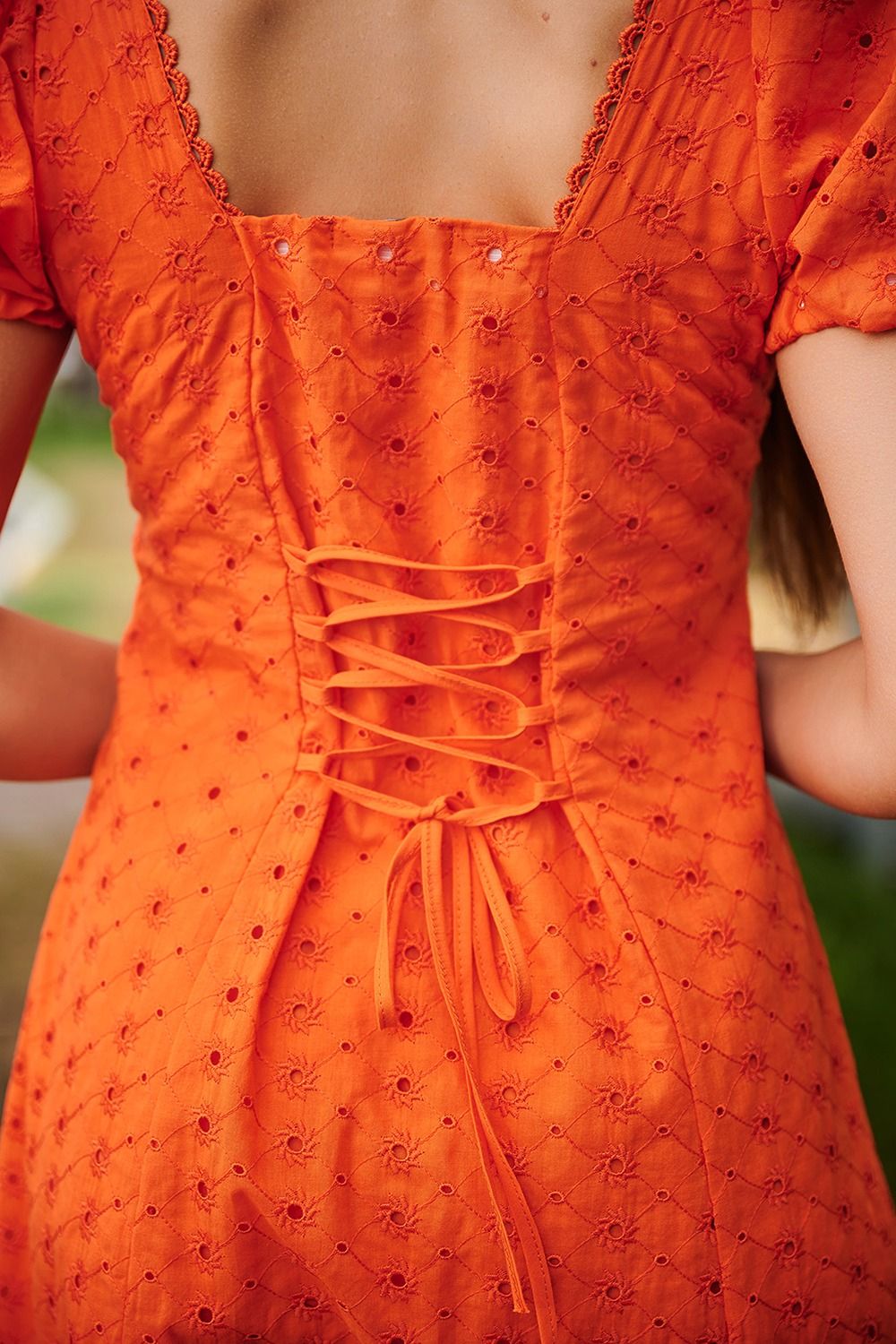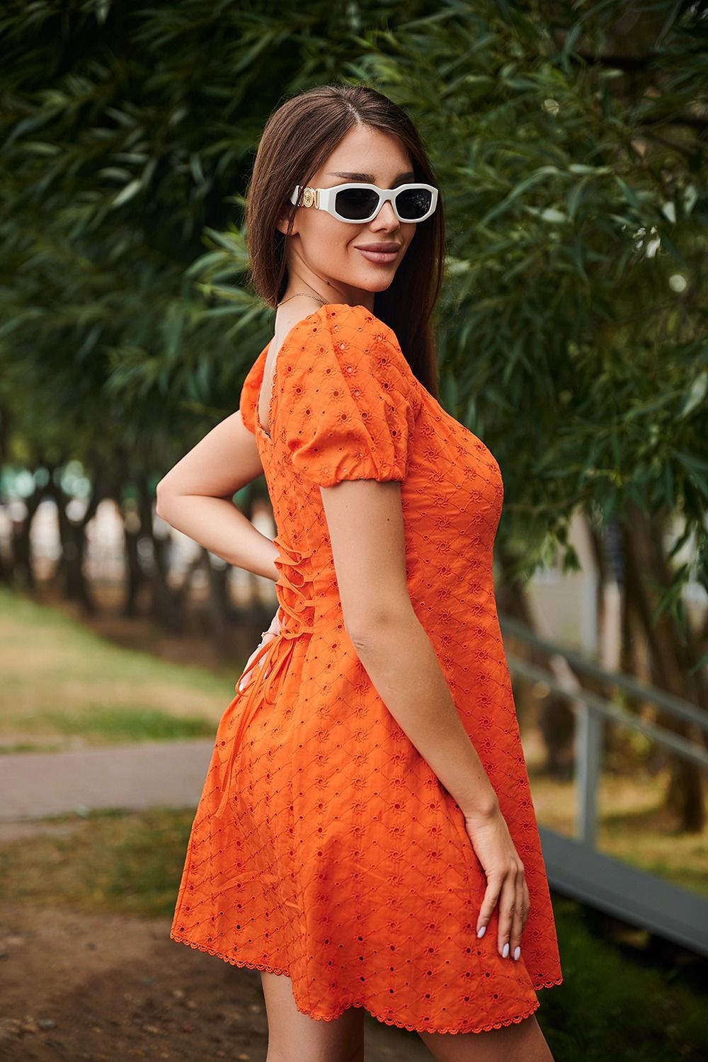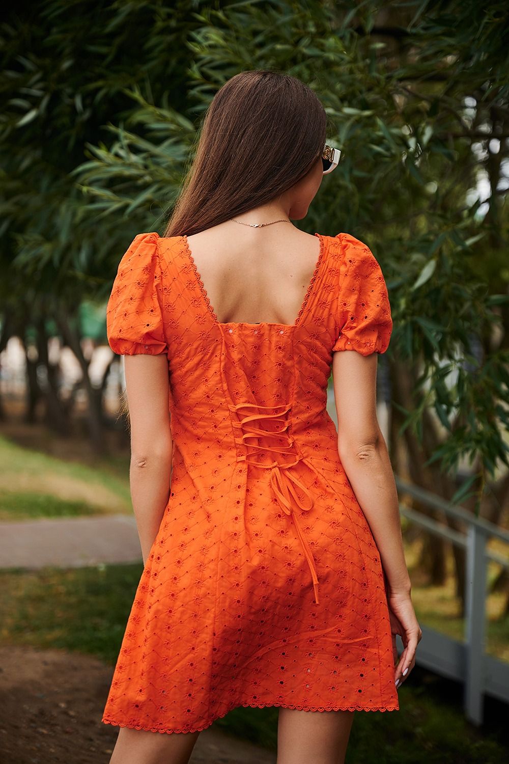 Платье женское приталенное, рукав-фонарик, по спинке шнуровка.