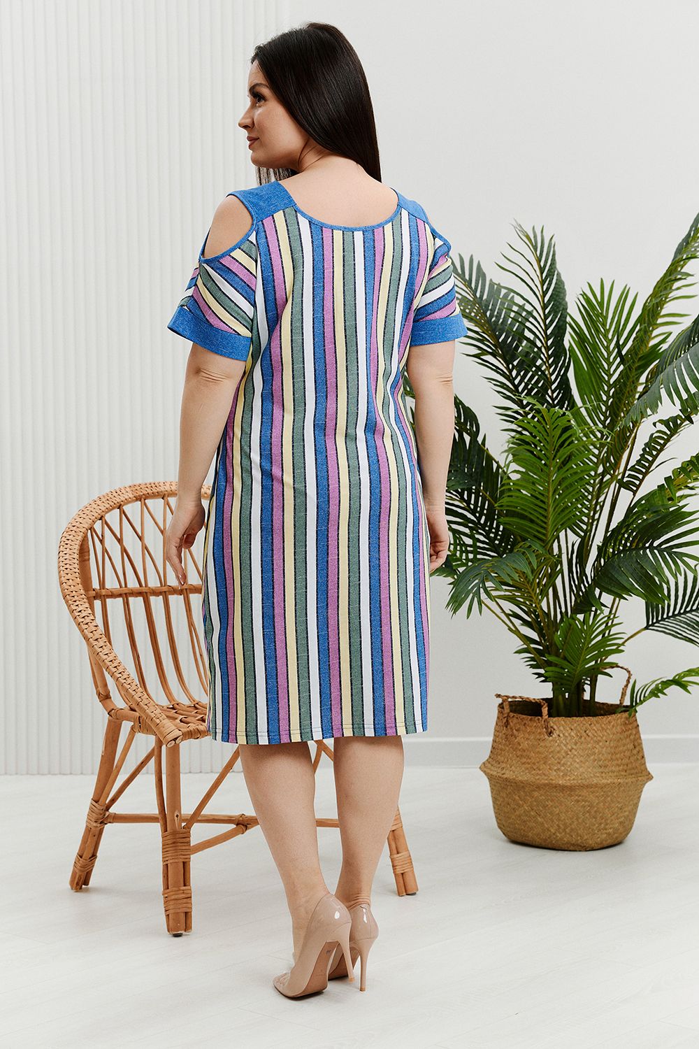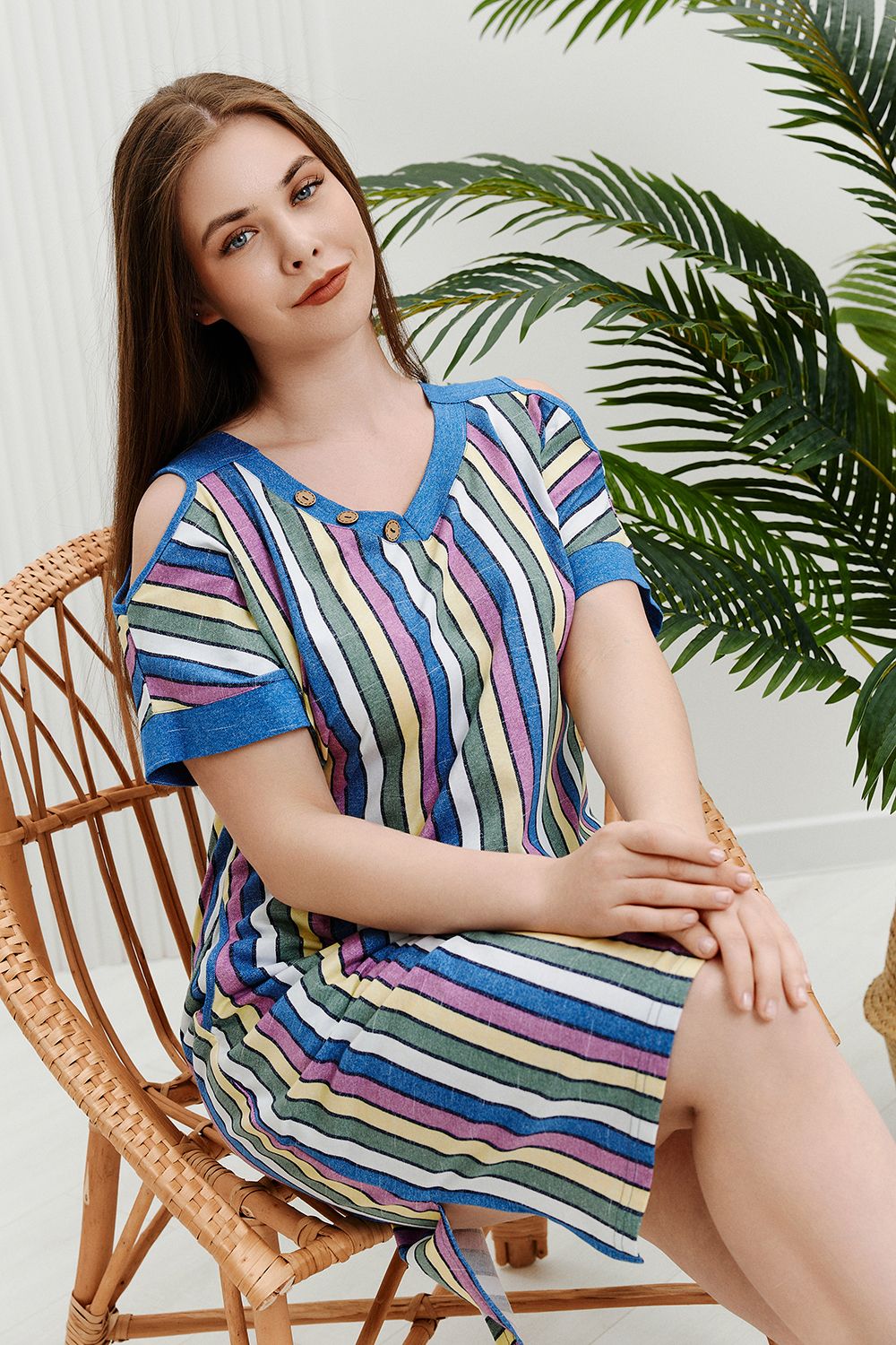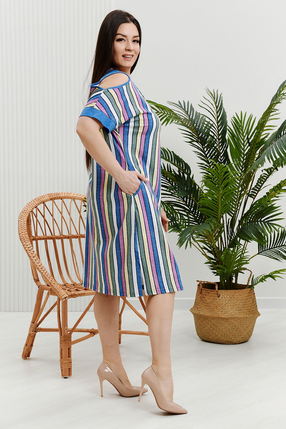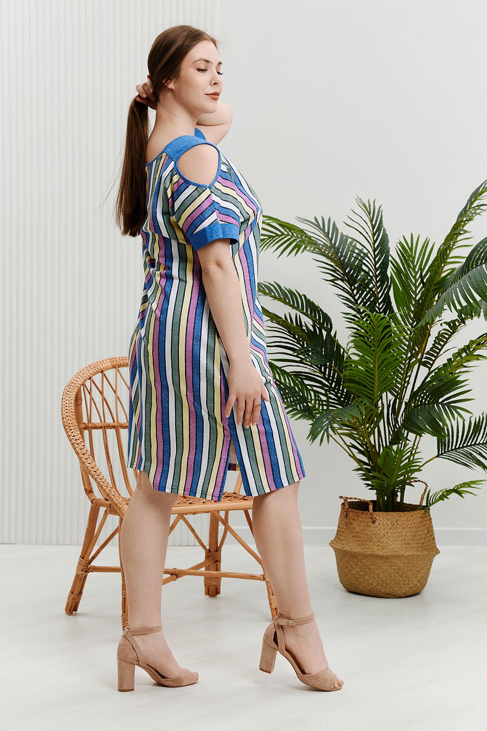 Платье женское с «V-образным» вырезом, рукава с открытым плечом, по низу рукавов планка, по низу изделия разрезы.