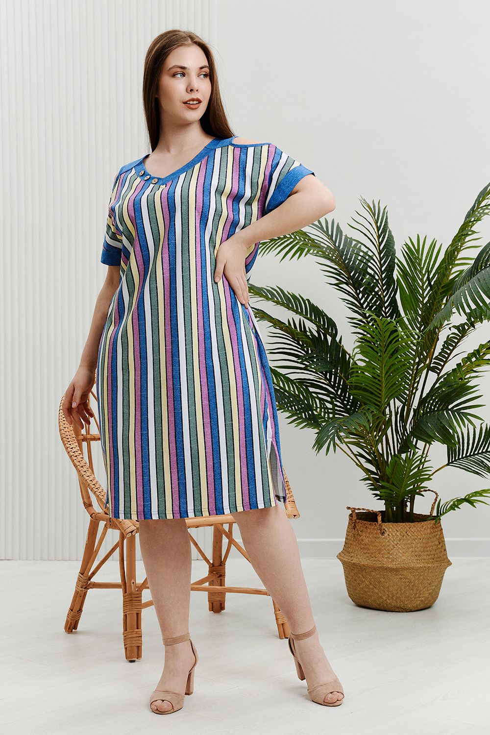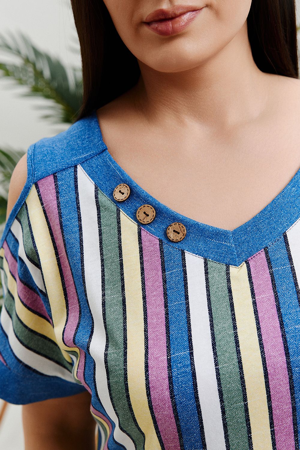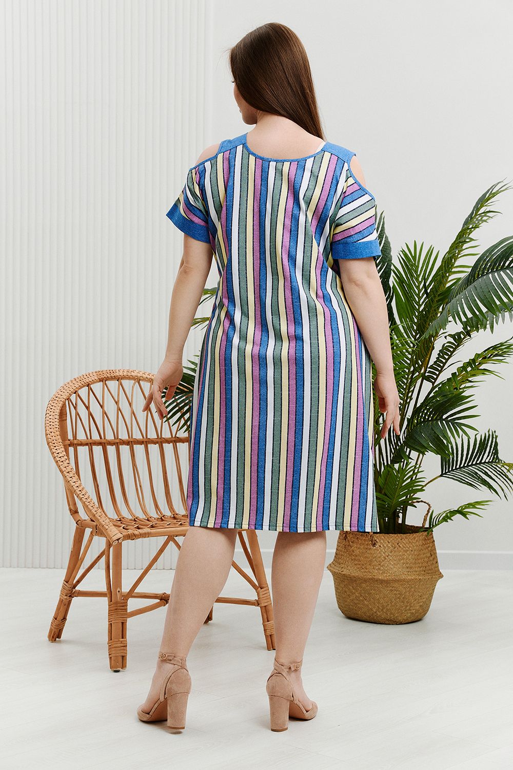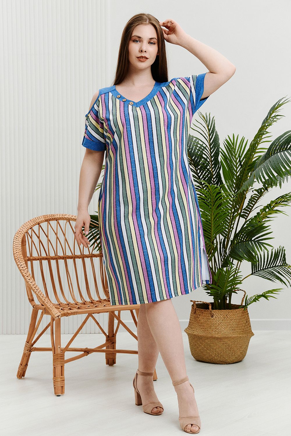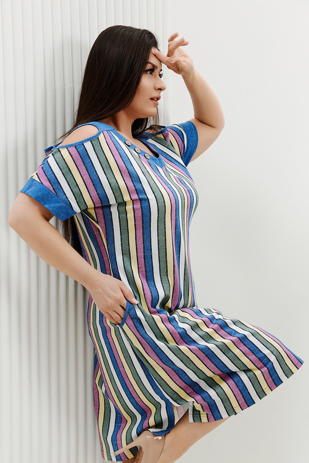 Платье женское с «V-образным» вырезом, рукава с открытым плечом, по низу рукавов планка, по низу изделия разрезы.