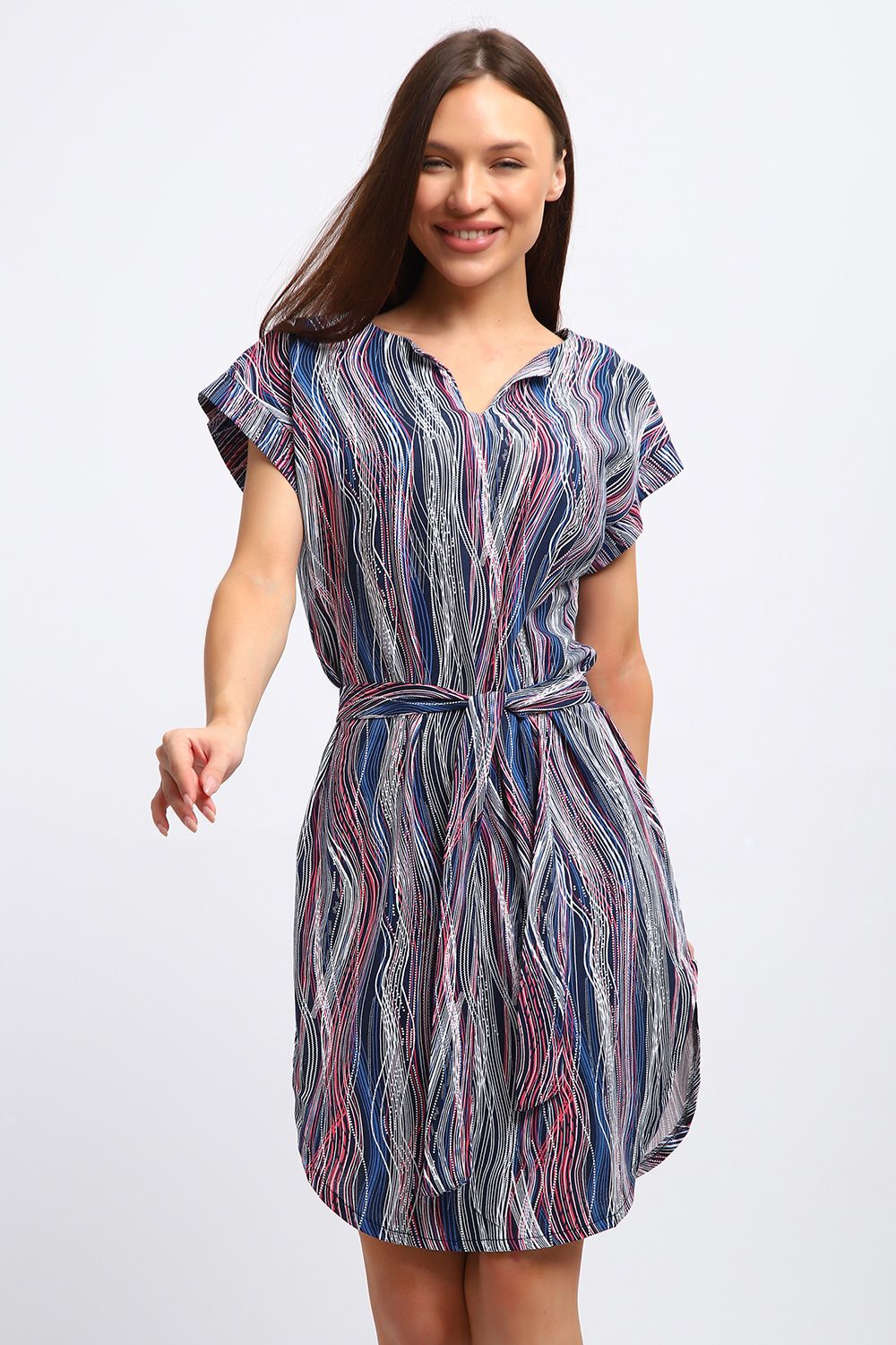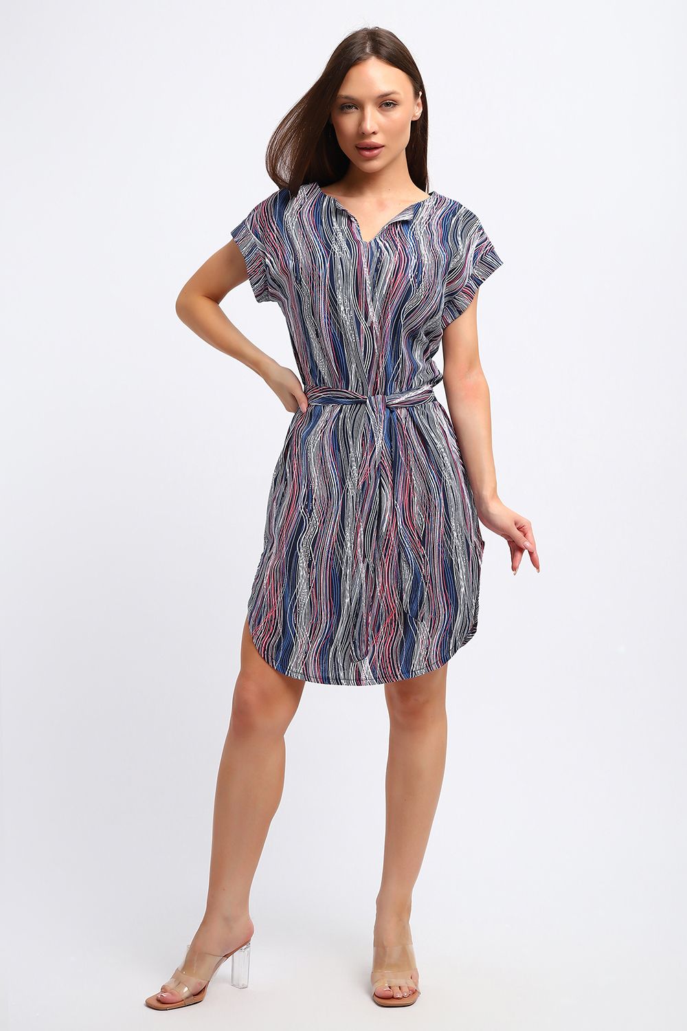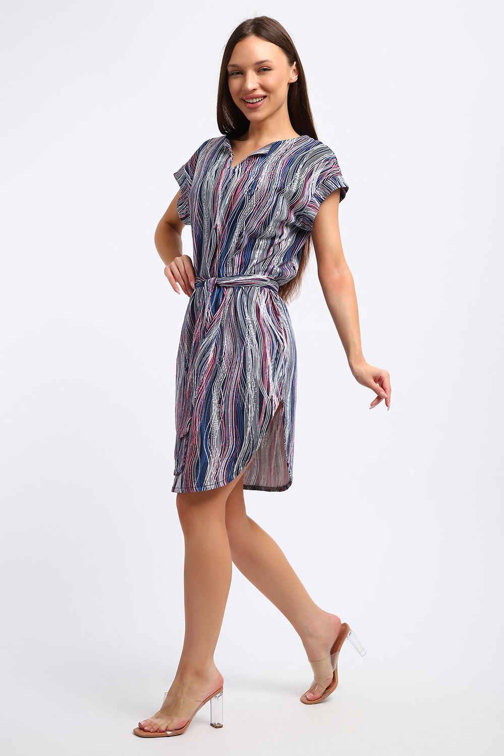 Платье-туника летнее выполнено из трикотажного полотна, кулирка 100% хлопок. Платье полуприлегающего силуэта умеренного объёма с коротким цельнокроеным рукавом. Спинка и полочка цельнокроенные, вырез горловины круглый спереди разрез. Срез горловины спинки и полочки обработан подкройной обтачкой из основной ткани. Срез проймы обработан манжетой. Длина платья до линии колена, по боковым швам округленные разрезы. Платье имеет пояс. Большой размерный ряд поможет подобрать платье на любую фигуру, для стройных и для полных. Платье подчеркнёт достоинства и скроет недостатки фигуры, подарит комфорт и удобство в жаркий летний день, в отпуске, на пляже.