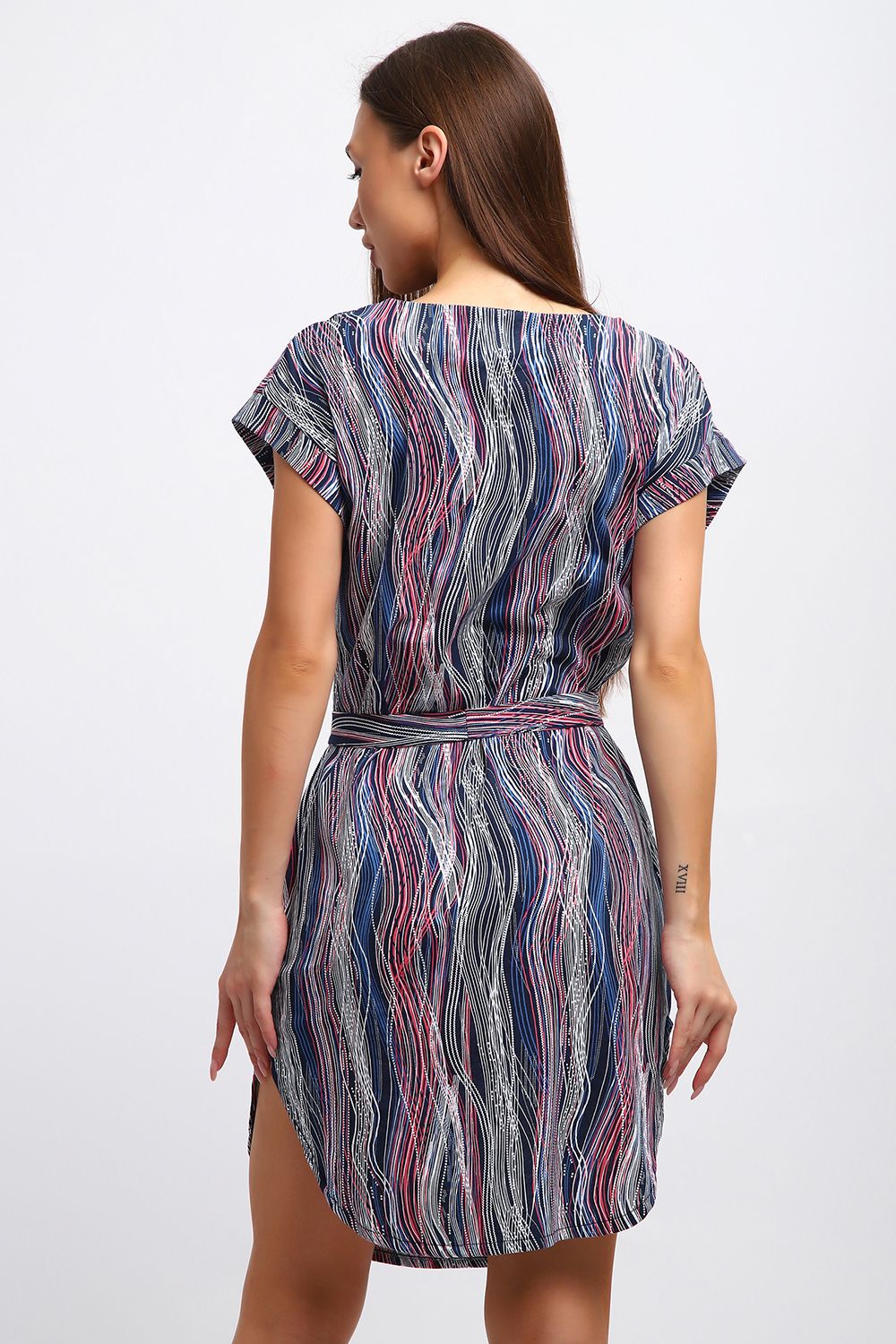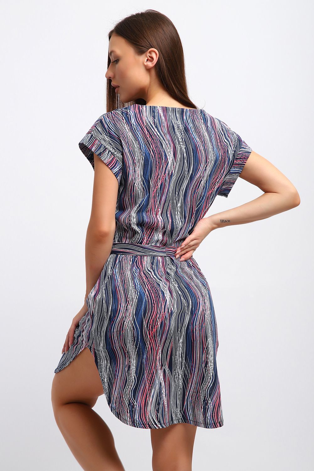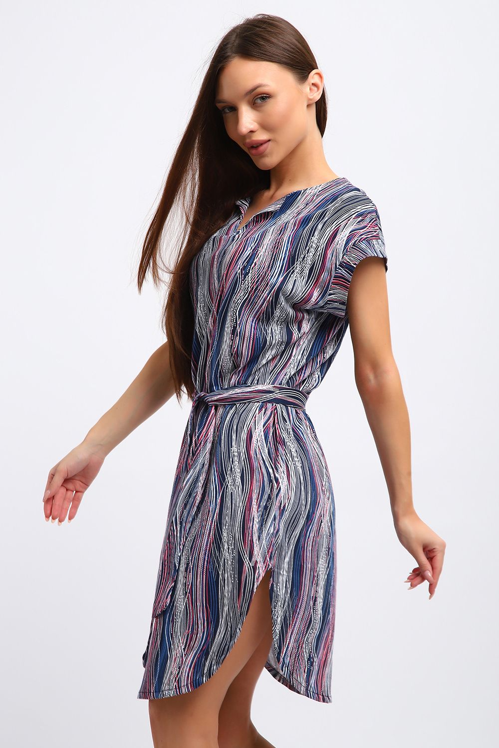 Платье-туника летнее выполнено из трикотажного полотна, кулирка 100% хлопок. Платье полуприлегающего силуэта умеренного объёма с коротким цельнокроеным рукавом. Спинка и полочка цельнокроенные, вырез горловины круглый спереди разрез. Срез горловины спинки и полочки обработан подкройной обтачкой из основной ткани. Срез проймы обработан манжетой. Длина платья до линии колена, по боковым швам округленные разрезы. Платье имеет пояс. Большой размерный ряд поможет подобрать платье на любую фигуру, для стройных и для полных. Платье подчеркнёт достоинства и скроет недостатки фигуры, подарит комфорт и удобство в жаркий летний день, в отпуске, на пляже.