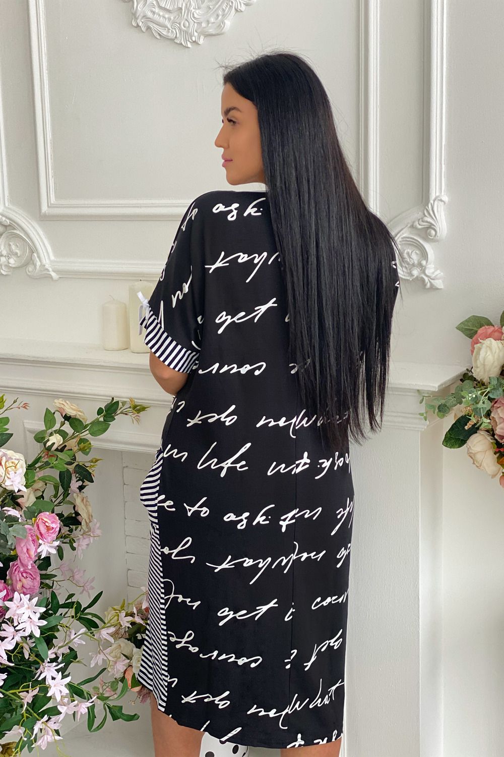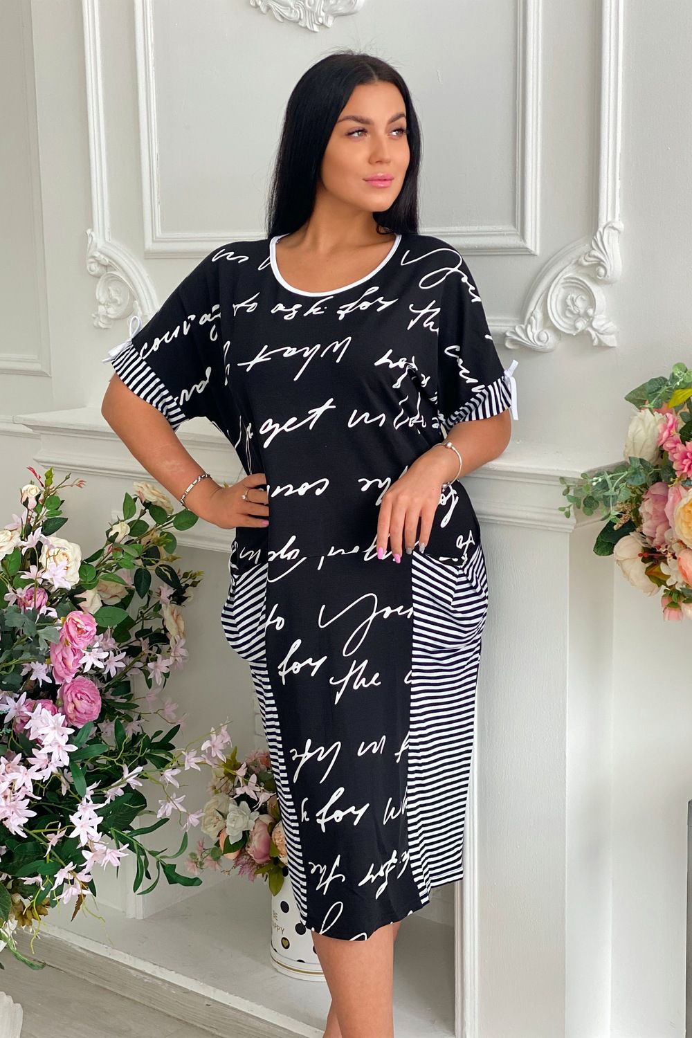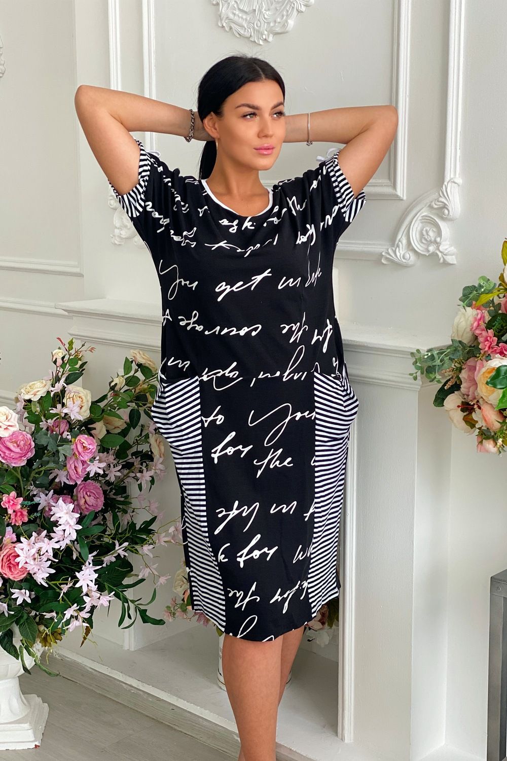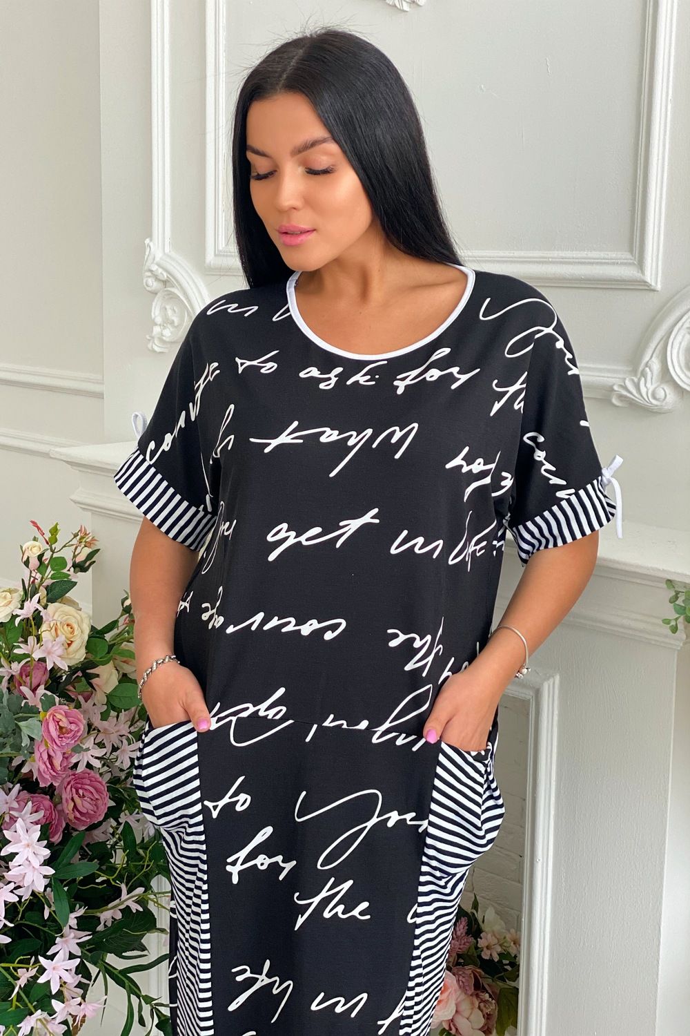 Платье женское полуприлегающего силуэта. Рукав цельнокроенный с манжетой. На полочке в горизонтальном шве внутренние карманы с небольшими складками. Оригинальность придают декоративные боковые вставки в нижней части платья и манжеты из ткани в полоску.