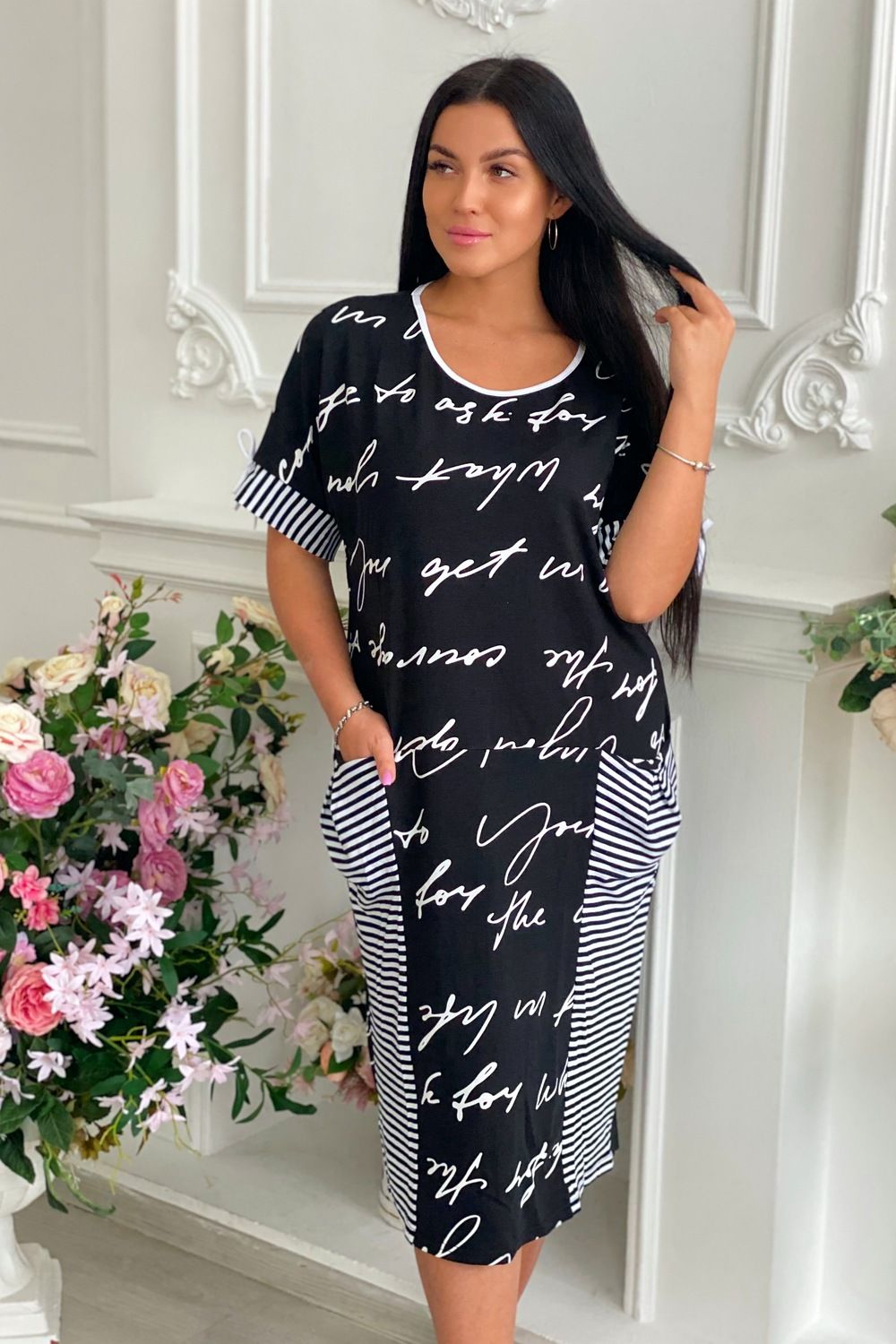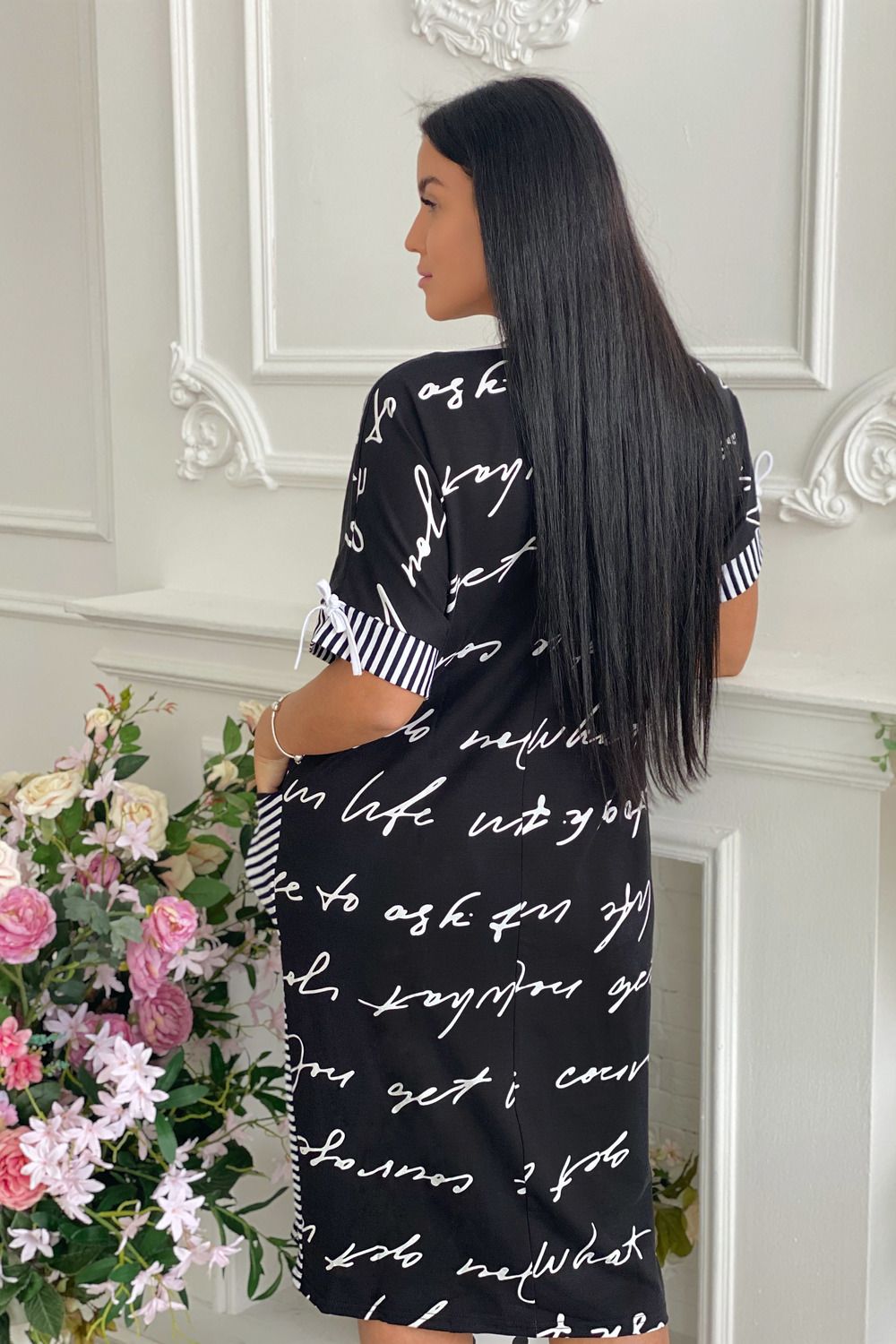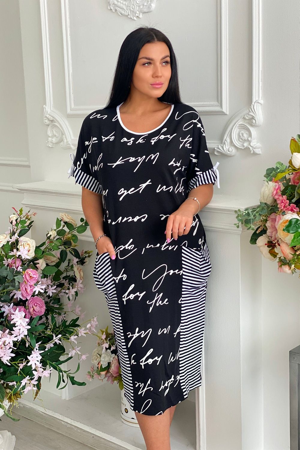 Платье женское полуприлегающего силуэта. Рукав цельнокроенный с манжетой. На полочке в горизонтальном шве внутренние карманы с небольшими складками. Оригинальность придают декоративные боковые вставки в нижней части платья и манжеты из ткани в полоску.