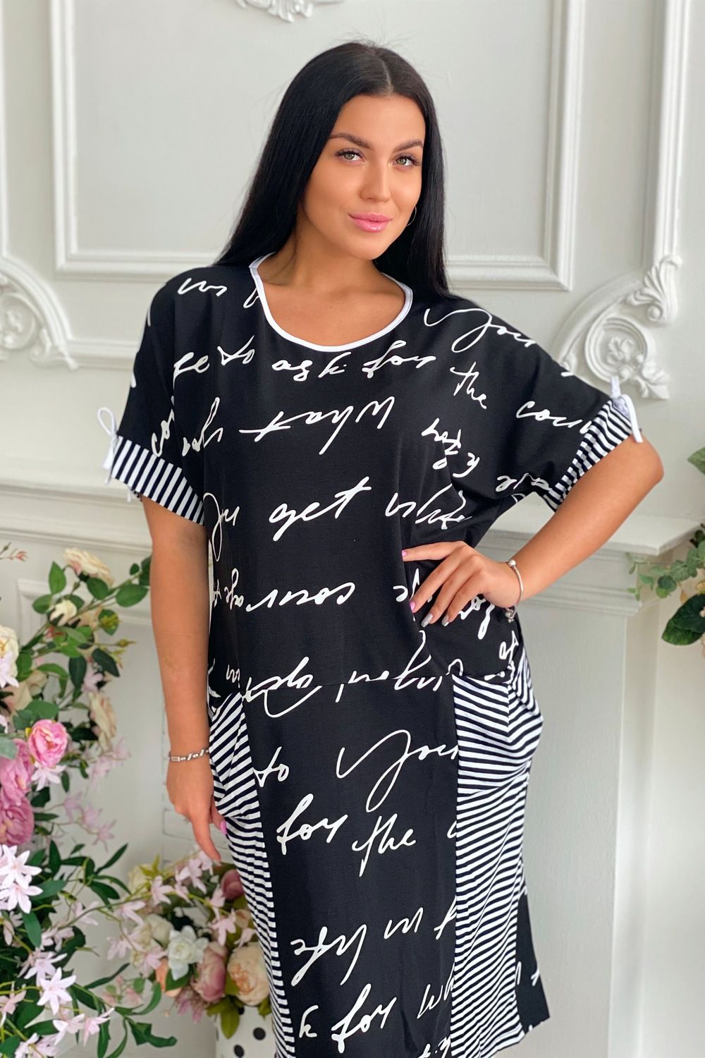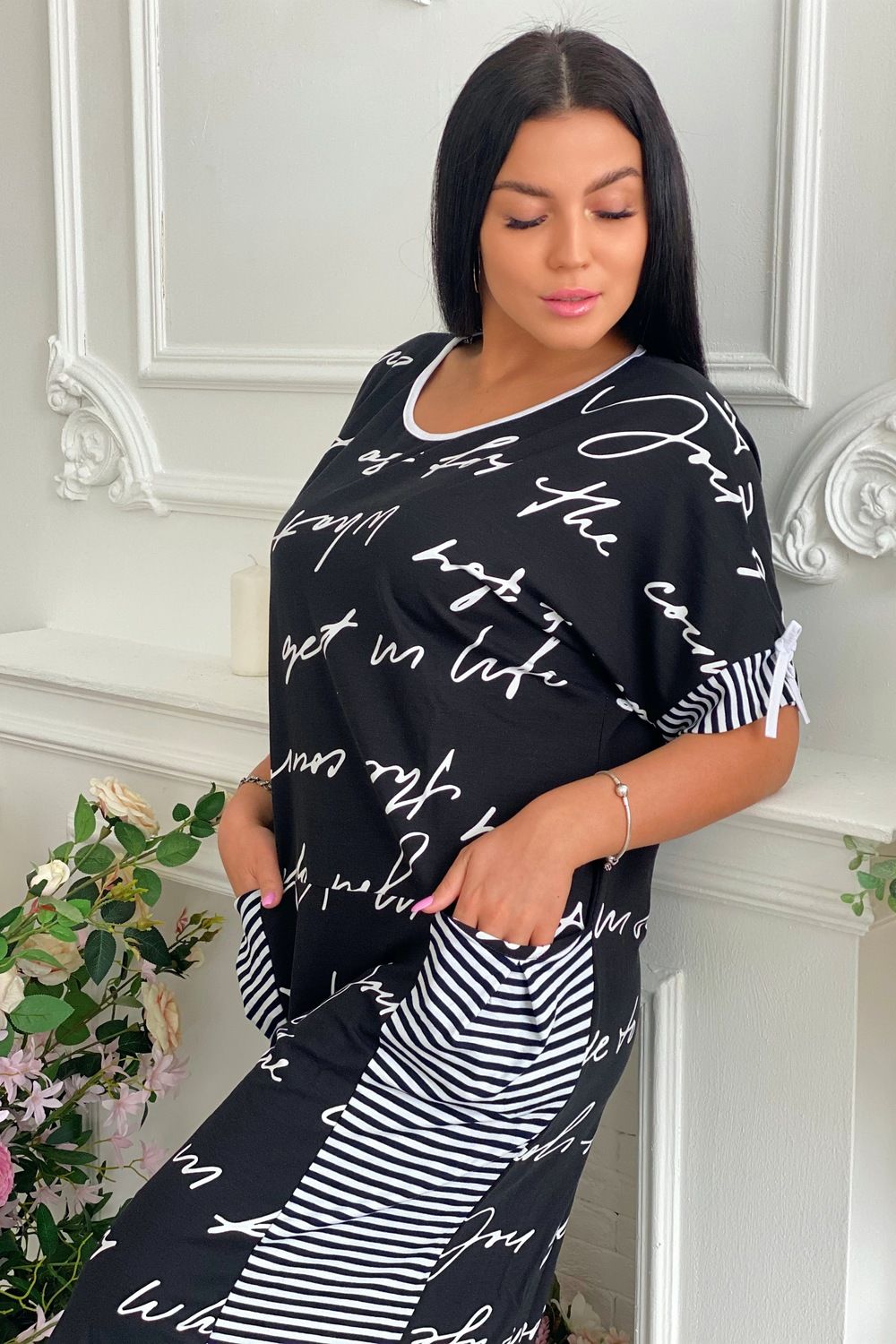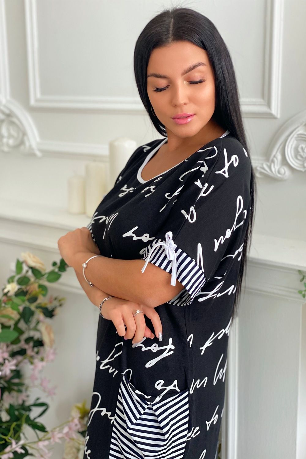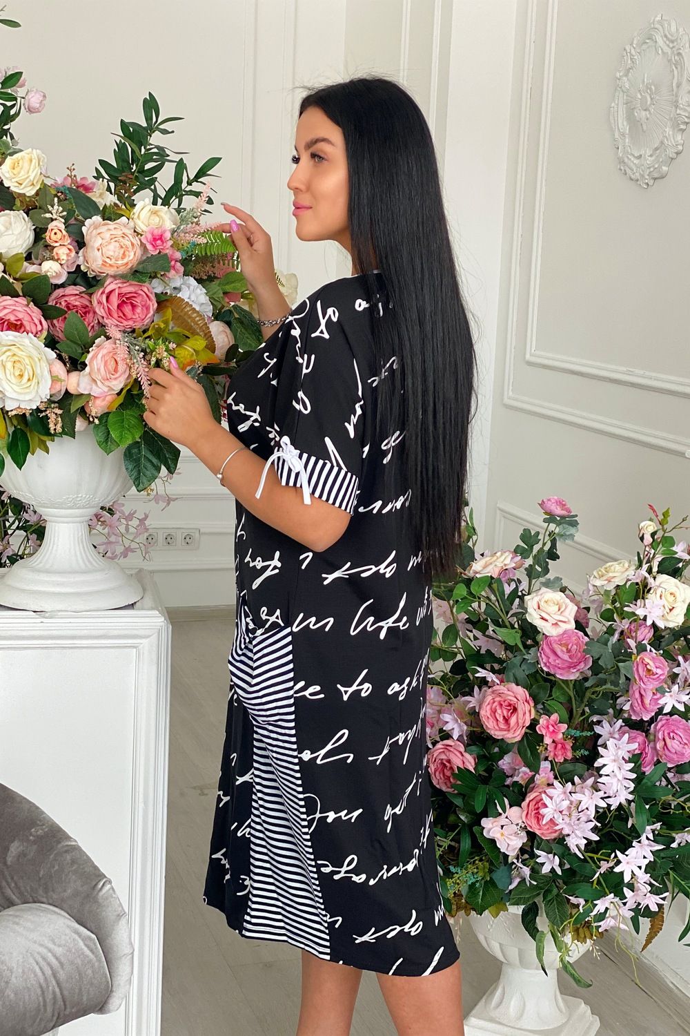Платье женское полуприлегающего силуэта. Рукав цельнокроенный с манжетой. На полочке в горизонтальном шве внутренние карманы с небольшими складками. Оригинальность придают декоративные боковые вставки в нижней части платья и манжеты из ткани в полоску.