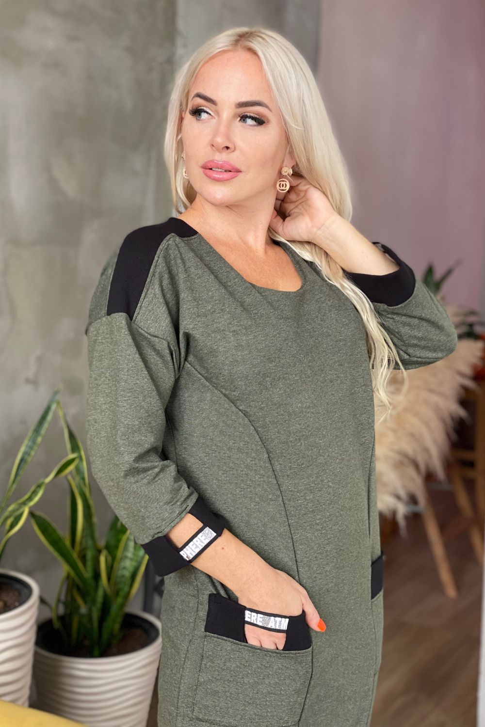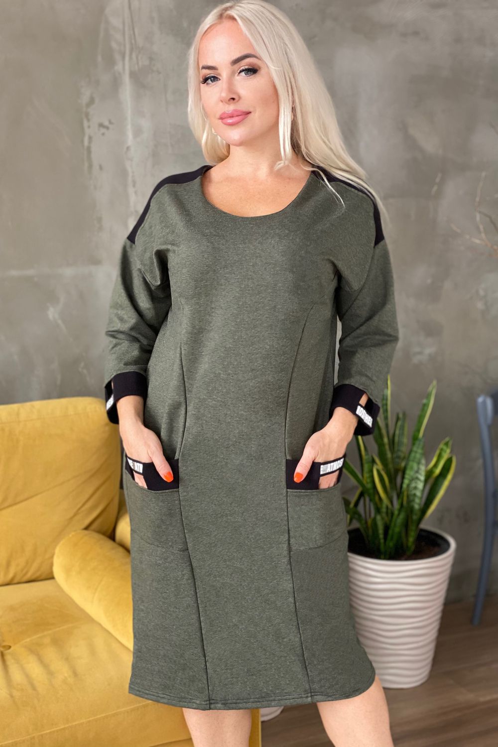 Платье женское полуприлегающего силуэта. Рукав цельнокроенный со швом. Вырез горловины круглый. На полочке рельефы и карманы. Манжеты рукавов, обтачки карманов и декоративные детали в плечевых швах из кашкорсе. Манжеты и обтачки карманов с декоративной тесьмой.