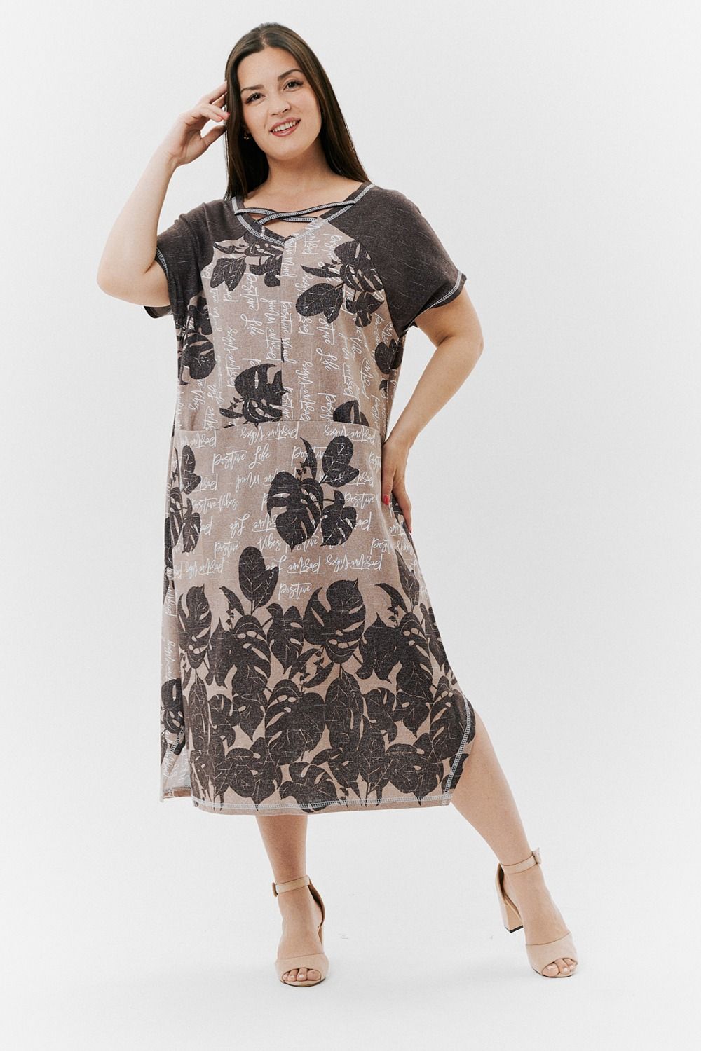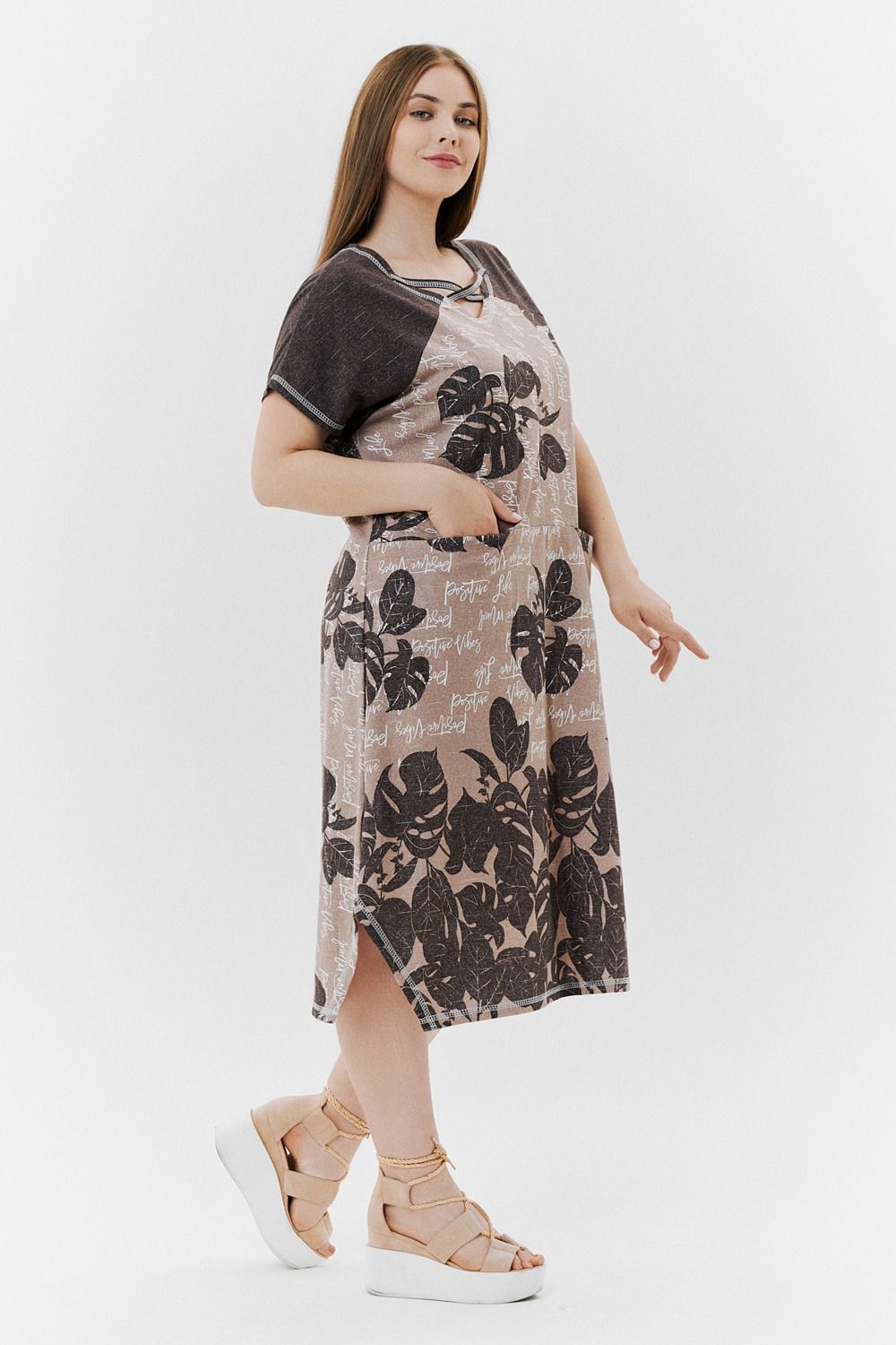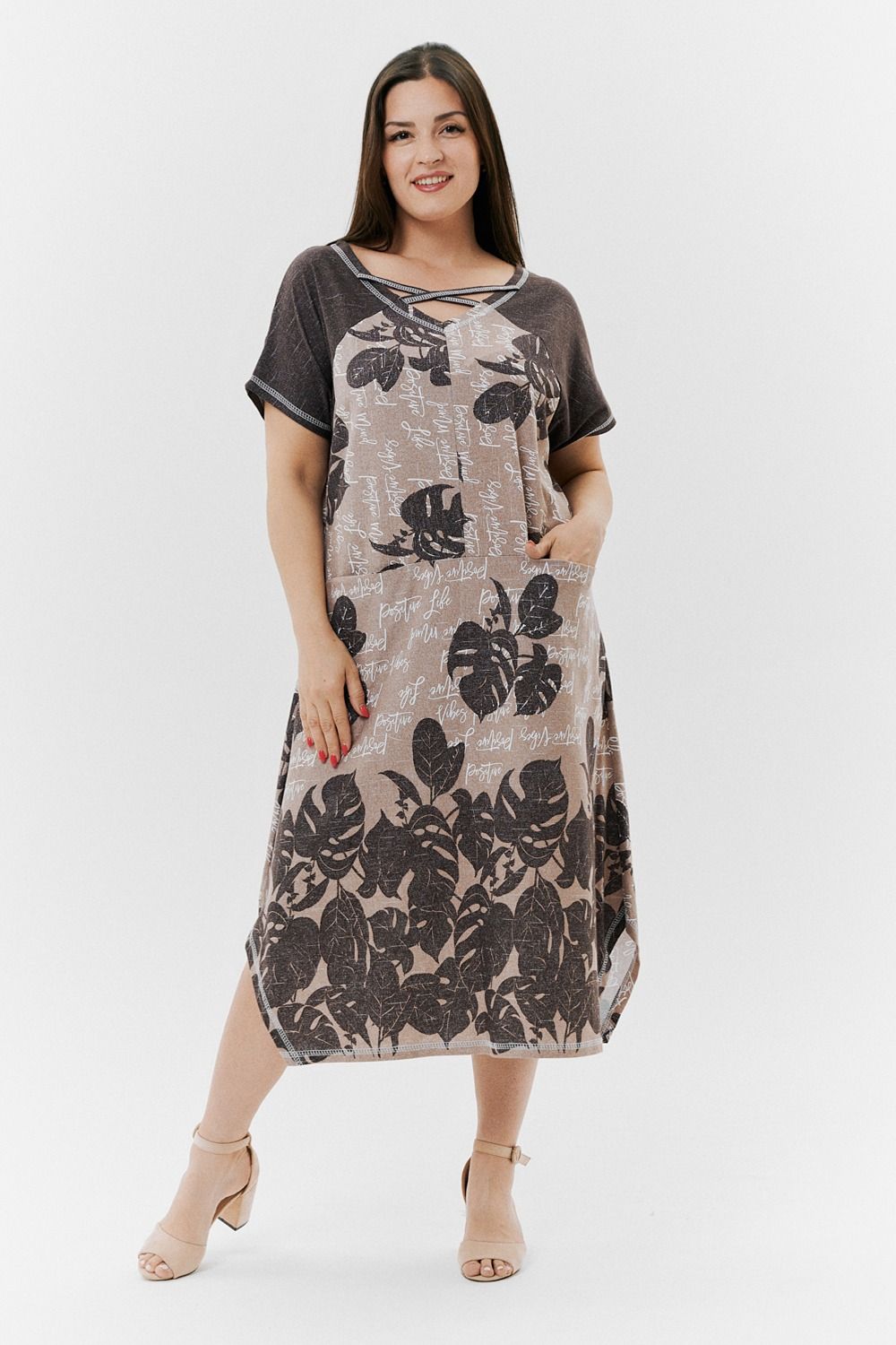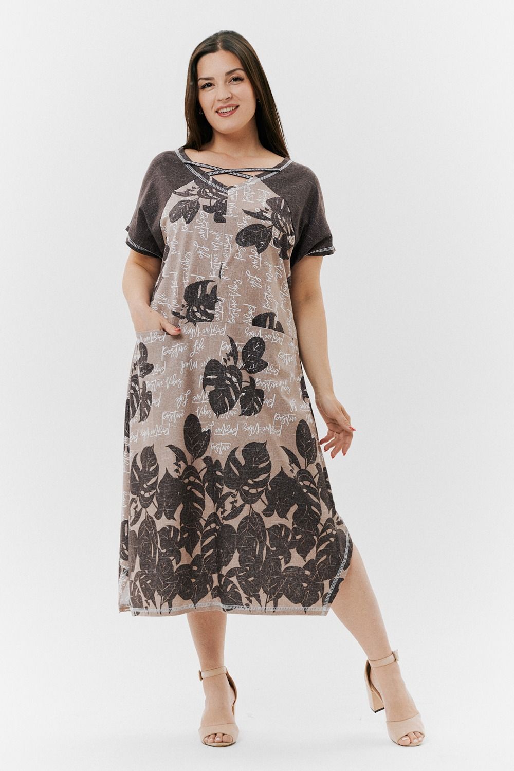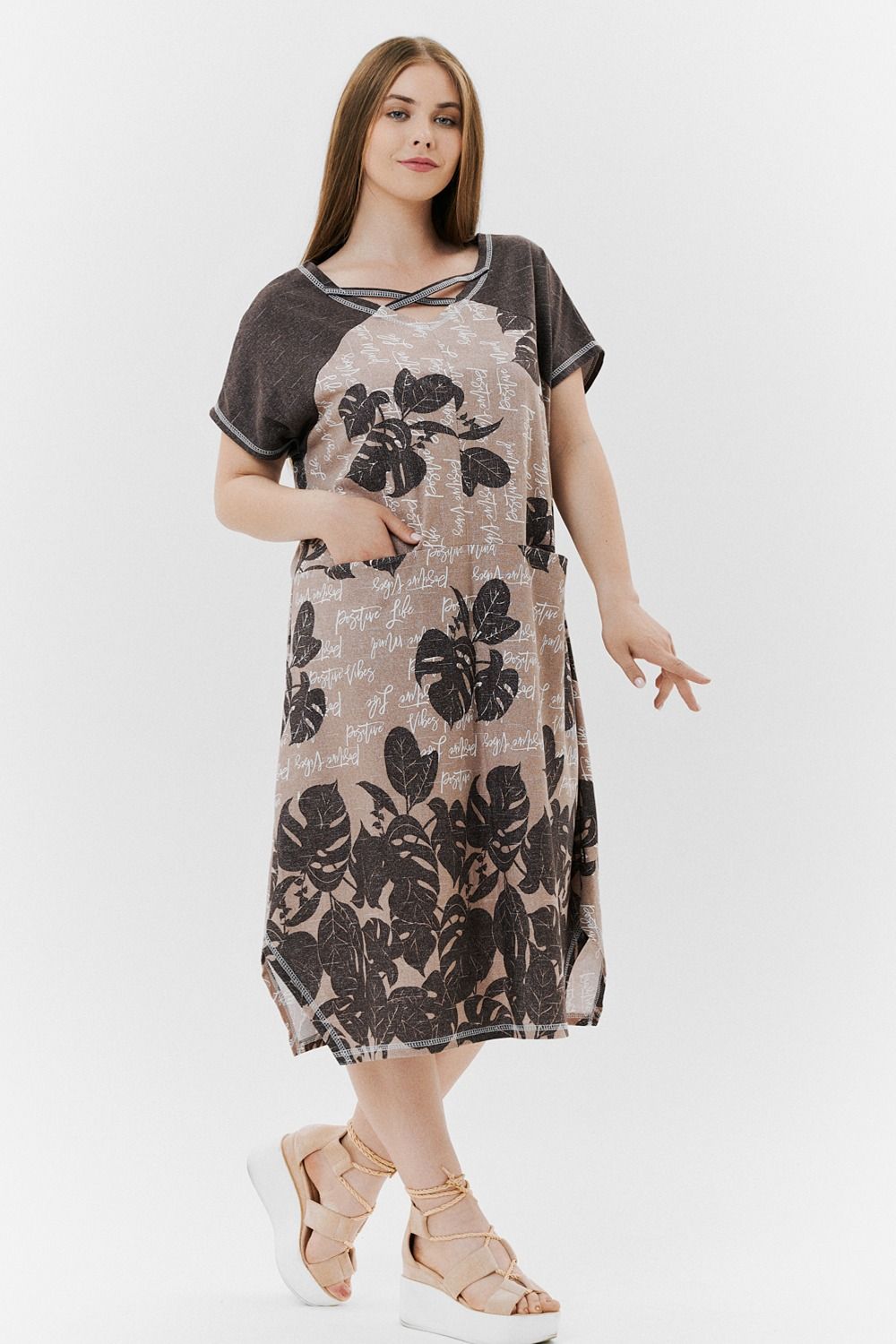 Платье 9137 - монстеры коричневые