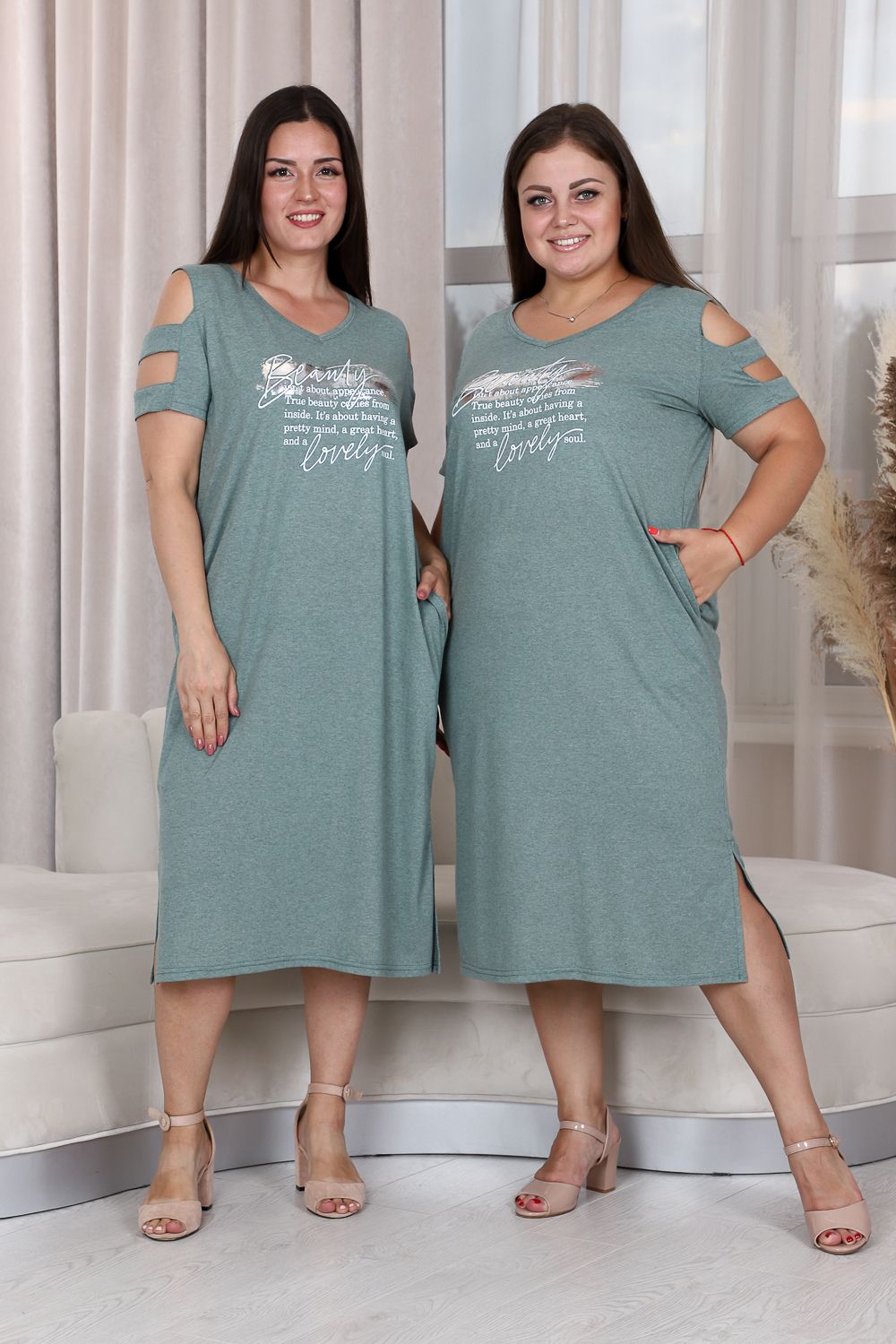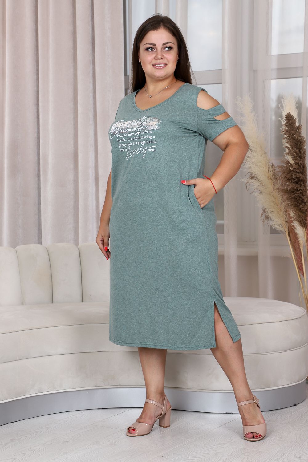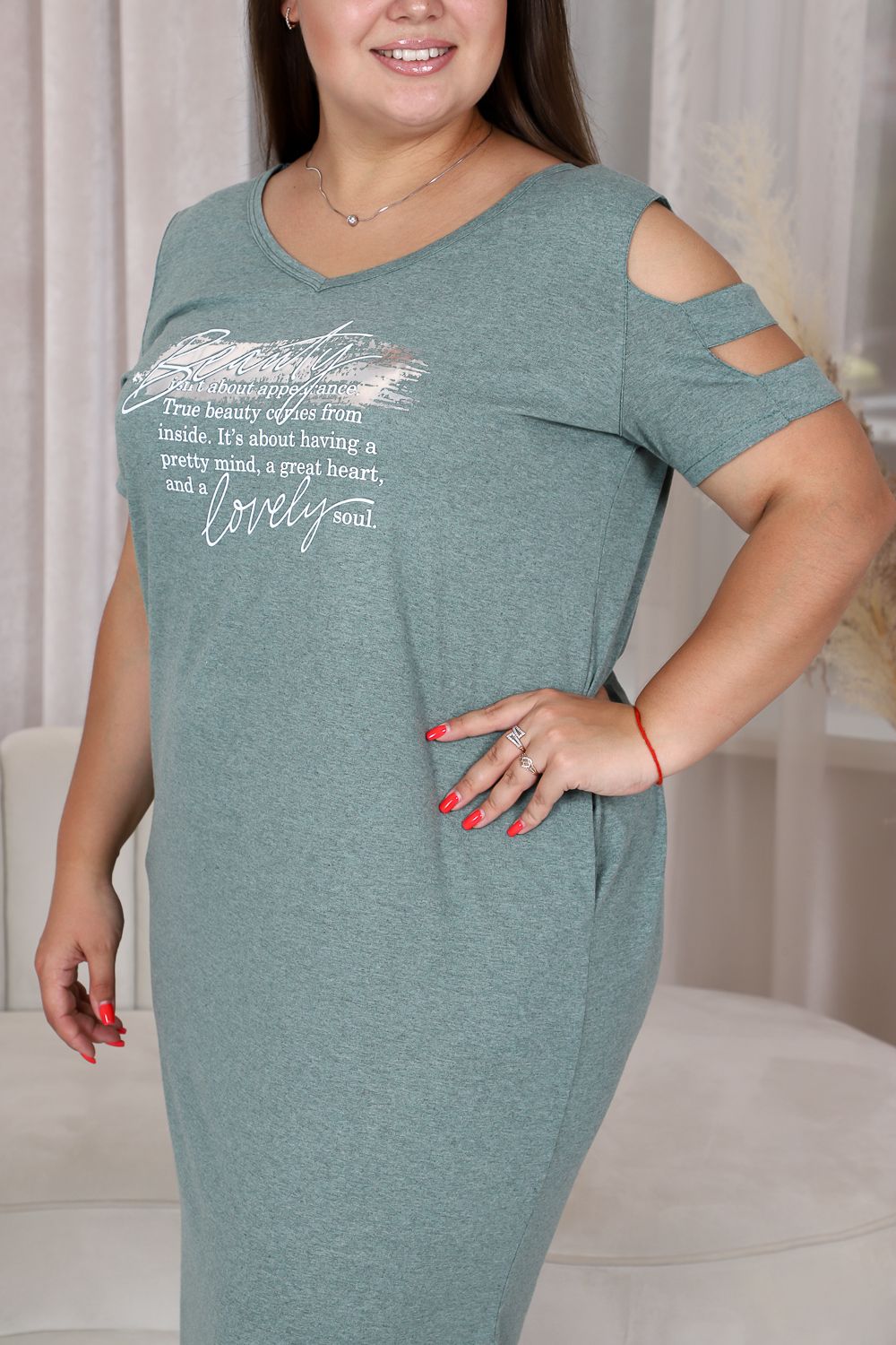 Платье женское, прямого силуэта. Вырез горловины Y-образный. На полочке принт. Рукав не цельный, два хлястика, расположенные через расстояние друг от друга, втачаны в боковые части рукава. В боковых швах внутренние карманы, внизу разрезы.
