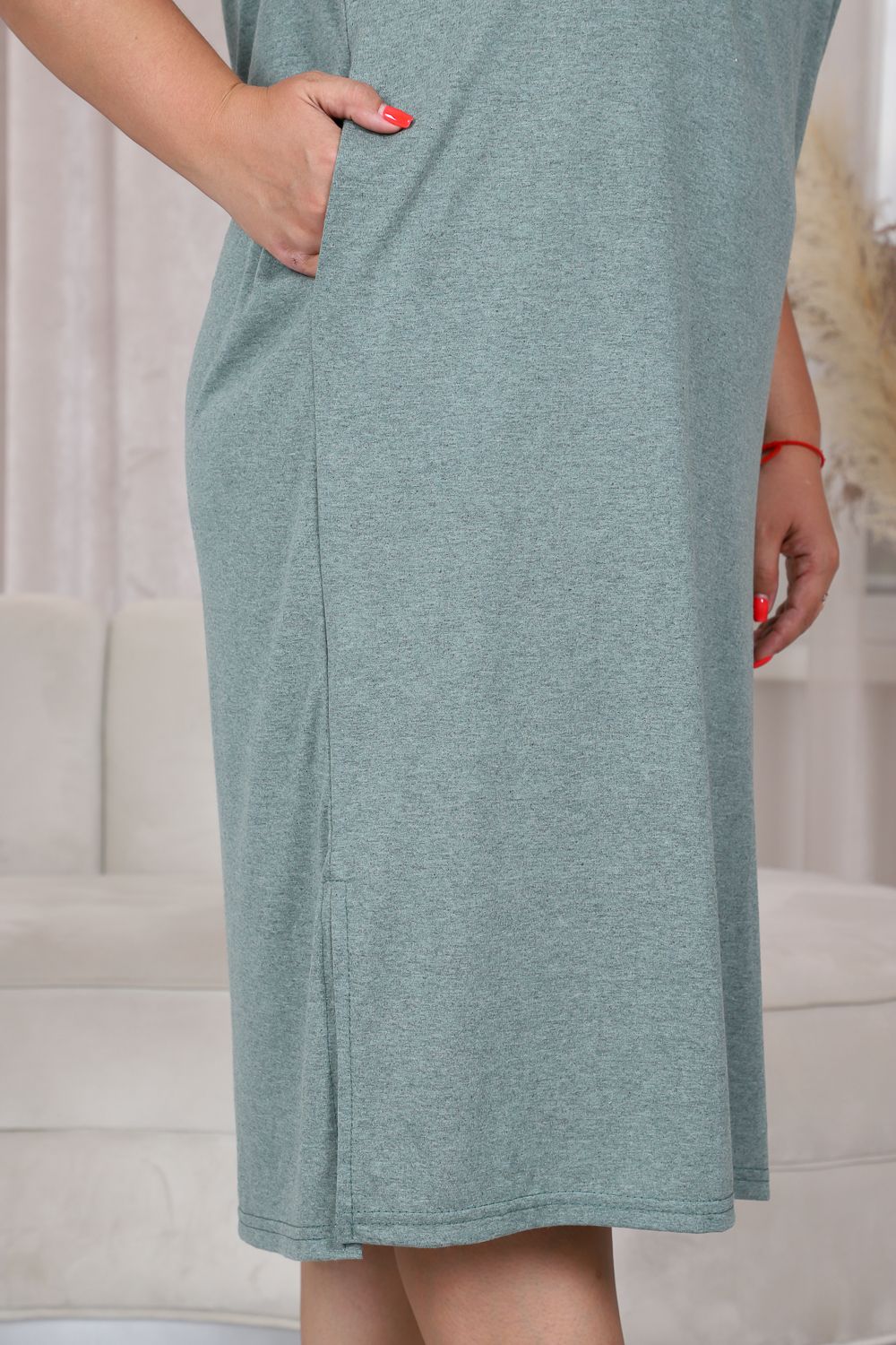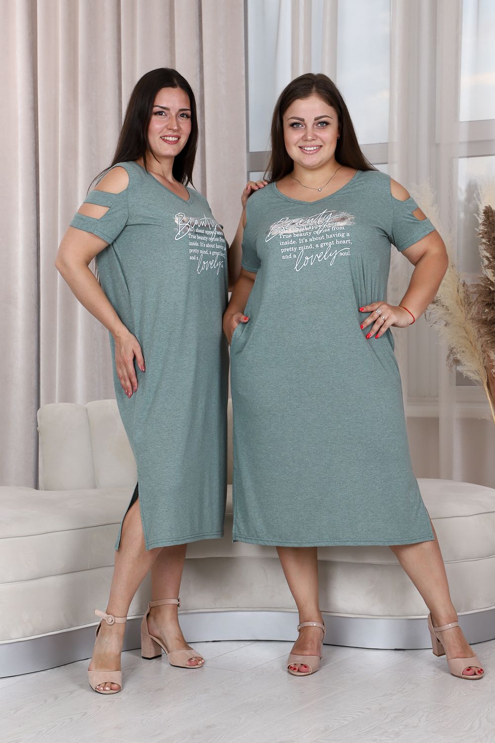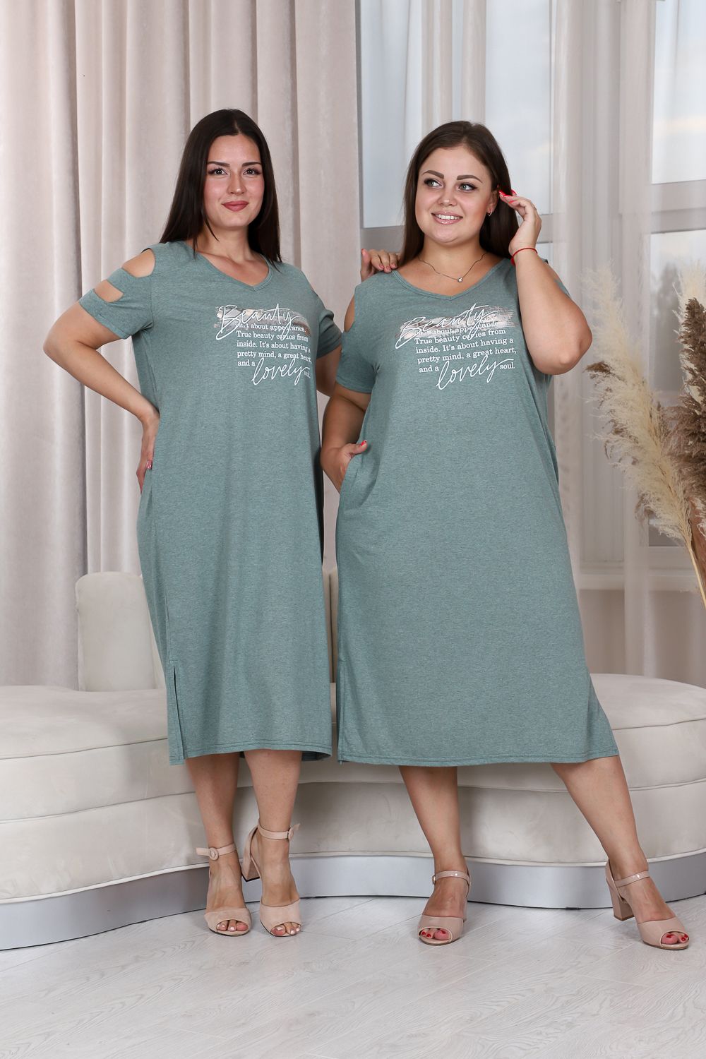 Платье женское, прямого силуэта. Вырез горловины Y-образный. На полочке принт. Рукав не цельный, два хлястика, расположенные через расстояние друг от друга, втачаны в боковые части рукава. В боковых швах внутренние карманы, внизу разрезы.