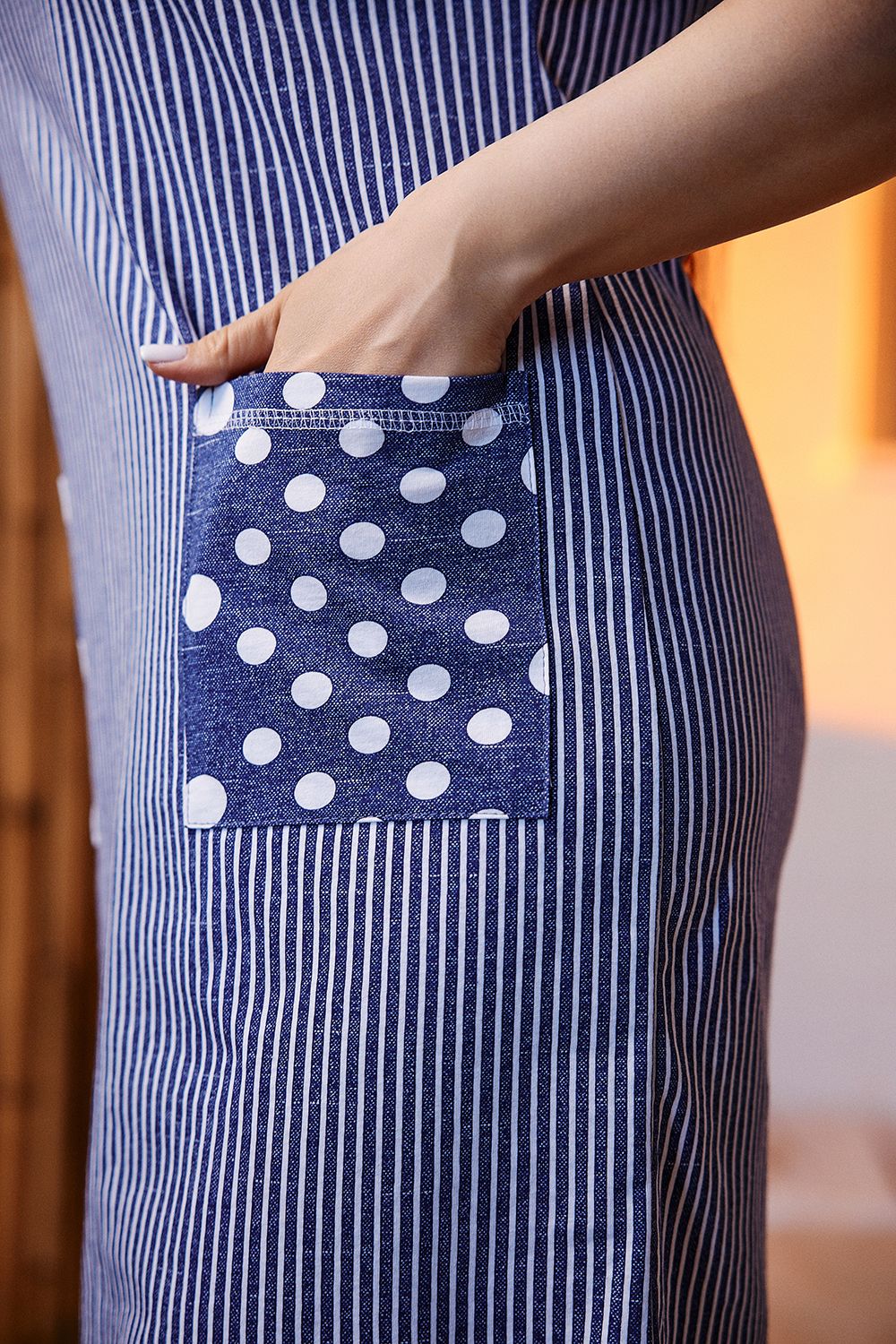 Платье женское полуприлегающего силуэта. Горловина асимметричная, рукав как таковой отсутствует за счет разрезов вдоль плеча, на полочке два накладных кармана. В боковых швах разрезы. Бантики в горловине и разрезах рукавов придают платью особую женственность.