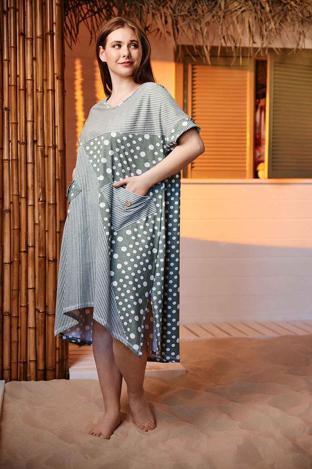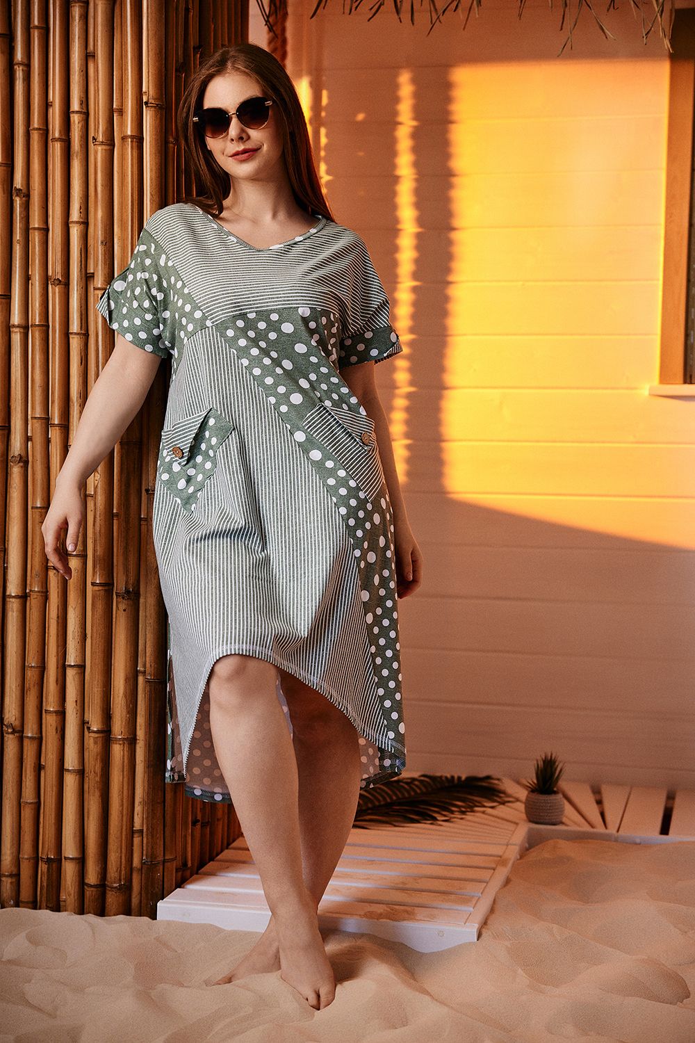 Платье 9202 - полоса горох хаки