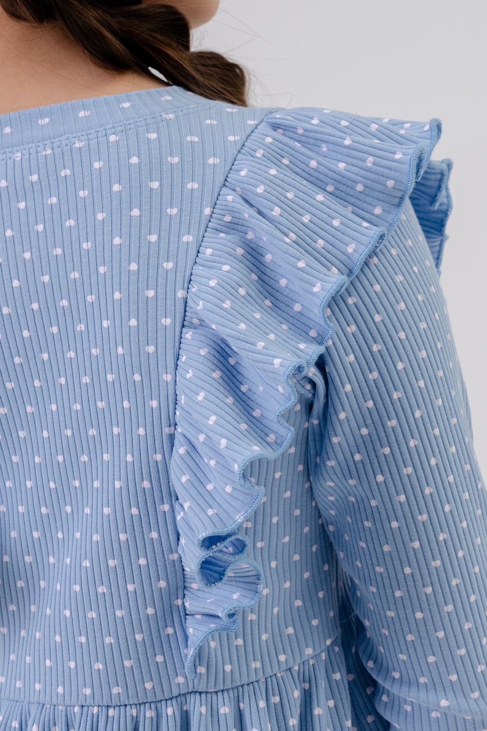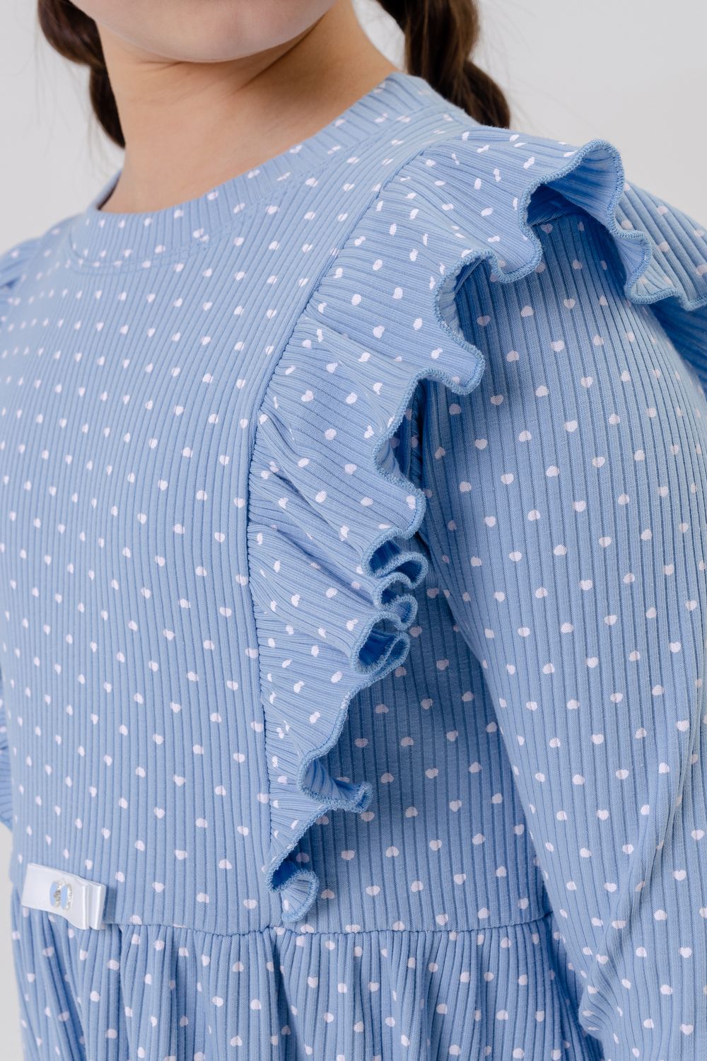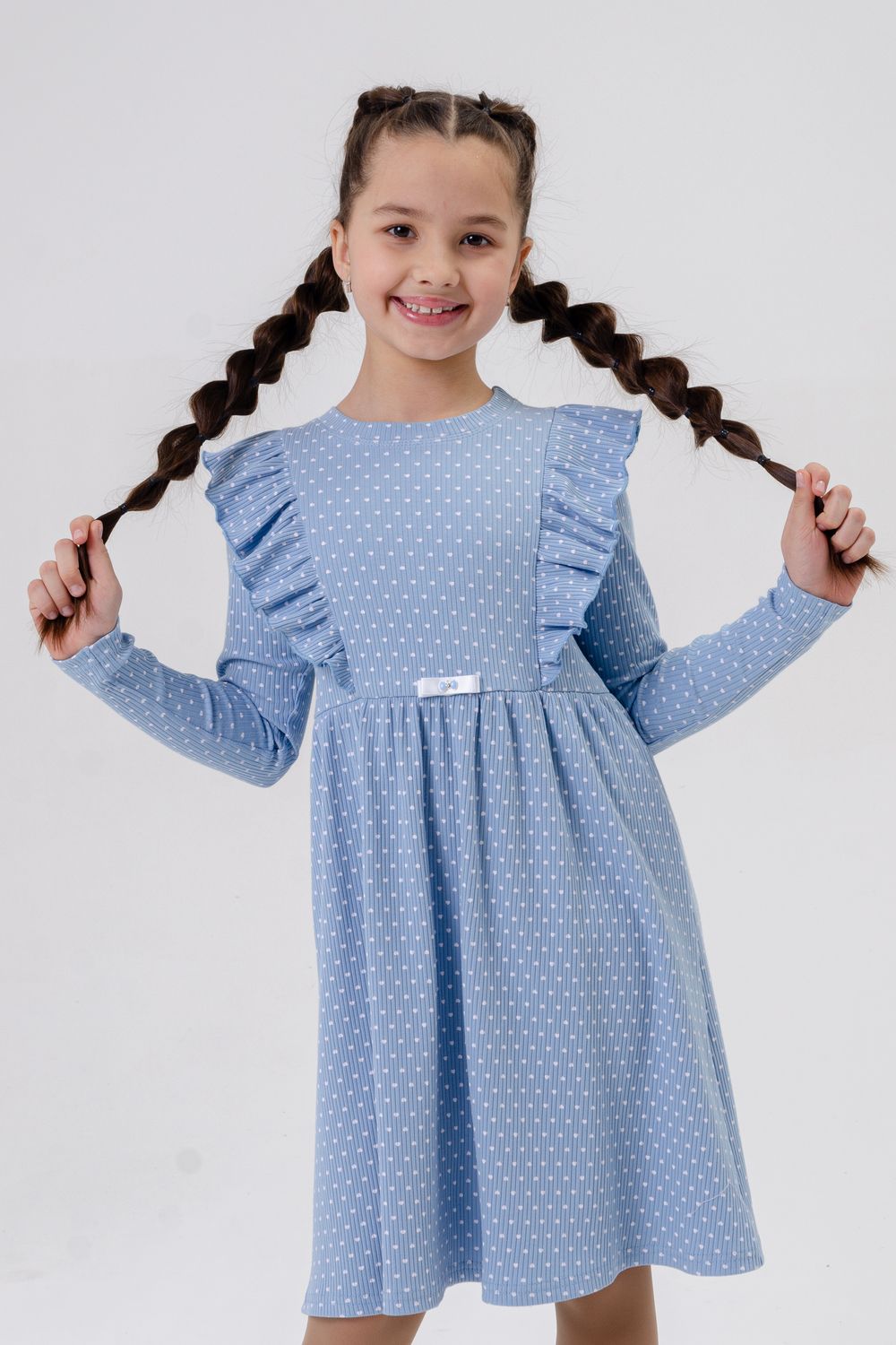 Платье Бетти длинный рукав детское - голубой сердечки