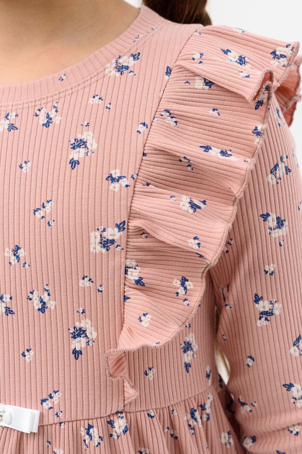 Платье для девочки в садик с длинным рукавом из трикотажного полотна в рубчик с рисунком, расширенное от линии талии, приталенного силуэта, верхние части переда и спинки с присборенными крылышками, по линии талии по центру пришит декоративный элемент. Сшито из набивного мягкого материала 95% хлопок 5% лайкра - лапша. Идеально платье в детский сад, для прогулок, для праздника и на каждый день, обладает прочностью, которая позволяет Вашей девочке активно играть и веселиться, не ограничивая движения. Прекрасная посадка позволяет использовать, как повседневное, а ещё наше платье для девочки не имеет застежек, что делает его легким в надевании и снятии, ребёнок сможет самостоятельно одеваться и чувствовать себя самой красивой принцессой. В нашей одежде не будет жарко в период включенного отопления осенью, весной и зимой. Подойдёт в качестве подарка на Новый 2024 Год, выпускной, день рождения.