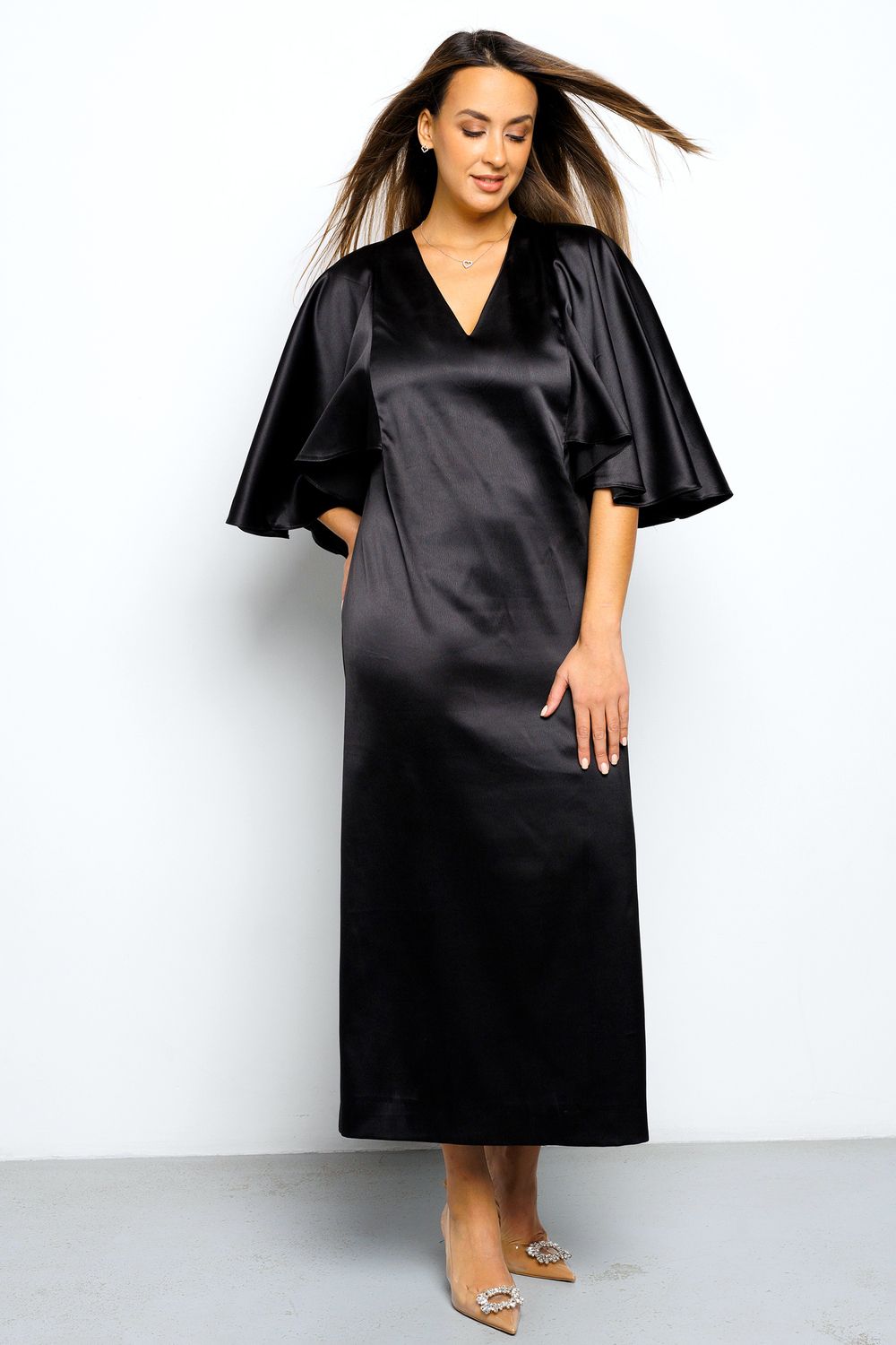 Платье праздничное длинное с воланами от бренда Raposa – это идеальный выбор для тех, кто ищет элегантное и стильное праздничное платье для особых случаев. Это винтажное шелковое платье в стиле old money выполнено из черного атласа премиум качества, что придает ему особенную гладкость и блеск. Платье туника 58 размера обеспечивает комфорт и удобство при носке.