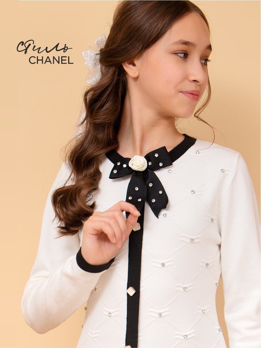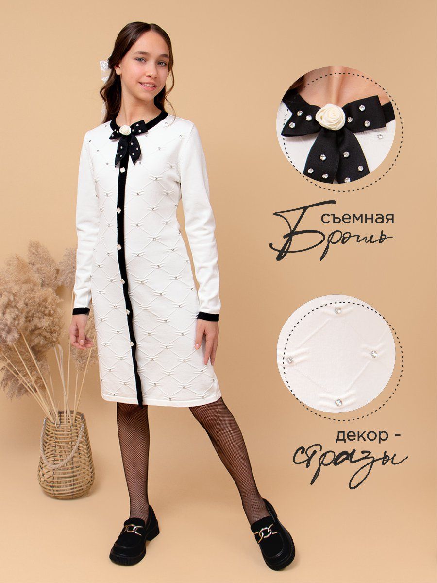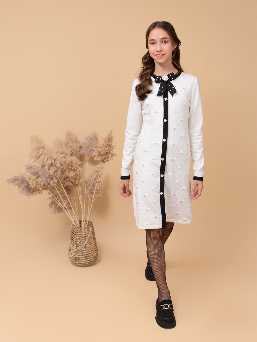 Платье для девочки вязанный трикотаж SP50119 - белый