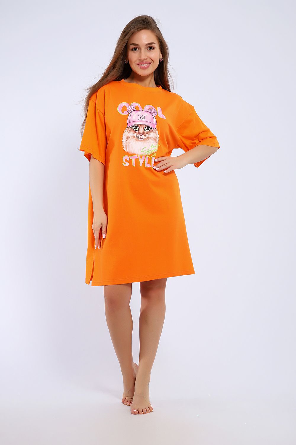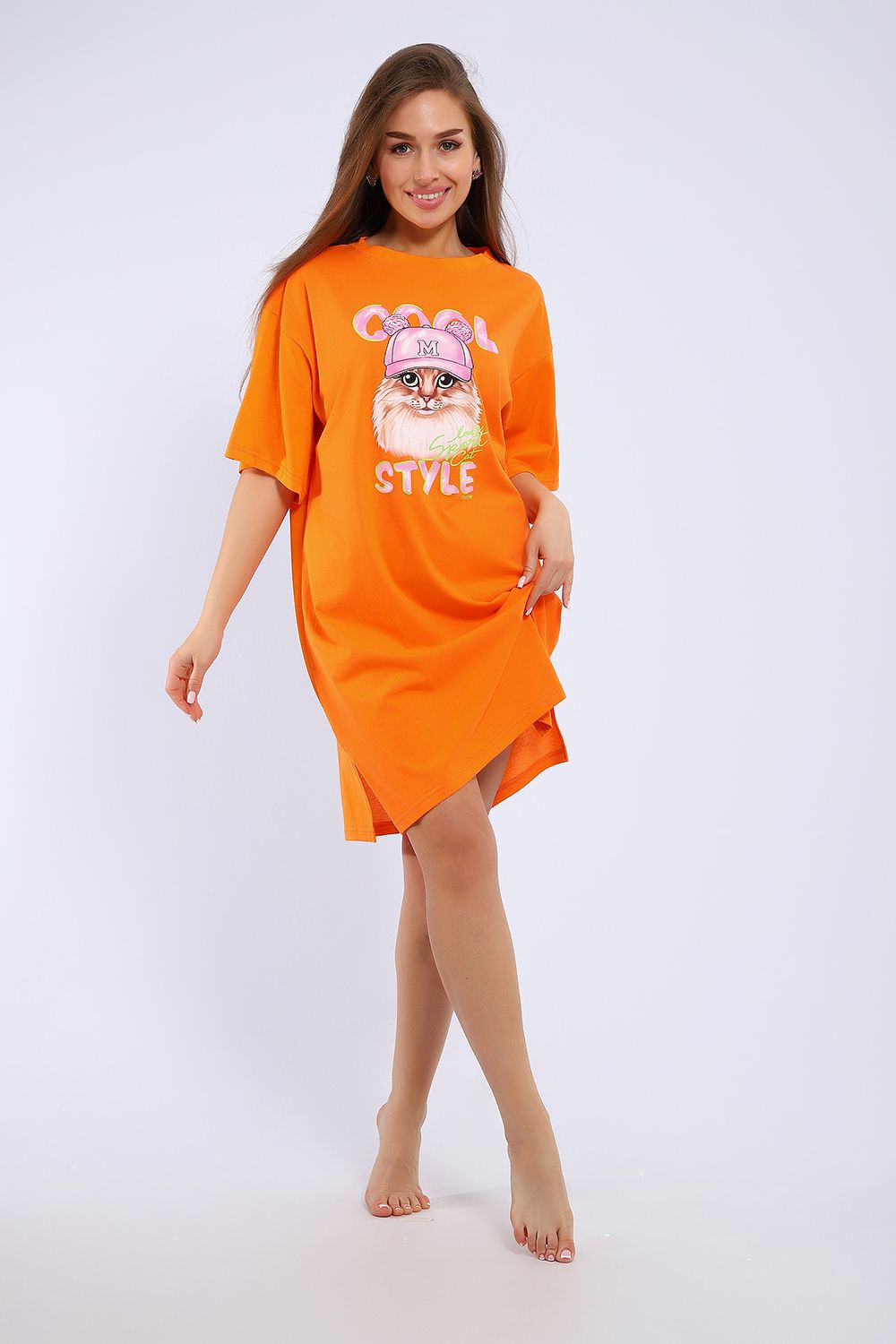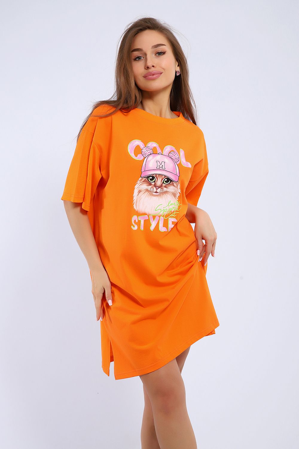 Легкое трикотажное платье-футболка формата Oversize, представлена в ярких летних расцветках, с забавным принтом на полочке. Платье идеально подойдет для любого летнего мероприятия, оно будет уместно как на пляже, так и на веселой вечеринке, прекрасно сочетается с шортами, велосипедками или лосинами. Трикотаж, из которого изготовлено платье, очень мягкий и нежный к коже и позволит хозяйке ощущать себя комфортно в любой ситуации!