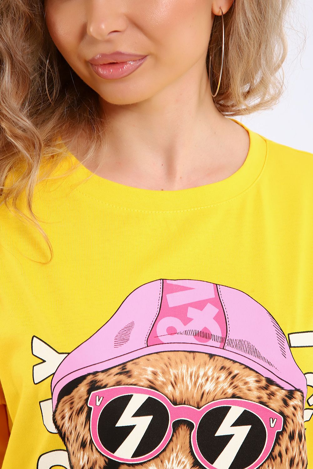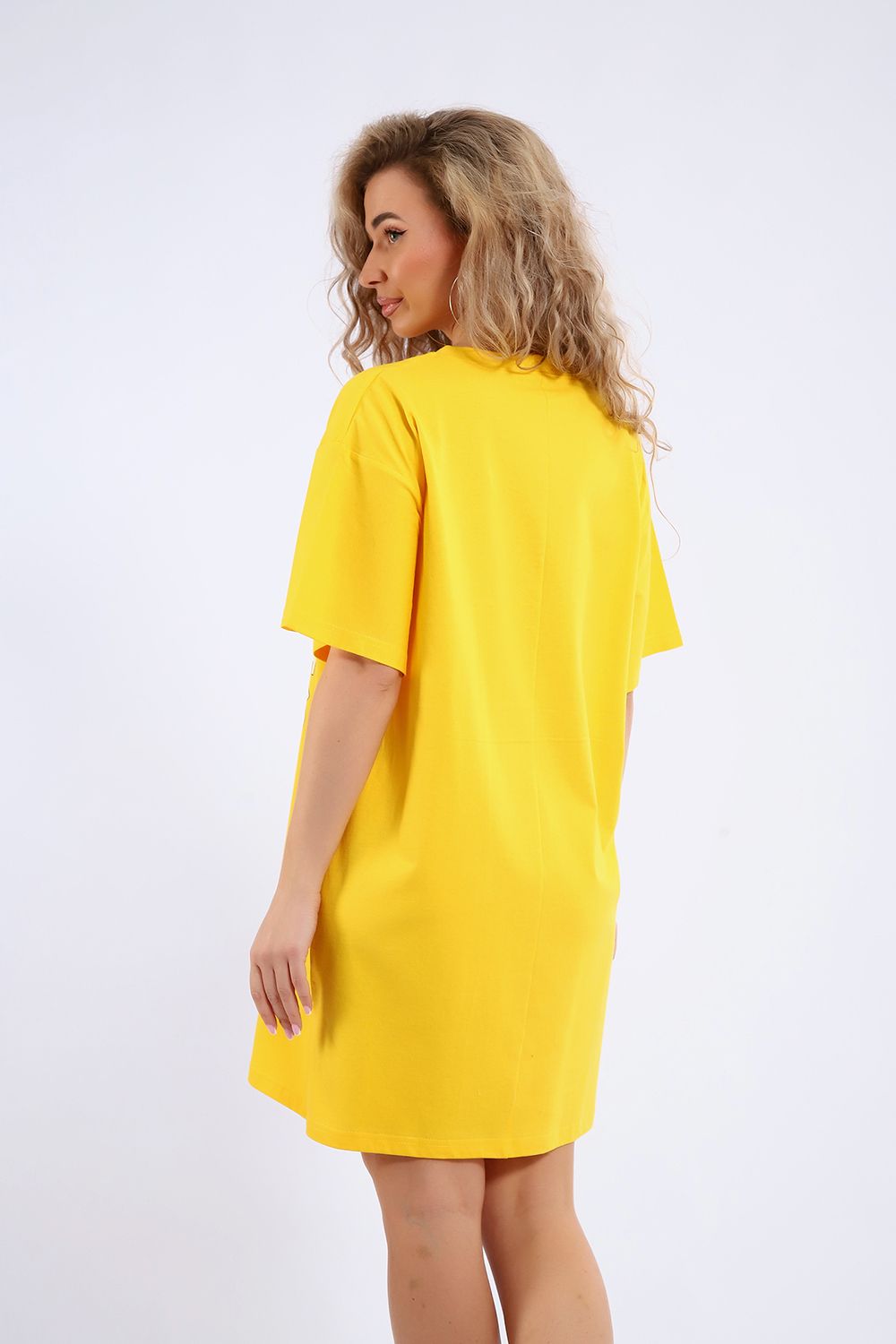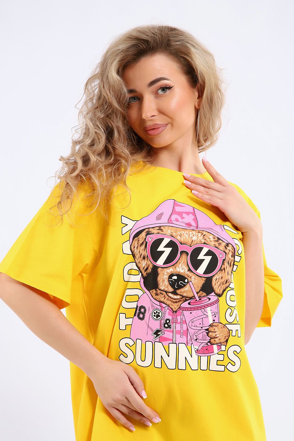 Легкое трикотажное платье-футболка формата Oversize, представлена в ярких летних расцветках, с забавным принтом на полочке. Платье идеально подойдет для любого летнего мероприятия, оно будет уместно как на пляже, так и на веселой вечеринке, прекрасно сочетается с шортами, велосипедками или лосинами. Трикотаж, из которого изготовлено платье, очень мягкий и нежный к коже и позволит хозяйке ощущать себя комфортно в любой ситуации!