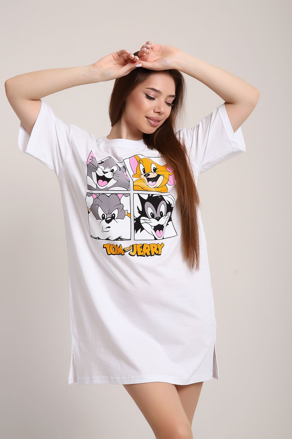 Представляем Вашему вниманию платье-футболку формата Oversize, исполненную в ярких летних расцветках, с забавным принтом на полочке. Платье идеально подойдет для любого летнего мероприятия, оно будет уместно как на пляже, так и на веселой вечеринке, прекрасно сочетается с шортами, велосипедками или лосинами. Трикотаж, из которого изготовлено платье, очень мягкий и нежный к коже и позволит хозяйке ощущать себя комфортно в любой ситуации!