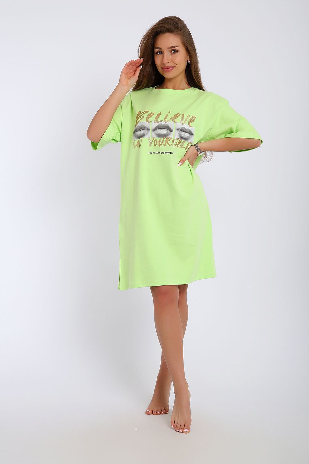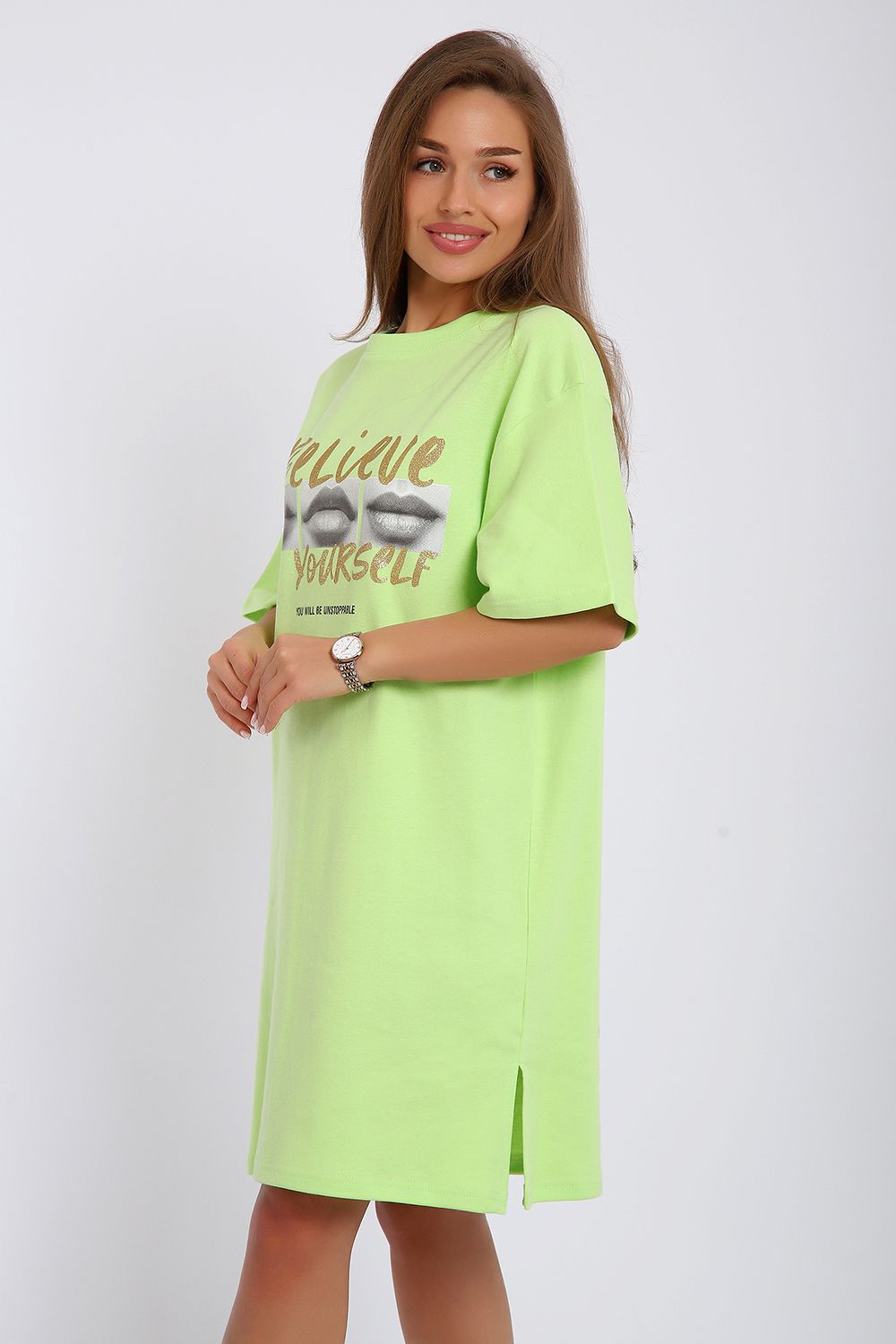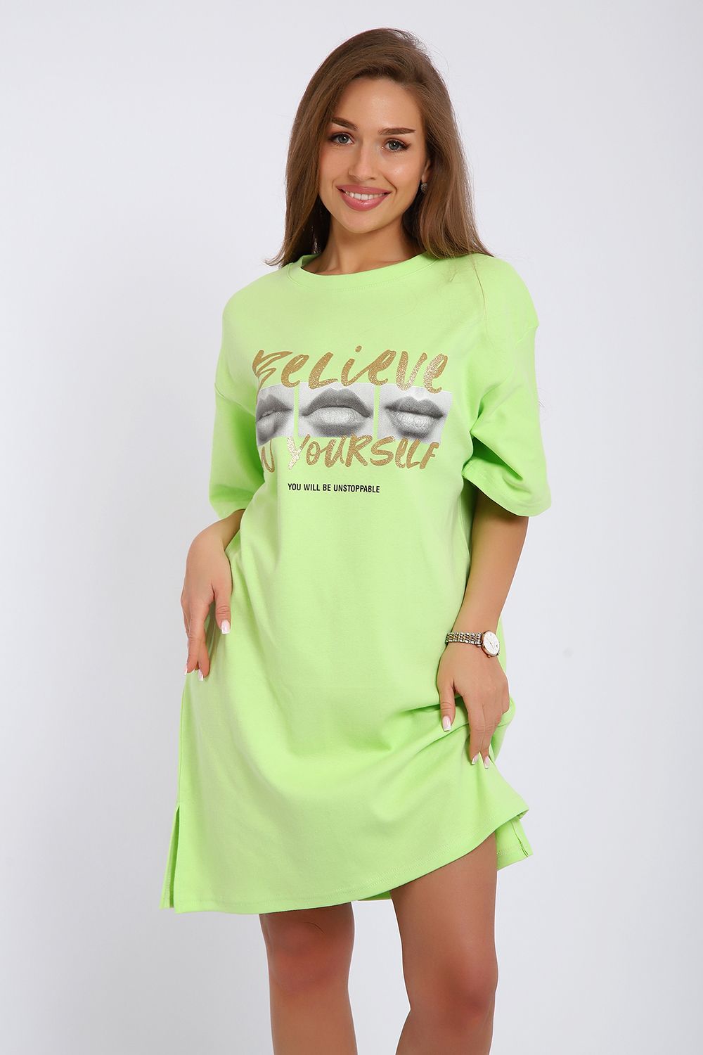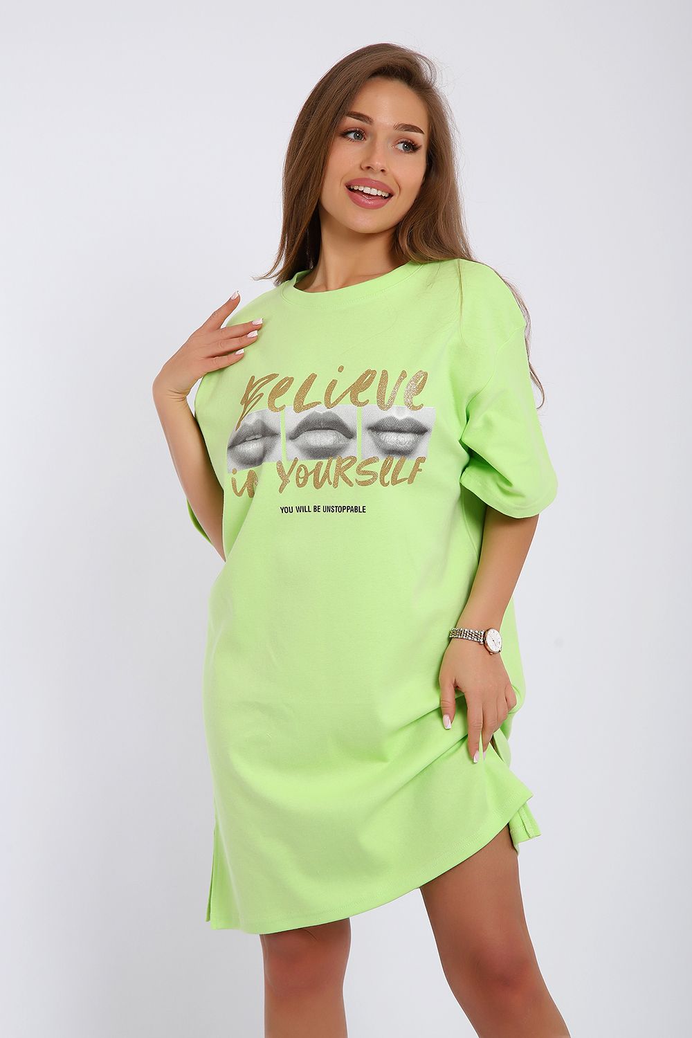 Легкое трикотажное платье-футболка формата Oversize, представлена в ярких летних расцветках, с забавным принтом на полочке. Платье идеально подойдет для любого летнего мероприятия, оно будет уместно как на пляже, так и на веселой вечеринке, прекрасно сочетается с шортами, велосипедками или лосинами. Трикотаж, из которого изготовлено платье, очень мягкий и нежный к коже и позволит хозяйке ощущать себя комфортно в любой ситуации!