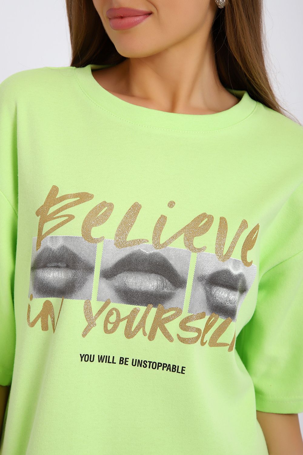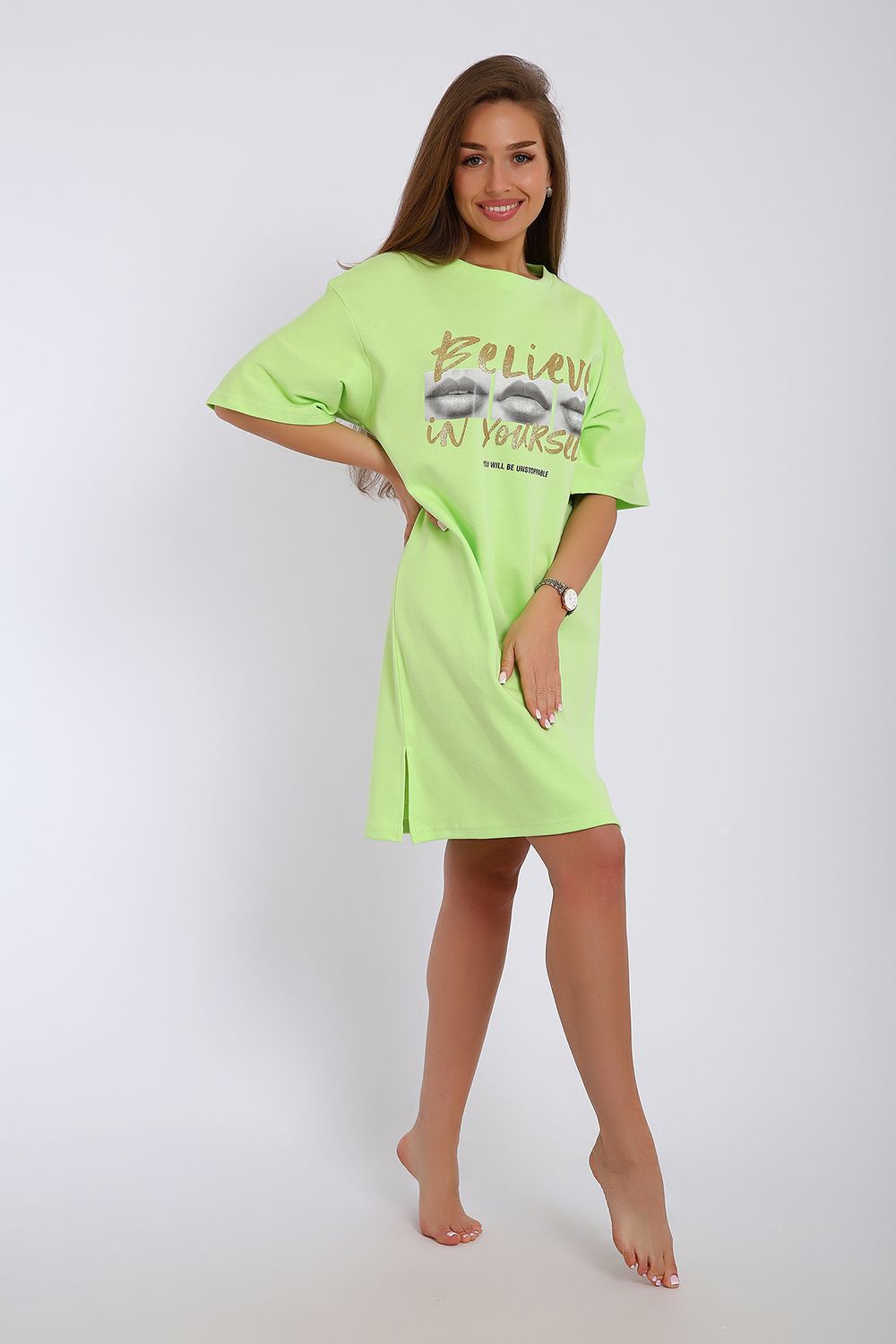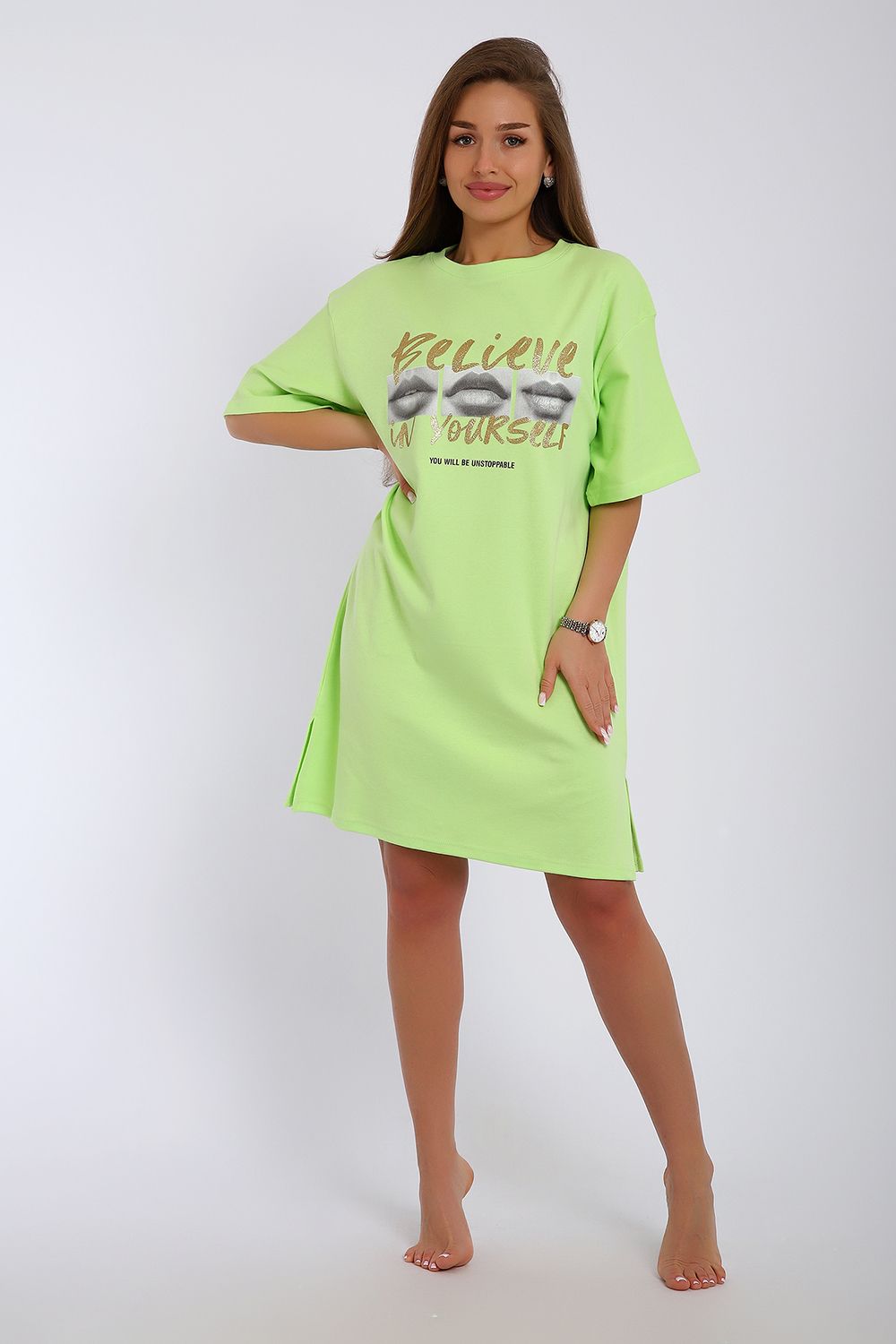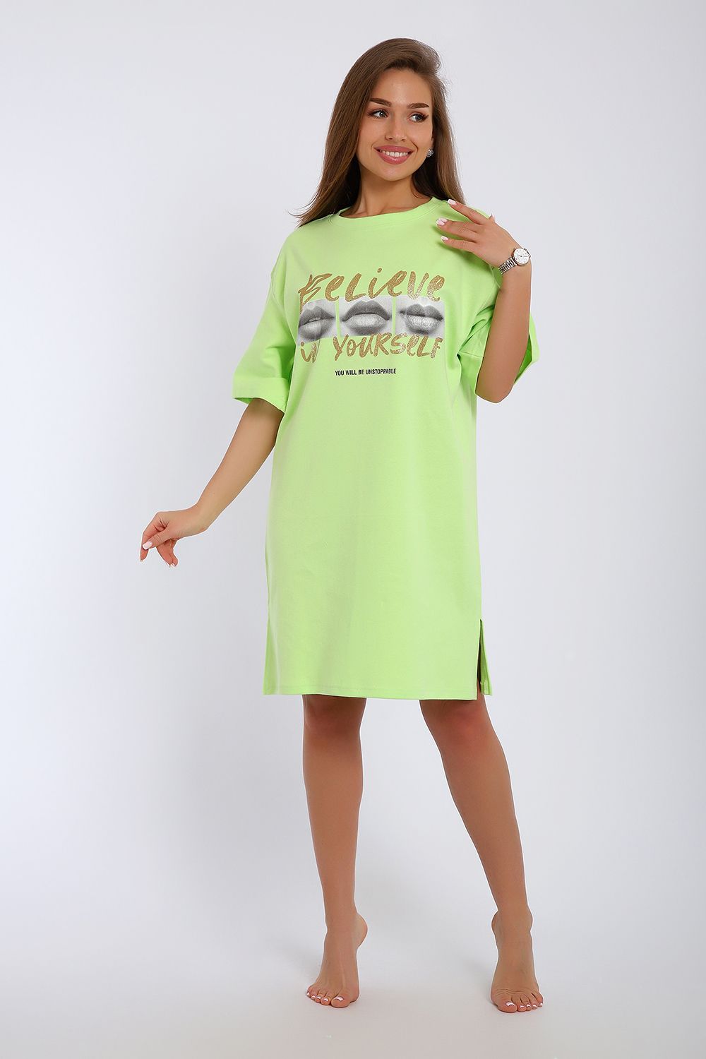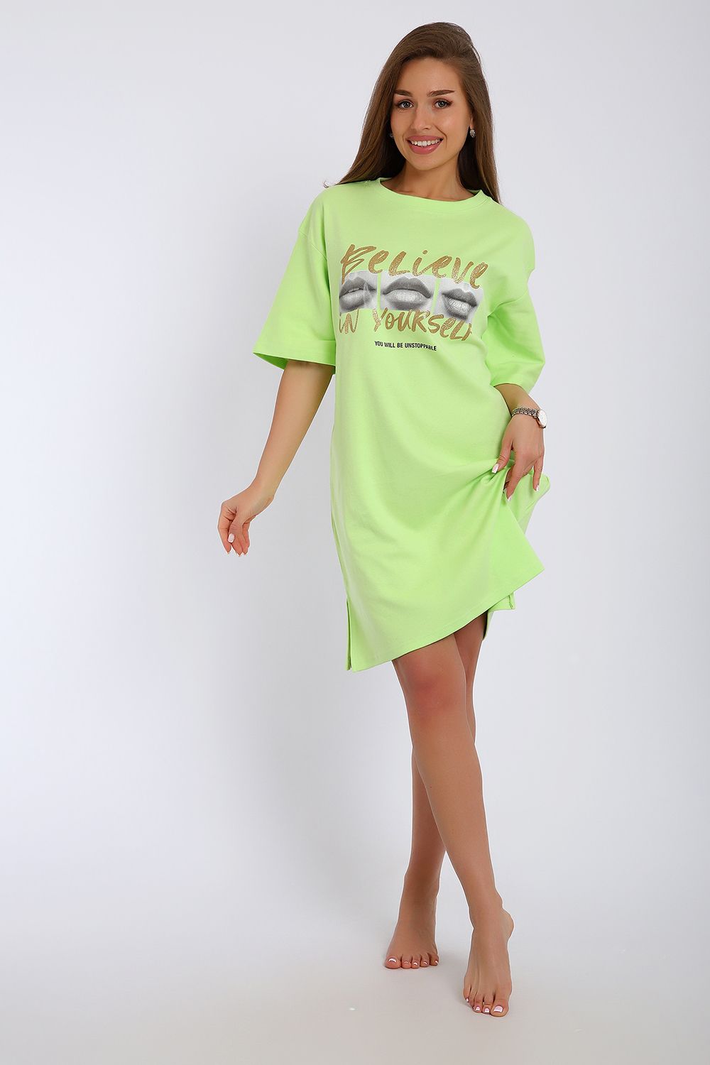 Легкое трикотажное платье-футболка формата Oversize, представлена в ярких летних расцветках, с забавным принтом на полочке. Платье идеально подойдет для любого летнего мероприятия, оно будет уместно как на пляже, так и на веселой вечеринке, прекрасно сочетается с шортами, велосипедками или лосинами. Трикотаж, из которого изготовлено платье, очень мягкий и нежный к коже и позволит хозяйке ощущать себя комфортно в любой ситуации!