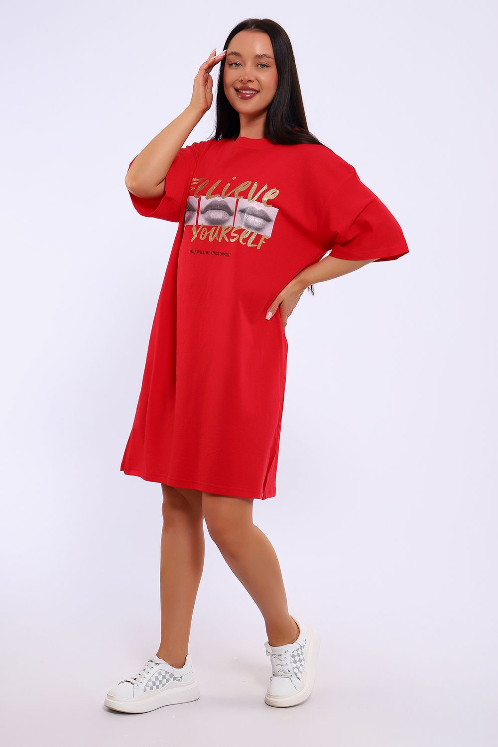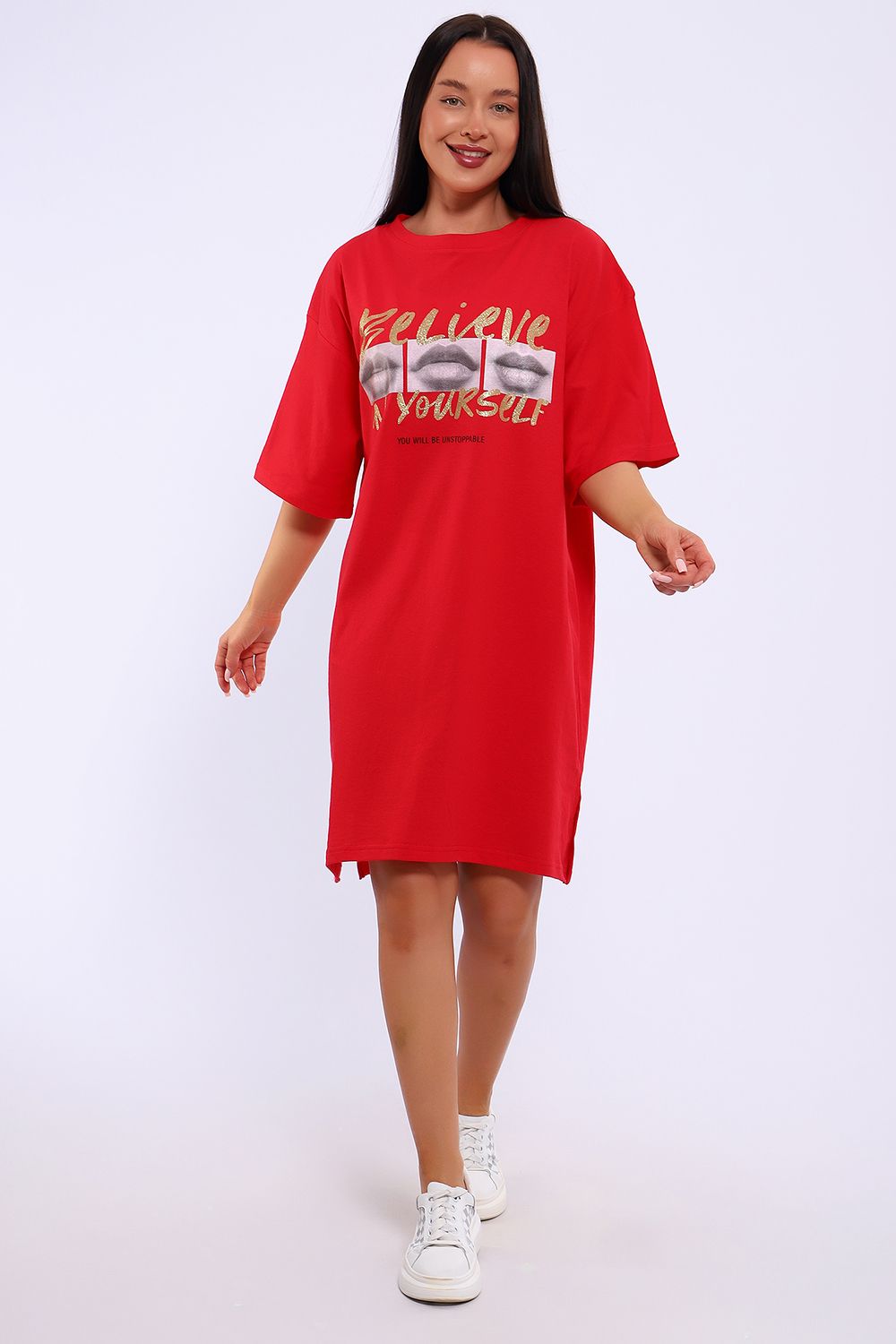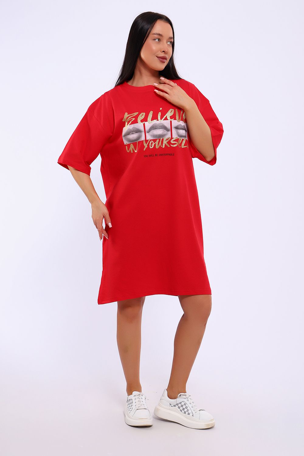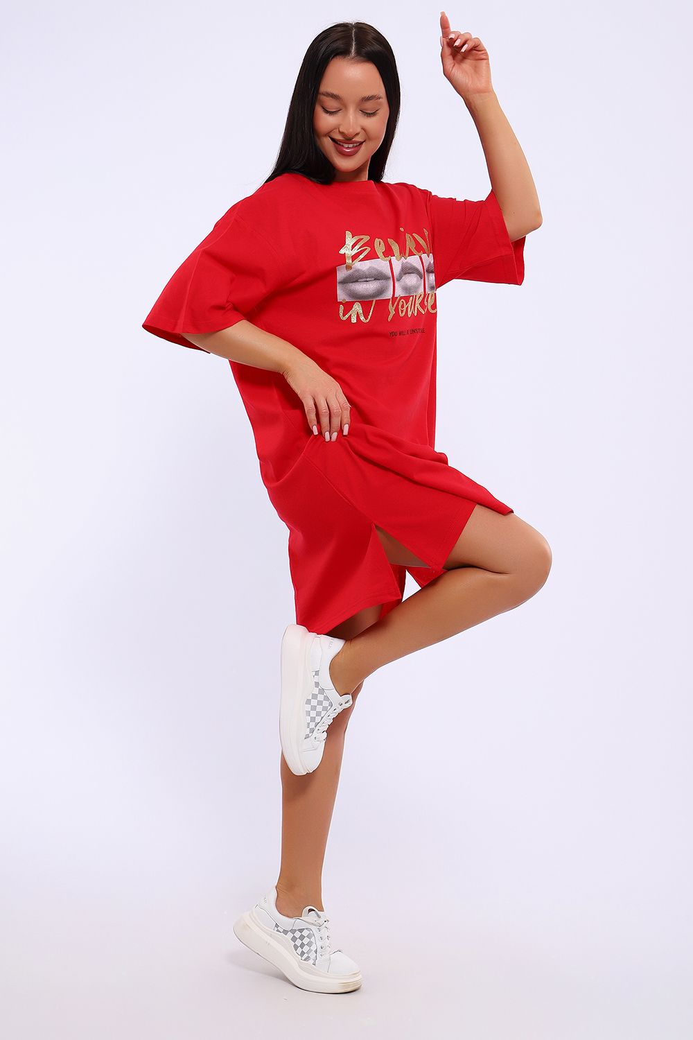 Легкое трикотажное платье-футболка формата Oversize, представлена в ярких летних расцветках, с забавным принтом на полочке. Платье идеально подойдет для любого летнего мероприятия, оно будет уместно как на пляже, так и на веселой вечеринке, прекрасно сочетается с шортами, велосипедками или лосинами. Трикотаж, из которого изготовлено платье, очень мягкий и нежный к коже и позволит хозяйке ощущать себя комфортно в любой ситуации!