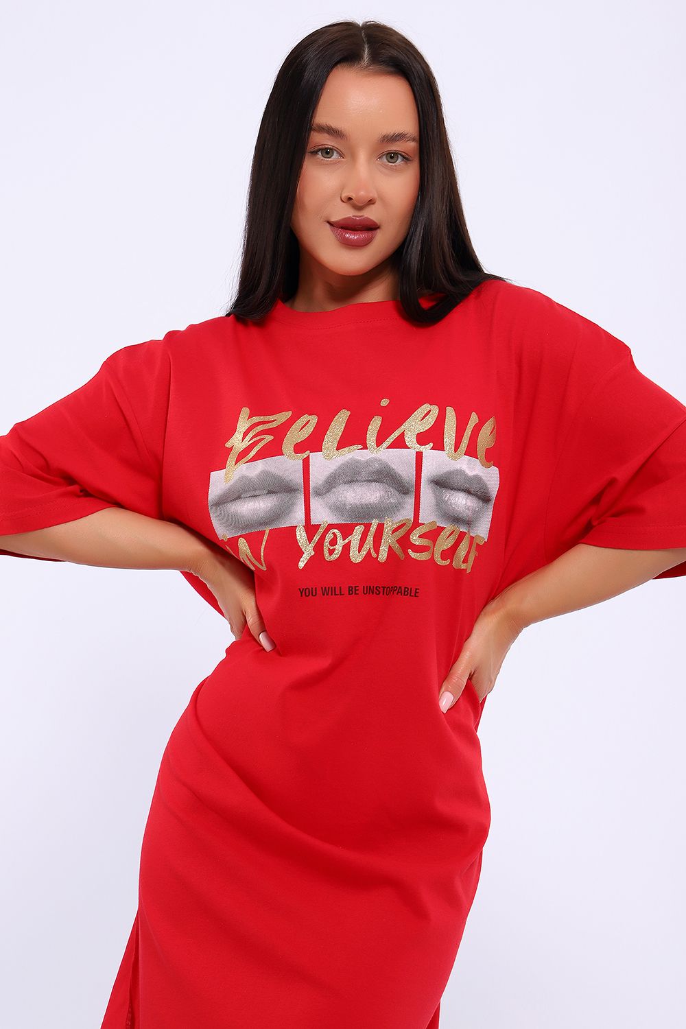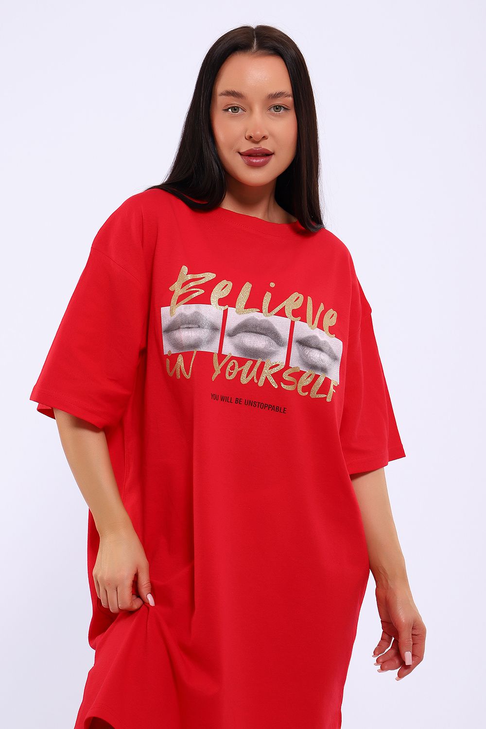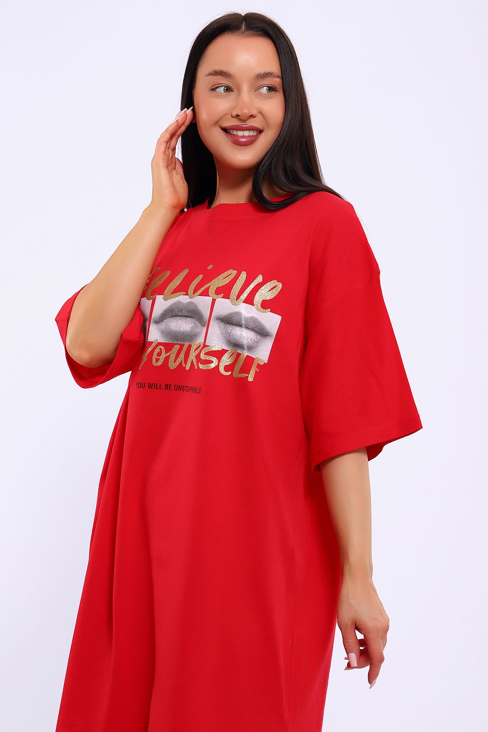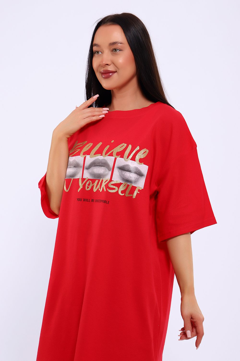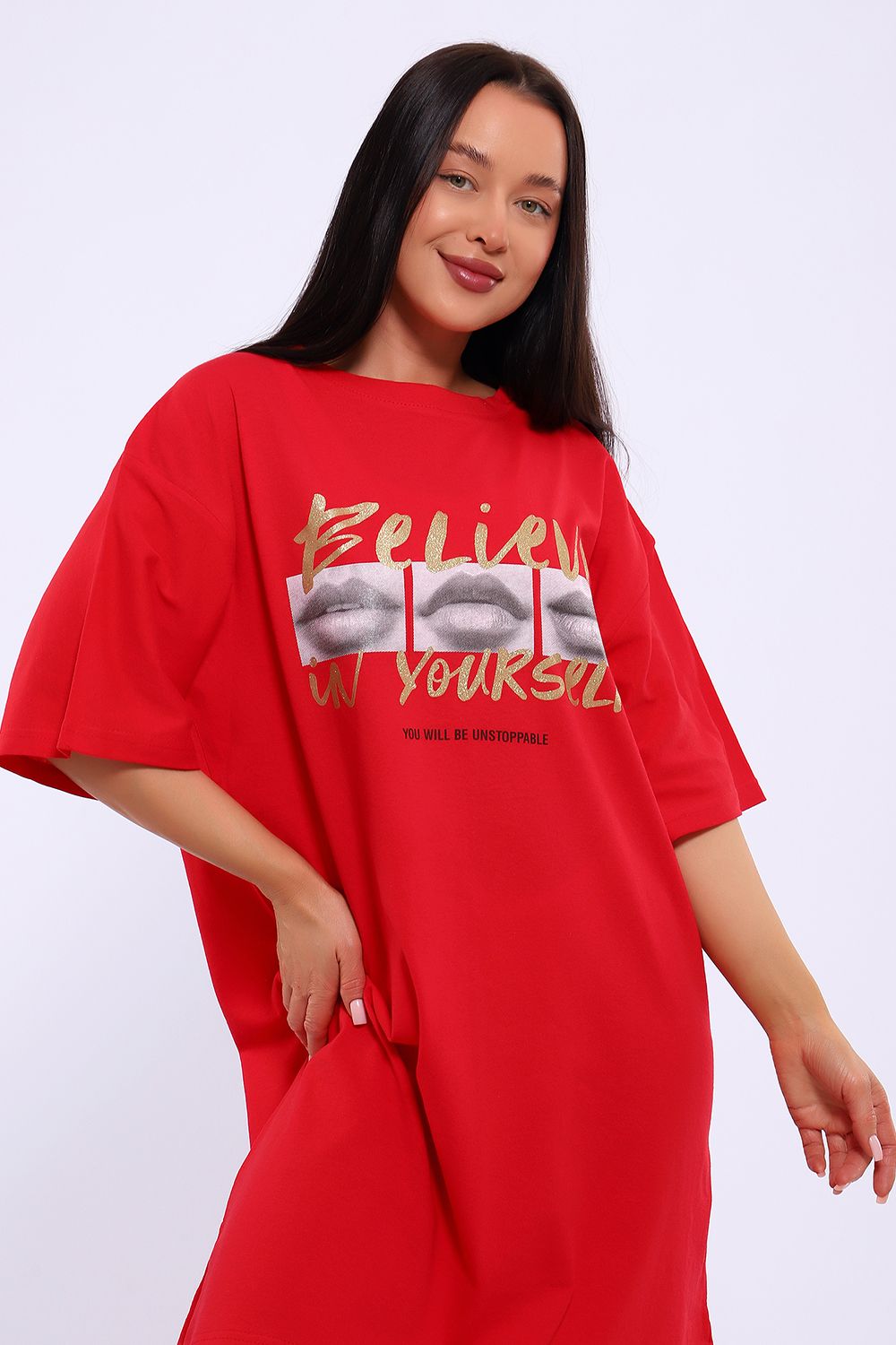 Легкое трикотажное платье-футболка формата Oversize, представлена в ярких летних расцветках, с забавным принтом на полочке. Платье идеально подойдет для любого летнего мероприятия, оно будет уместно как на пляже, так и на веселой вечеринке, прекрасно сочетается с шортами, велосипедками или лосинами. Трикотаж, из которого изготовлено платье, очень мягкий и нежный к коже и позволит хозяйке ощущать себя комфортно в любой ситуации!
