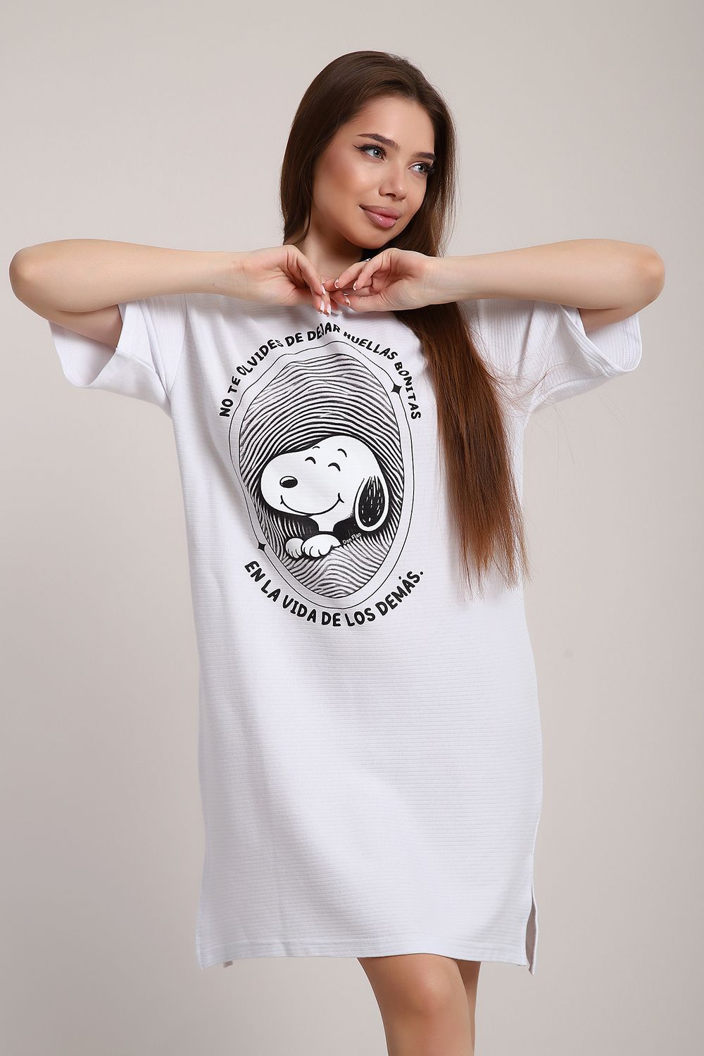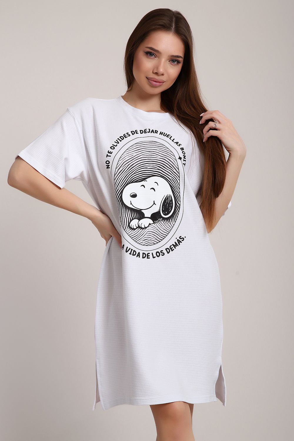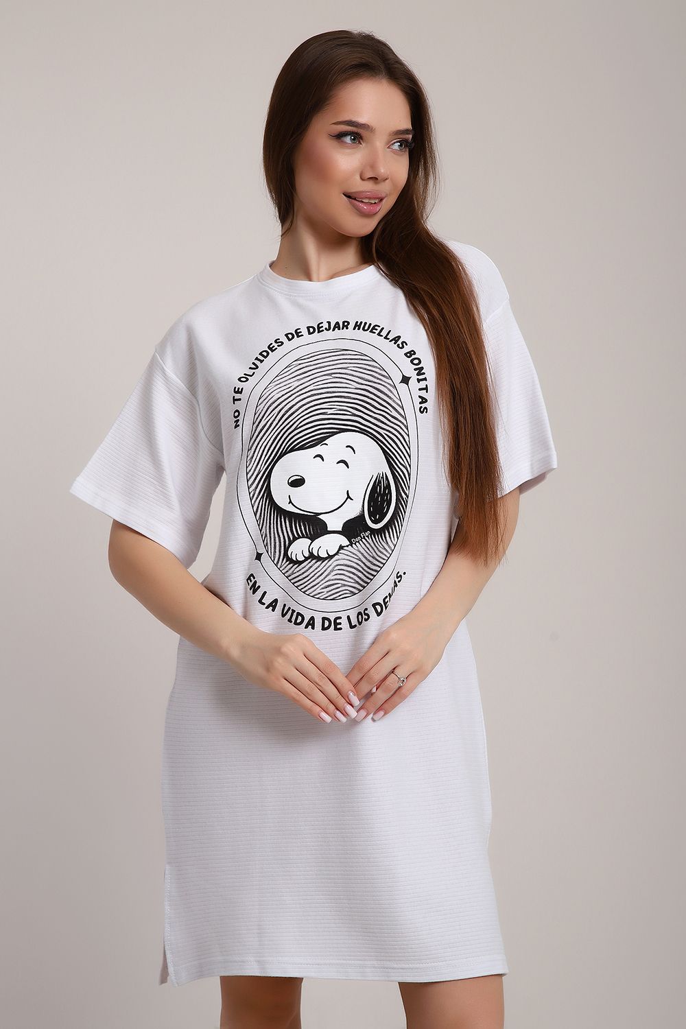 Уютное и мягкое платье-футболку формата Oversize, представлено в ярких летних расцветках, с милым и забавным принтом на полочке. Платье идеально подойдет для любого летнего мероприятия, оно будет уместно как на пляже, так и на веселой вечеринке, прекрасно сочетается с шортами, велосипедками или лосинами. Трикотаж, из которого изготовлено платье, очень мягкий и нежный к коже и позволит хозяйке ощущать себя комфортно в любой ситуации!
