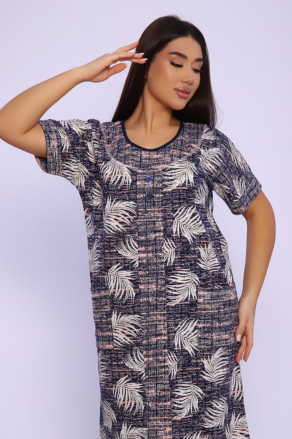 Женское платье из кулирки. Дизайн в виде крупного и мелкого гороха, несколько вариантов расцветки, по бокам накладные карманы, длина приблизительно до коленей.