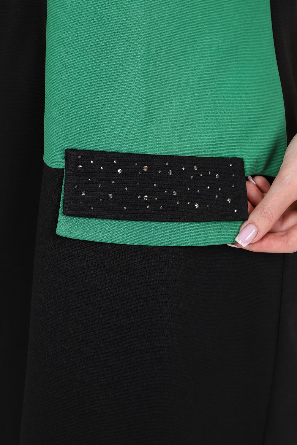 У нас представлено потрясающее женское платье прямого силуэта, которое обязательно привлечет внимание окружающих! Благодаря уникальному сочетанию двух расцветок, оно идеально подчеркнет вашу индивидуальность и стиль. Полочка этого платья дополнена яркой цветной вставкой, которая придает ему дополнительную изюминку. Декоративный клапан на полочке платья, украшенный элегантными стразами, выглядит роскошно и приковывает взгляды. Горловина округлая и удобная, позволяющая чувствовать себя комфортно в течение всего дня. Рукав платья три четверти, что делает его идеальным выбором для любого сезона. Наше платье доступно в размерном ряду от 50 по 60 размер, обеспечивая возможность подобрать идеально сидящий вариант для каждой женщины.Не упускай шанс быть в центре восхищенных взглядов.