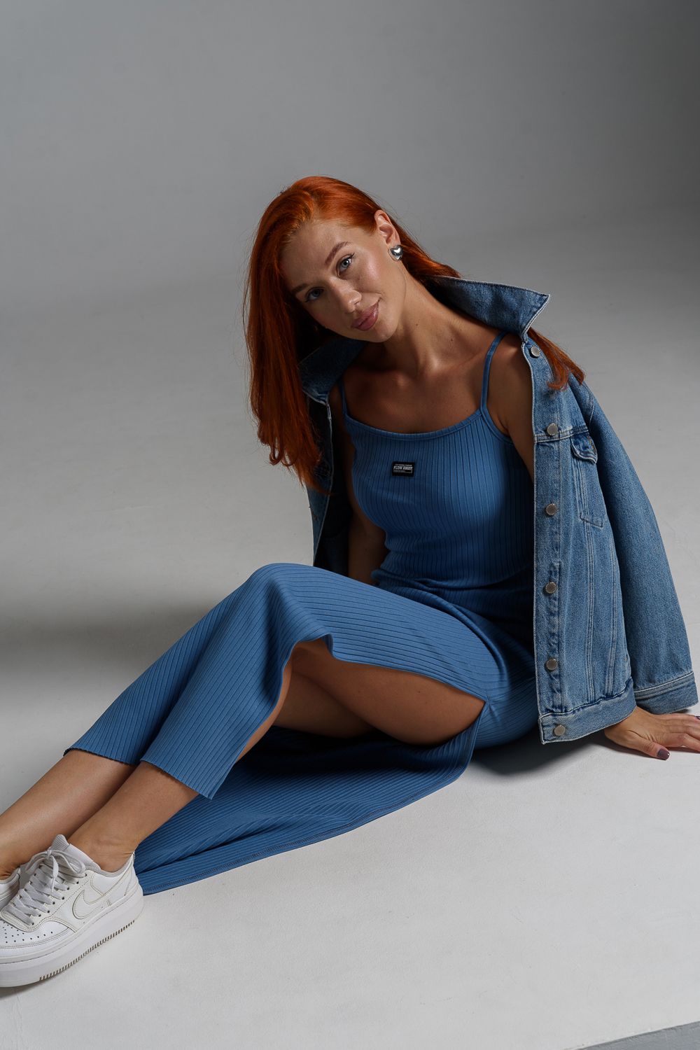 Длинное спортивное платье приталенного силуэта на тонких брительках.Мягкая ткань в рубчик обеспечивает комфорт.Идиальный вариант на каждый день или в отпуск,на море или путешествий и отдыха.Длинное сексуальное платье с разрезом идеально сочетается с любой спортивной обувью будь,то кросовки,кеды,сандали.