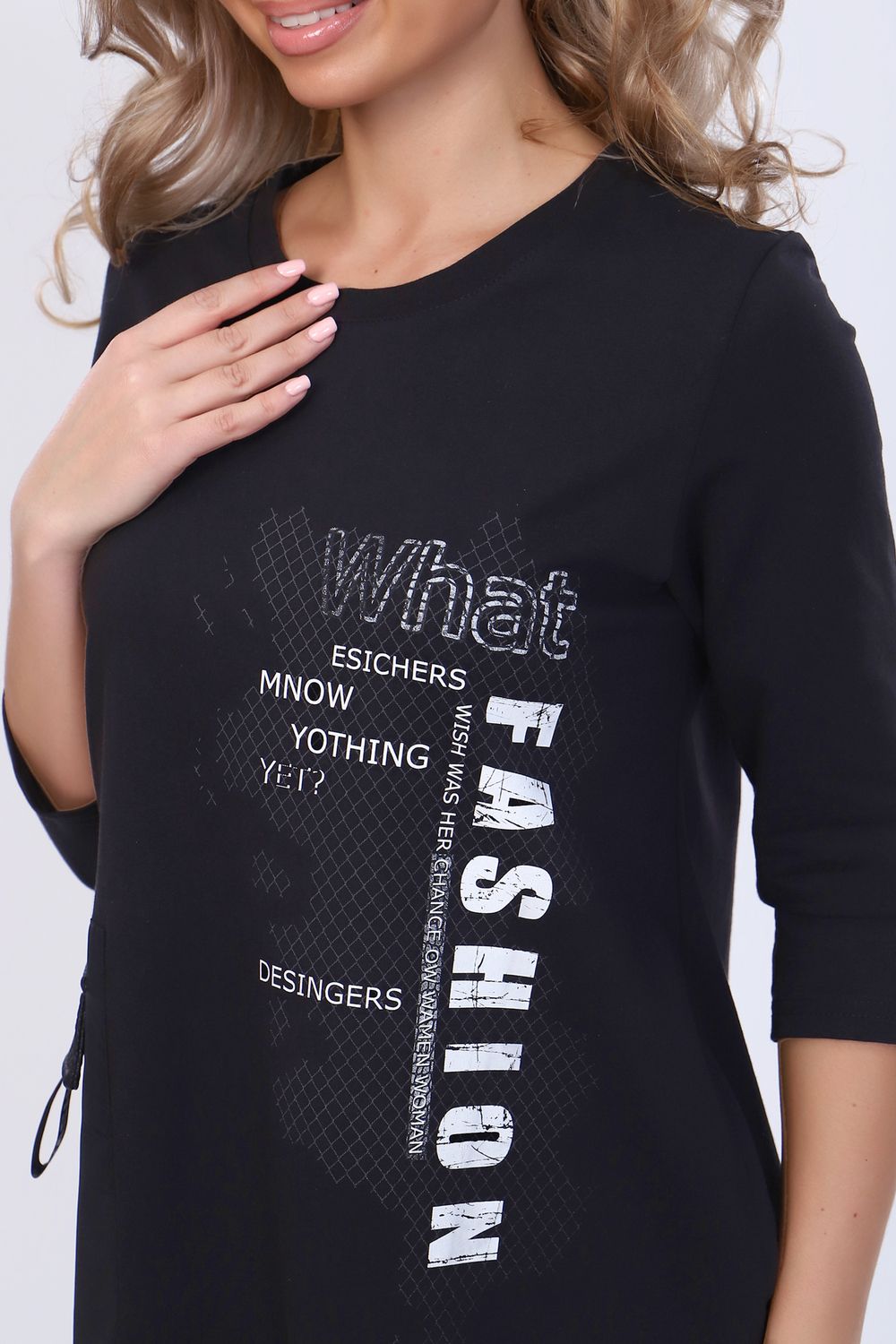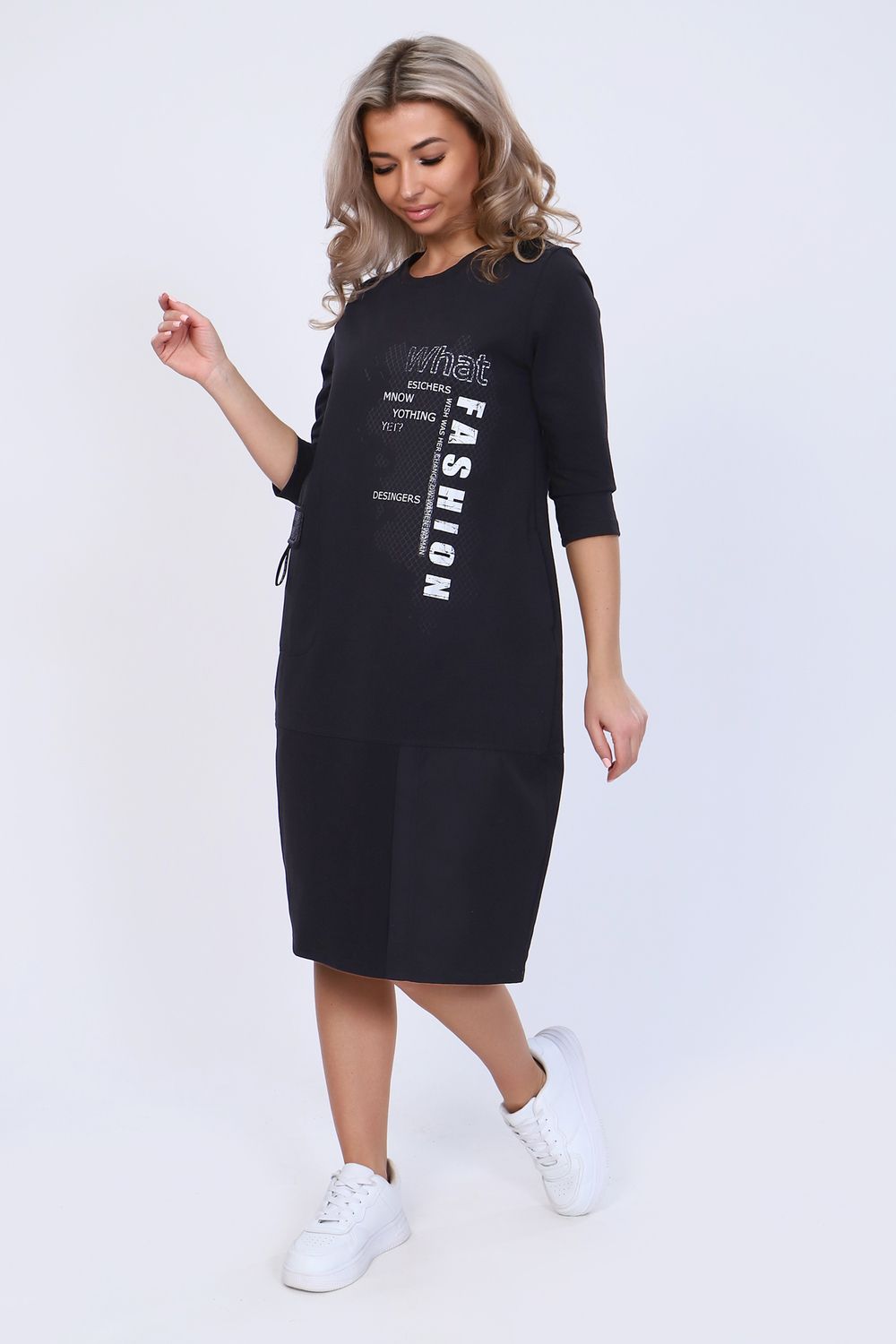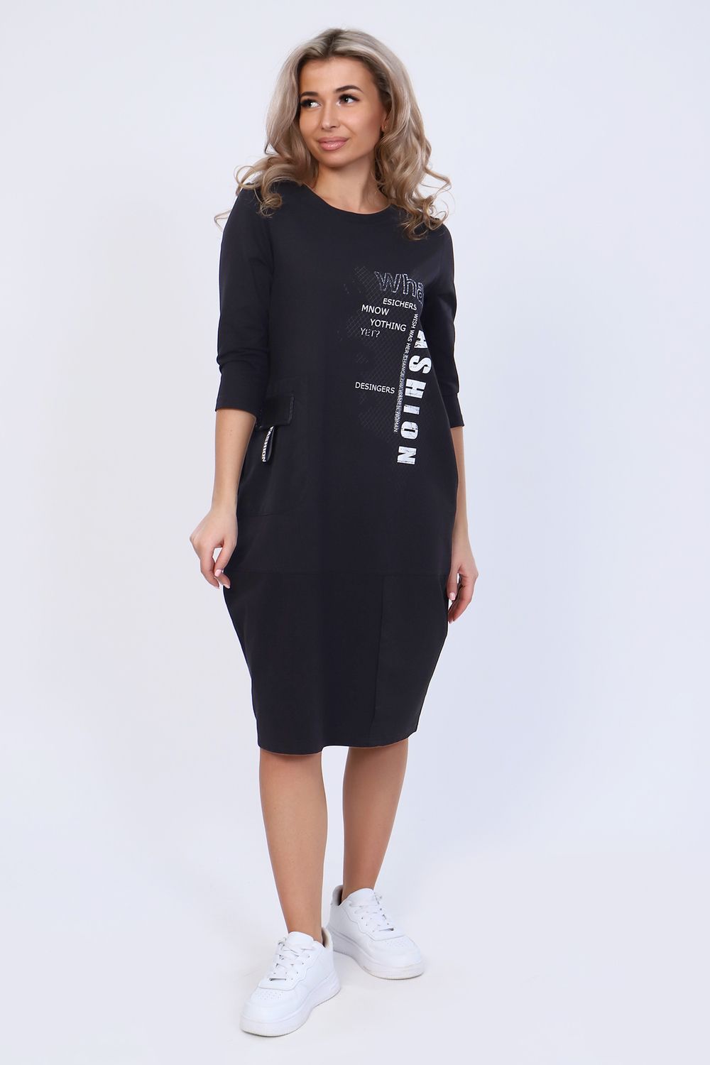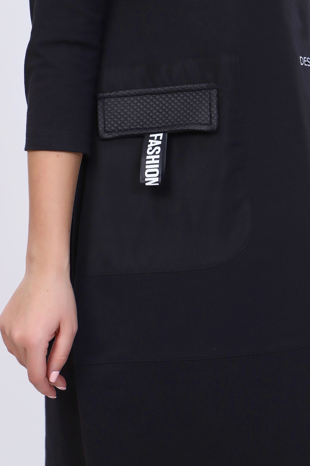Модное женское платье в стиле оверсайз подойдет на любой тип фигуры. Главная изюминка платья - декоративный карман из кожи и большой, красивый принт спереди. Рукав 3/4, длина ниже колена, карман в боковом шве - прекрасный вариант для тех, кто любит уютную и удобную одежду.