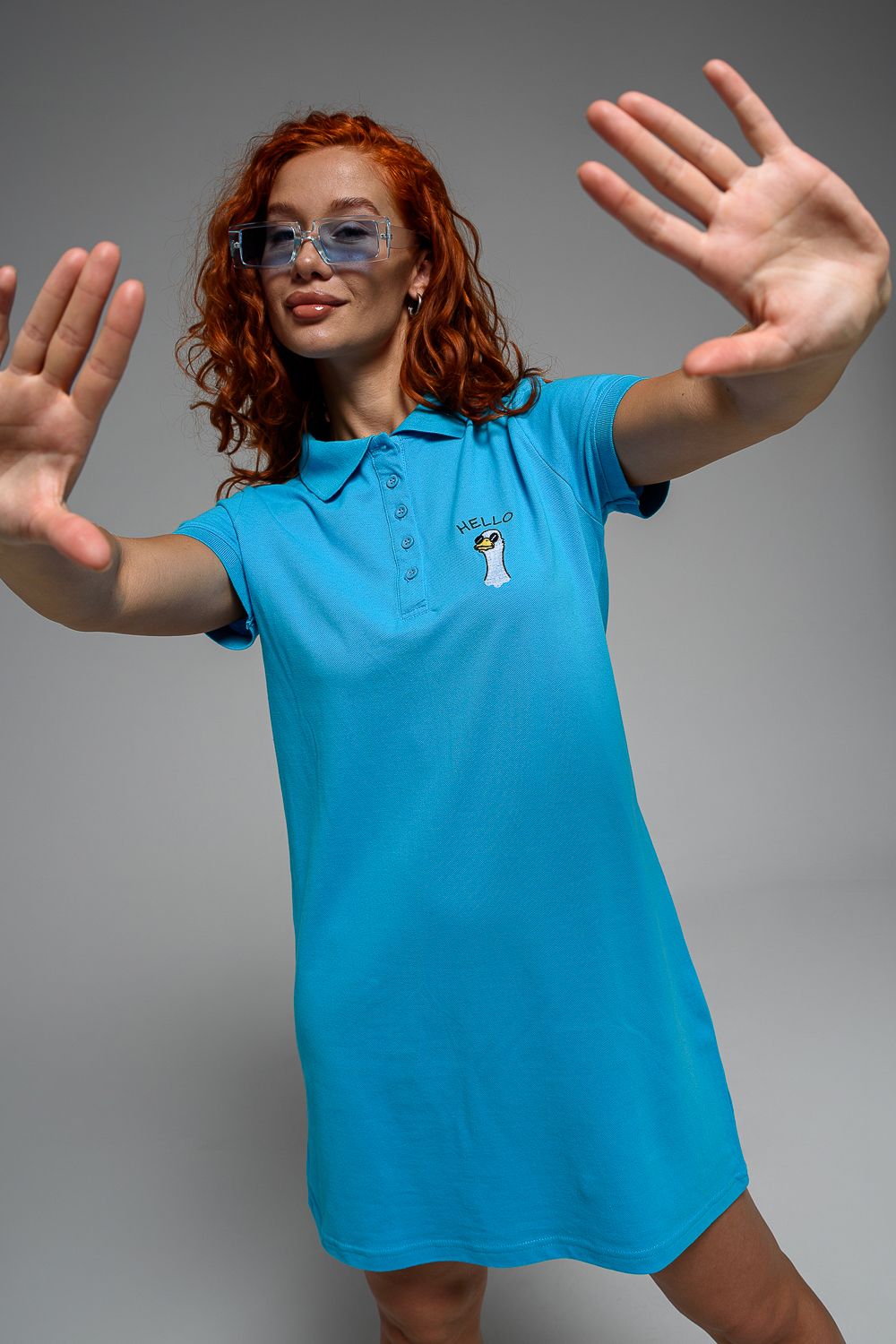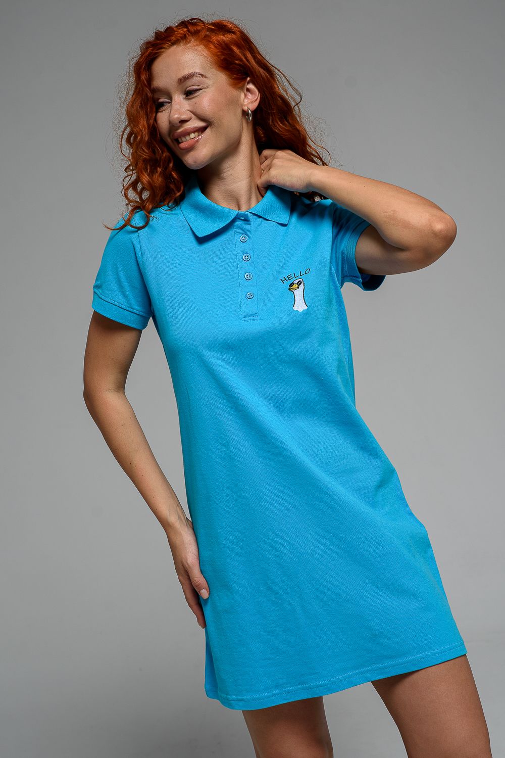 Платье женское поло 8502 - бирюза+HELLO
