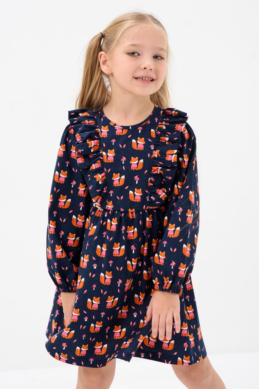 Платье Крылья длинный рукав детское - ЛИСИЧКИ на Темно-Синем