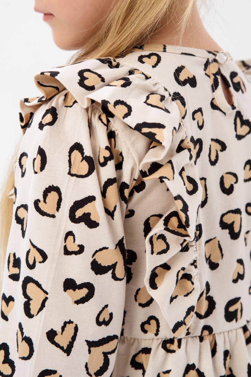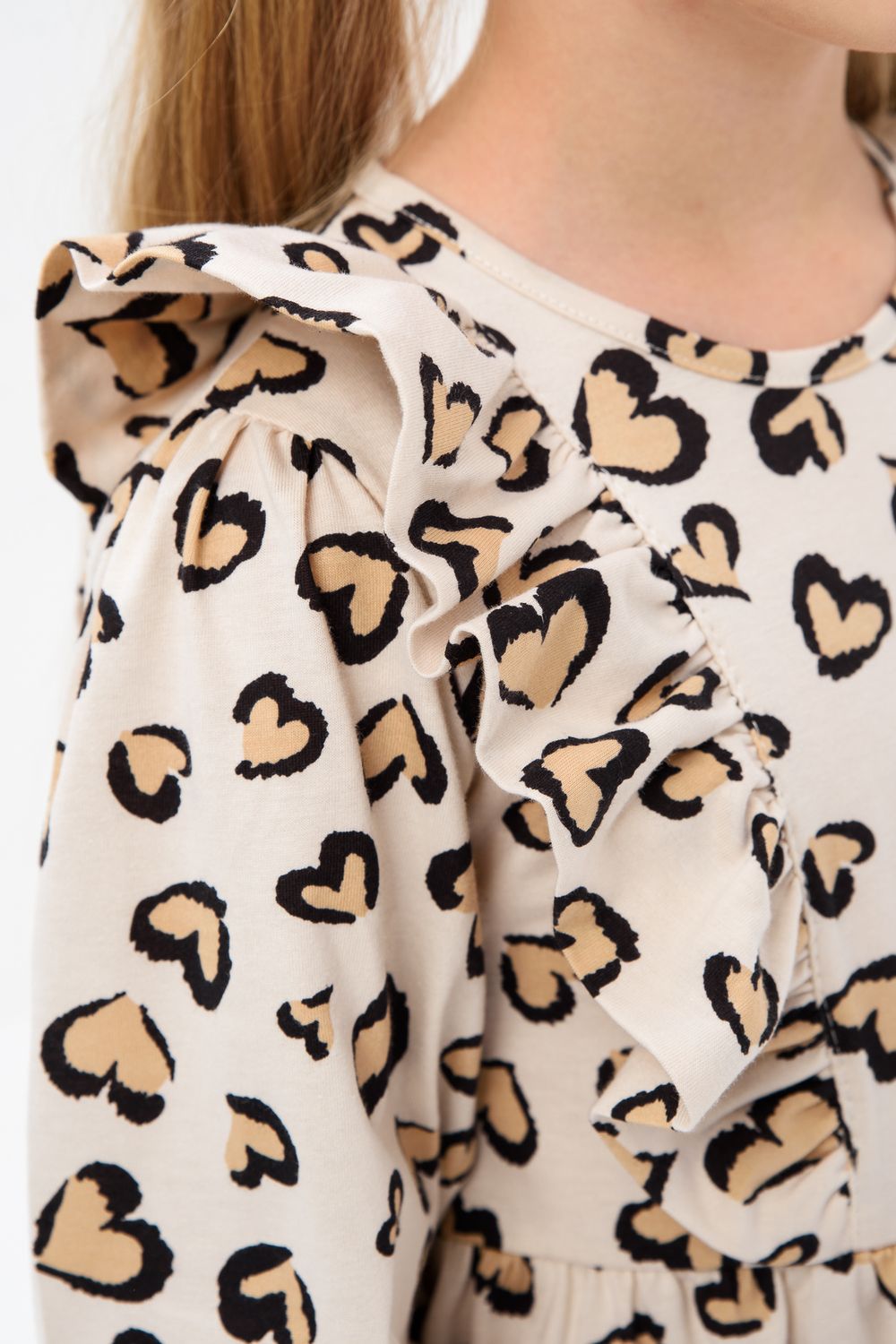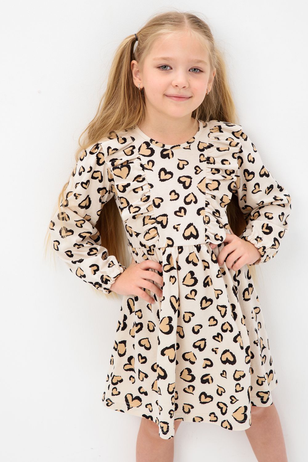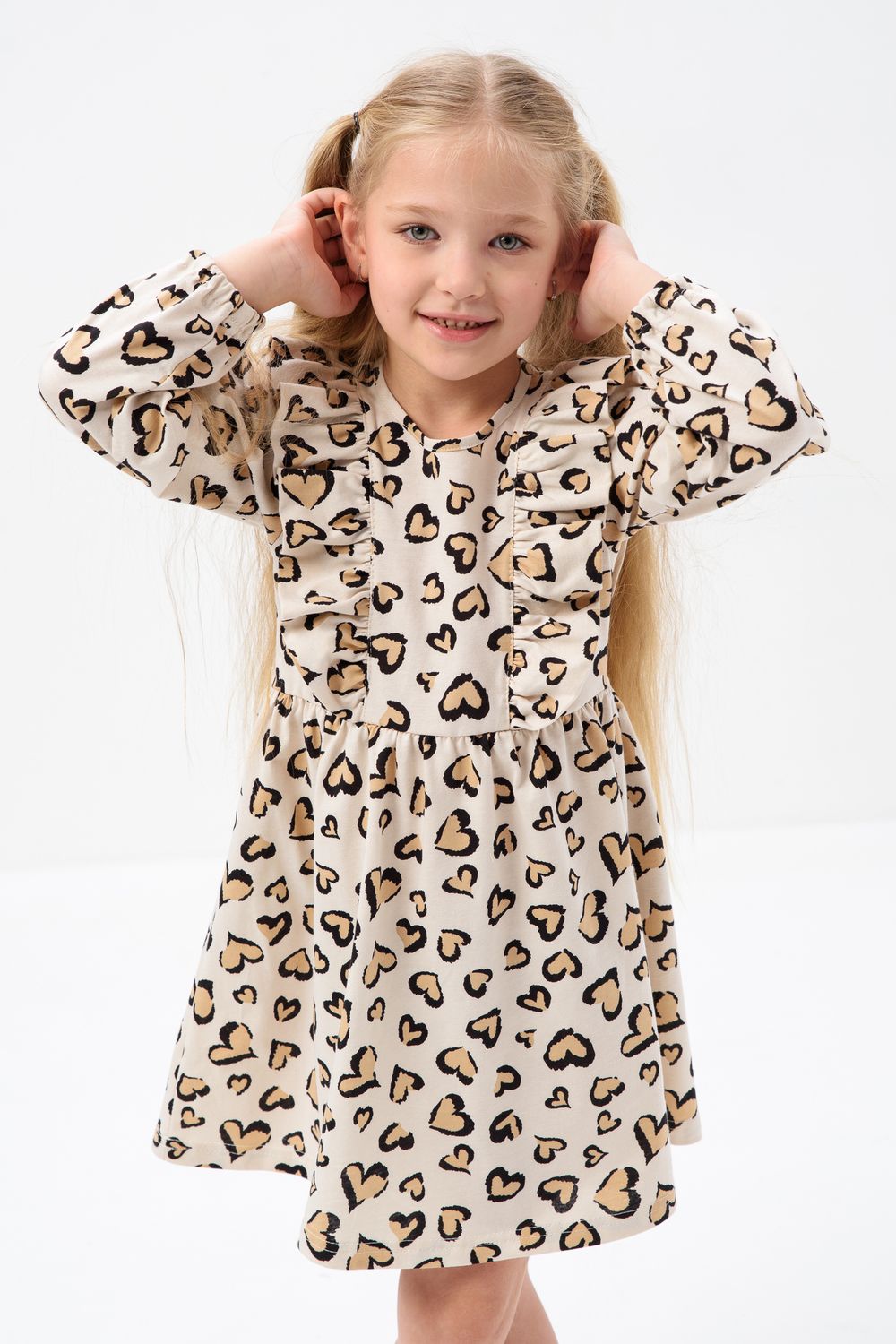 Платье Крылья длинный рукав детское - СЕРДЕЧКИ на Бежевом
