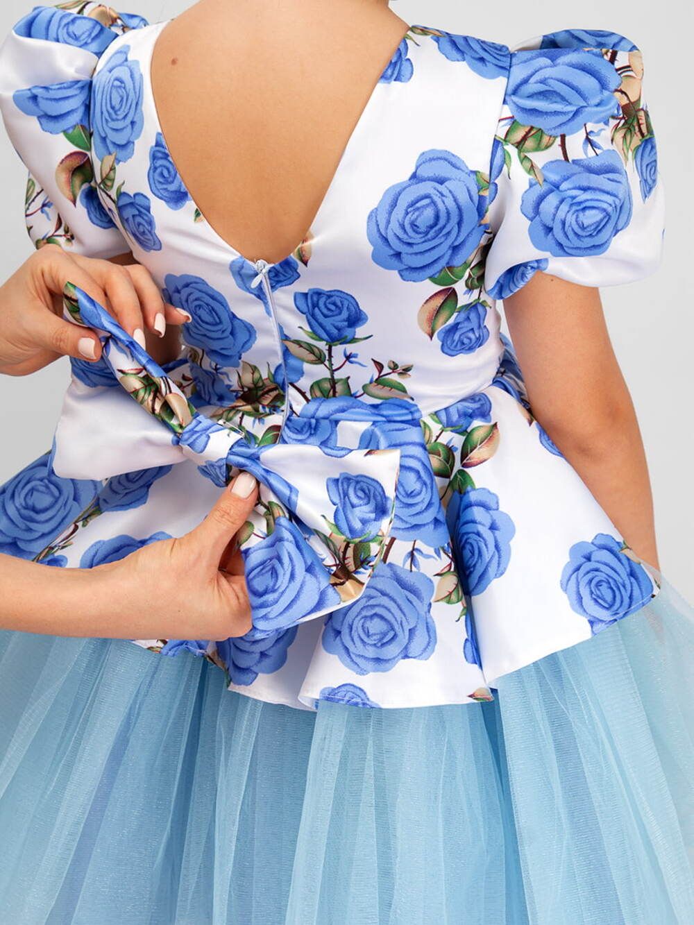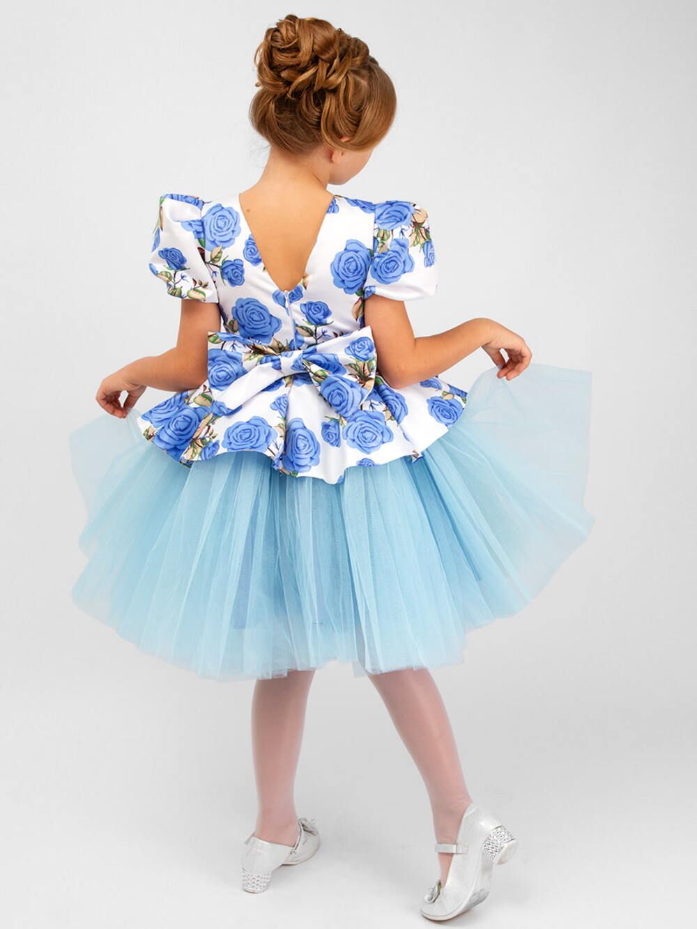 Платье для девочки Соль&Перец. Нарядное платье для девочки отличается особым шармом и элегантностью. Верх платья выполнен из качественной атласной ткани, которая обеспечивает комфорт и долговечность. Пышная и воздушная юбочка сделана из фатина с добавлением атласного подклада, что придаёт платью дополнительную легкость и объём. Платье застёгивается сзади на молнию, что позволяет быстро и легко одеть или снять его. Кроме того, платье дополнено съёмным бантом. Яркий принт на платье делает его идеальным выбором для праздников, торжеств и других особых случаев.
