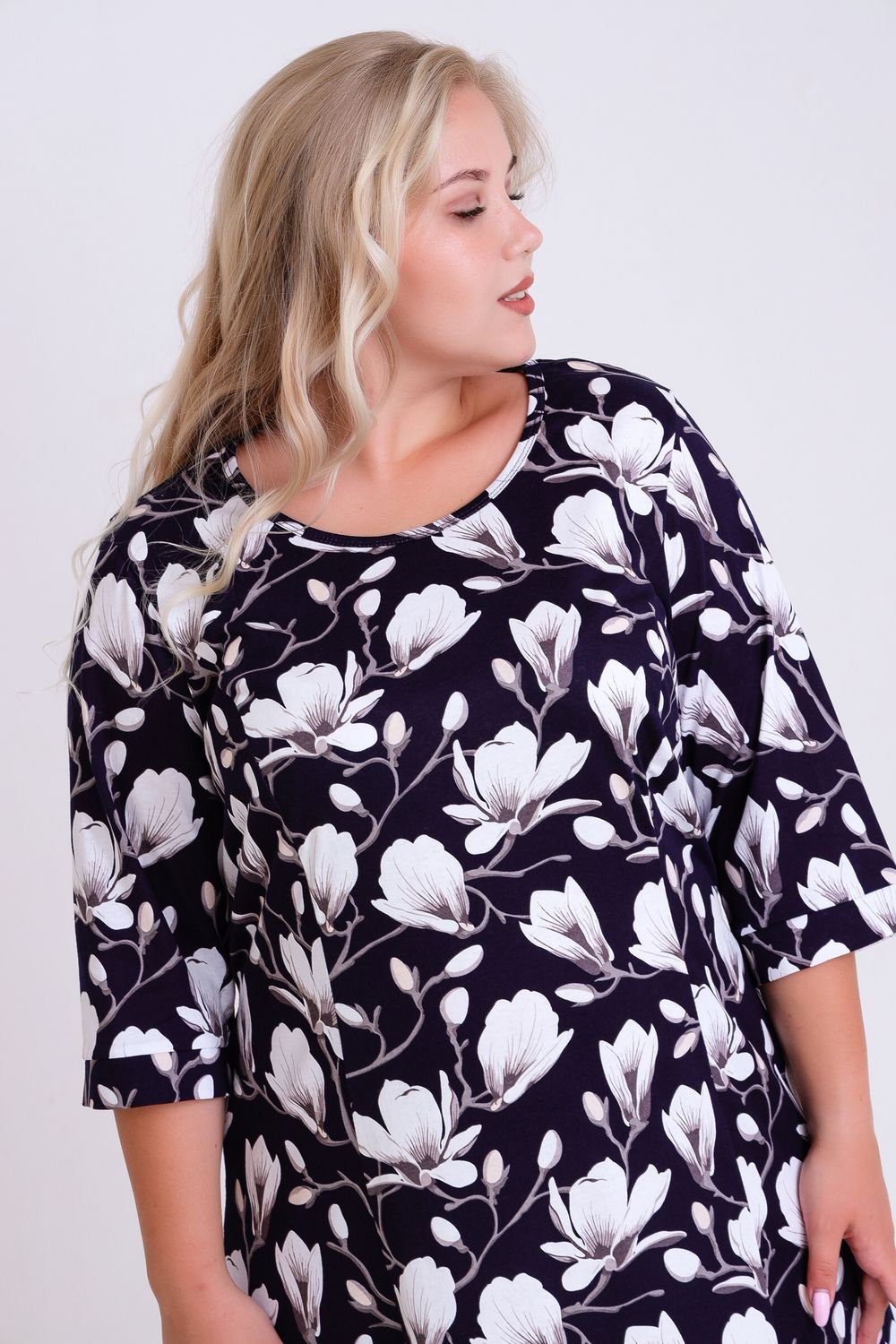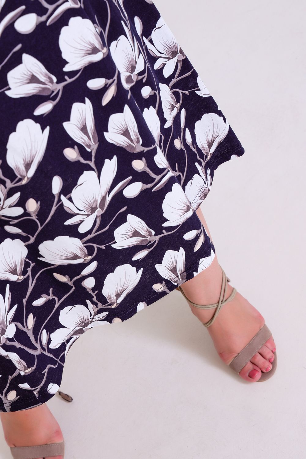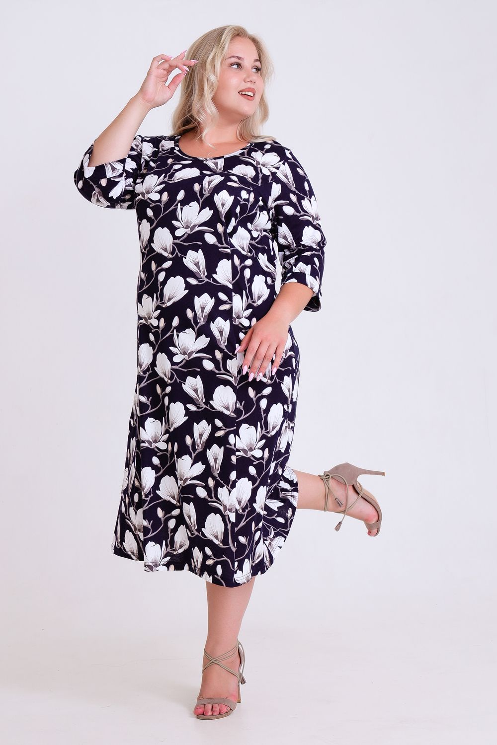 Длинное, расклешенное к низу платье из 100% хлопка. Слегка приталенное, благодаря рельефам спереди и сзади. Рукав 3/4 с манжетой, горловина обработана бейкой. Платье подчёркивает достоинства и скрывает недостатки фигуры женщины любого размера. Удобный свободный крой подарит Вам полную свободу движений и комфорт! Широкий размерный ряд.