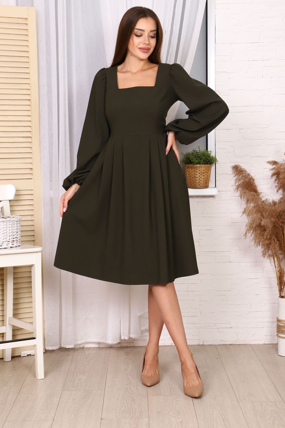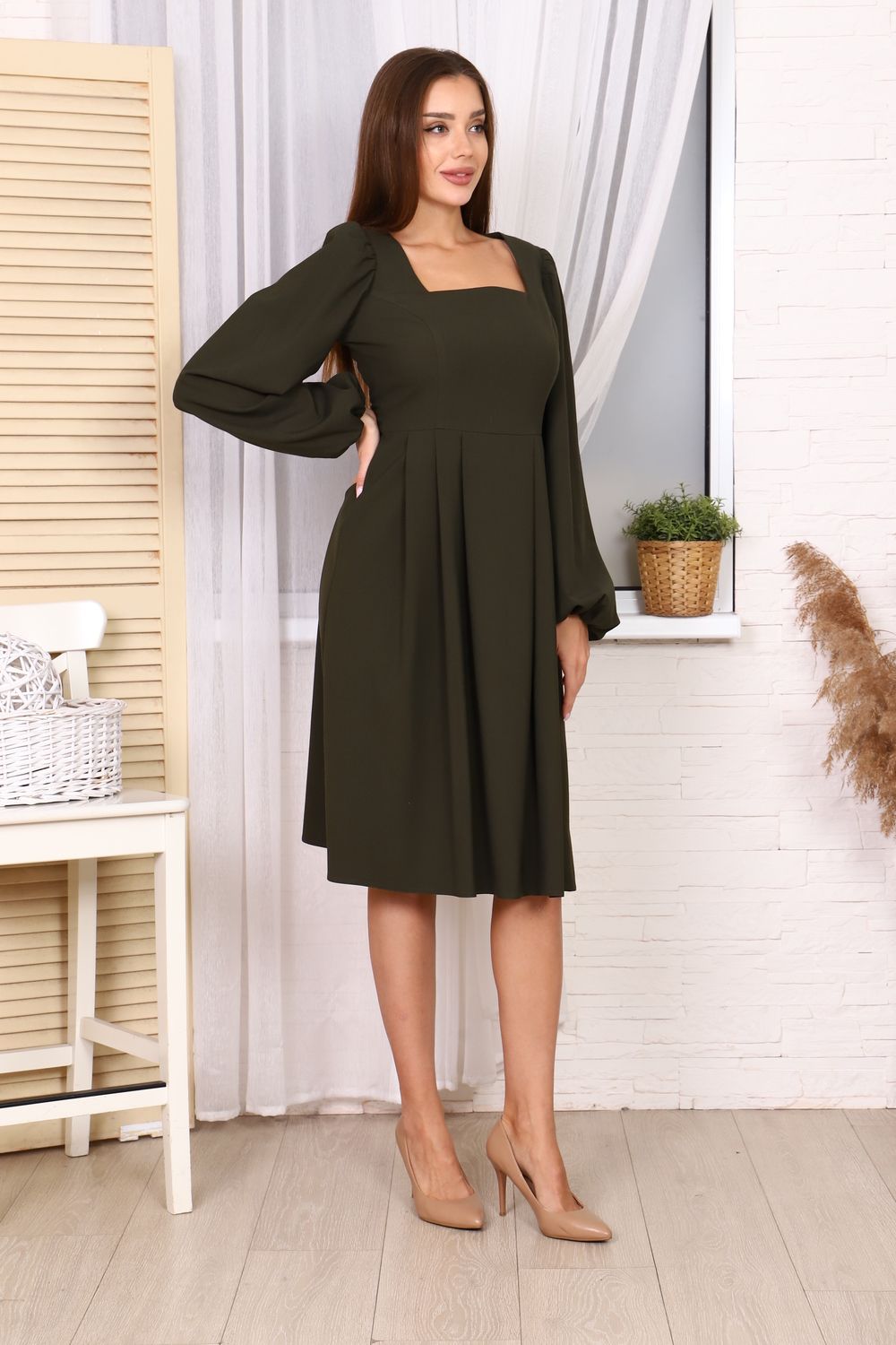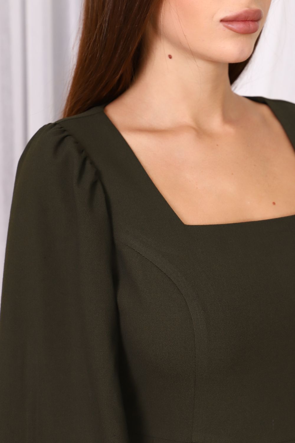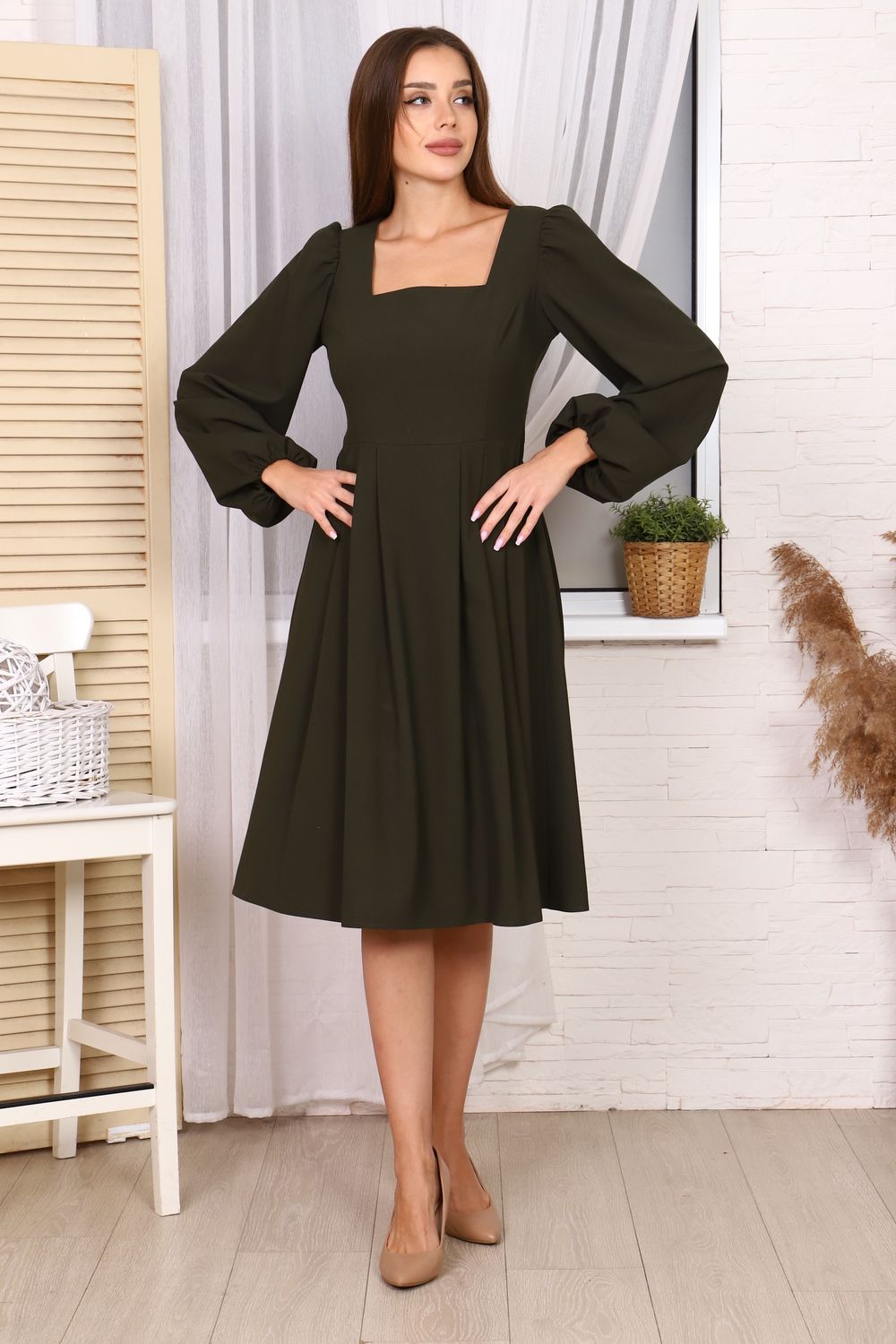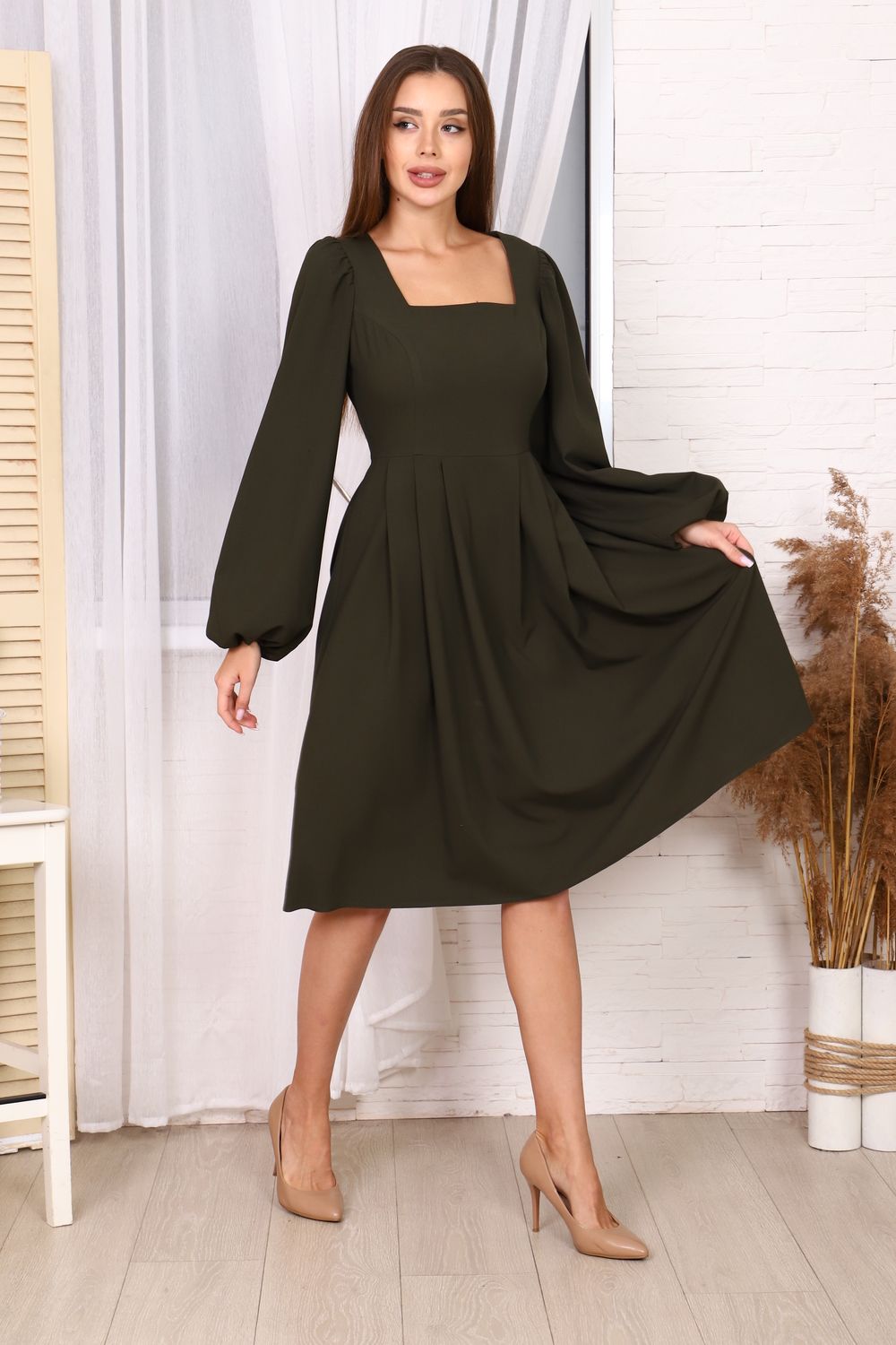 Романтичное платье из однотонной ткани с длинными пышными рукавами и юбкой в складку