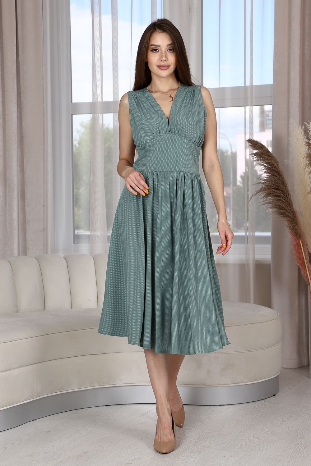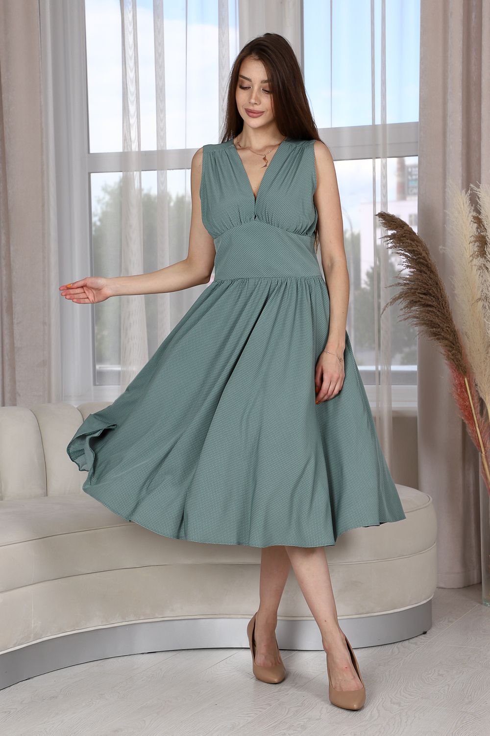 Легкое и романтичное, приталенное платье без рукавов с широкой юбкой-полусолнце - прекрасное решение для жаркого времени года. Ткань в мелкий горошек неизменно пользуется успехом у женщин всех возрастов и комплектаций. Оно тонкое и изящное, в нем вы будете чувствовать себя свободно и комфортно. Платье на высокий рост.
