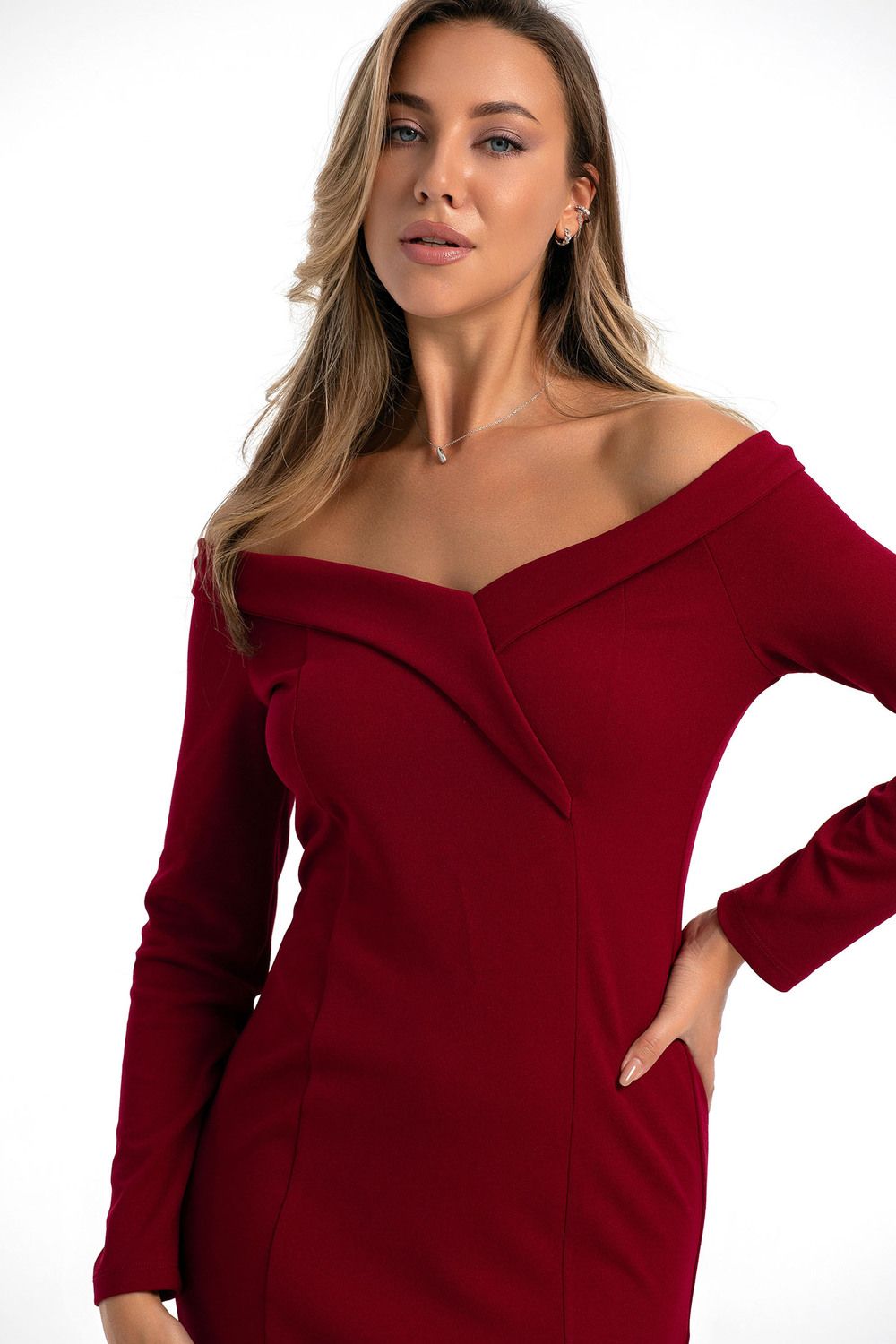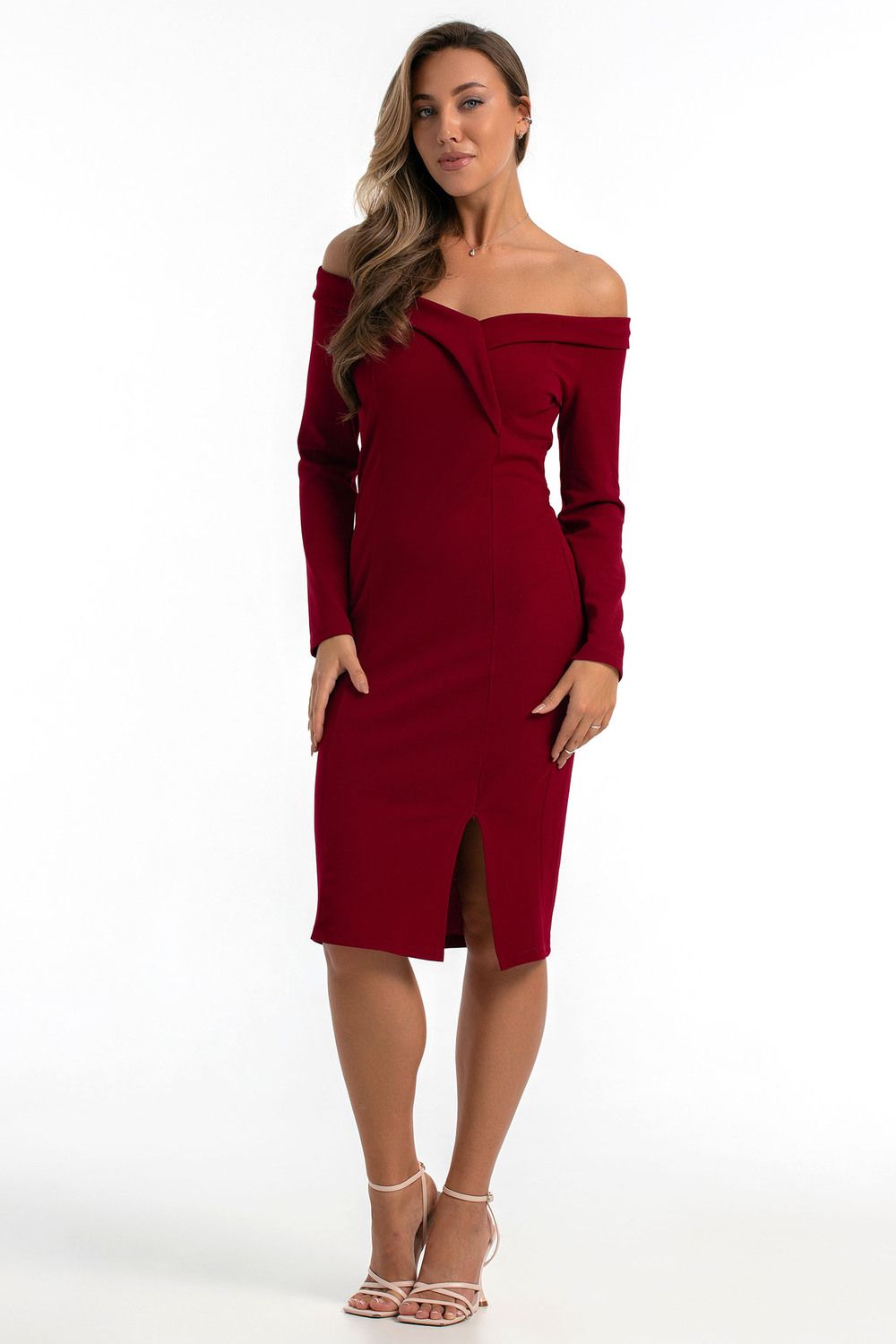 Облегающее платье с открытыми плечами, с разрезом спереди длиной миди сделает вас неотразимой и привлекательной.
