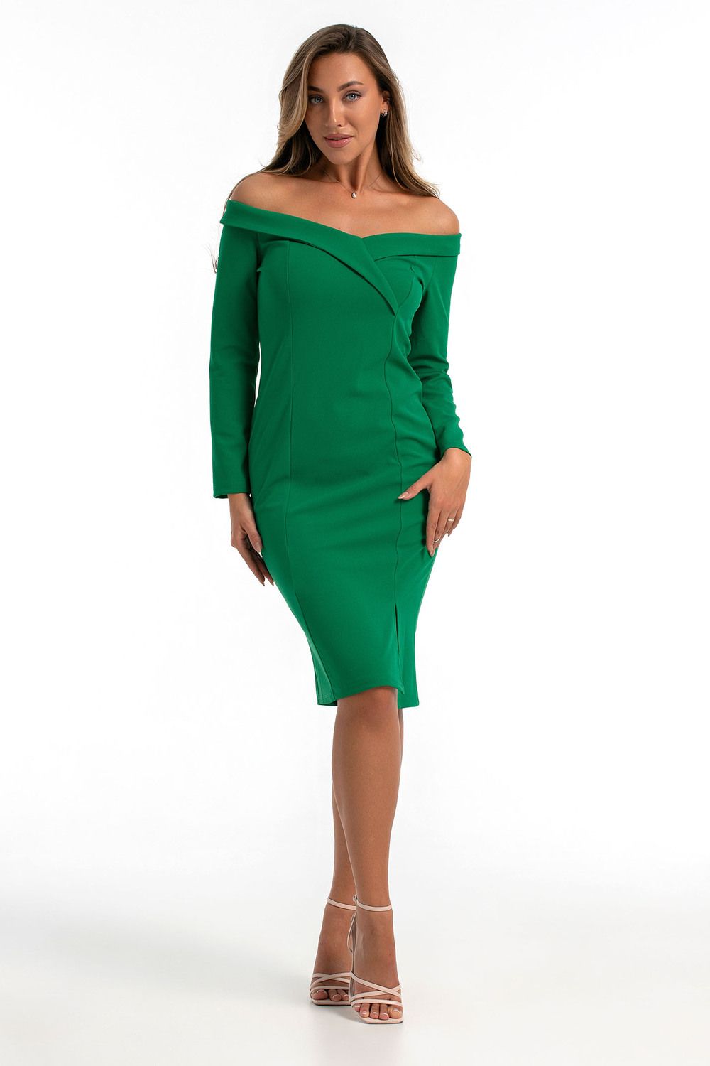 Облегающее платье с открытыми плечами, с разрезом спереди длиной миди сделает вас неотразимой и привлекательной.
