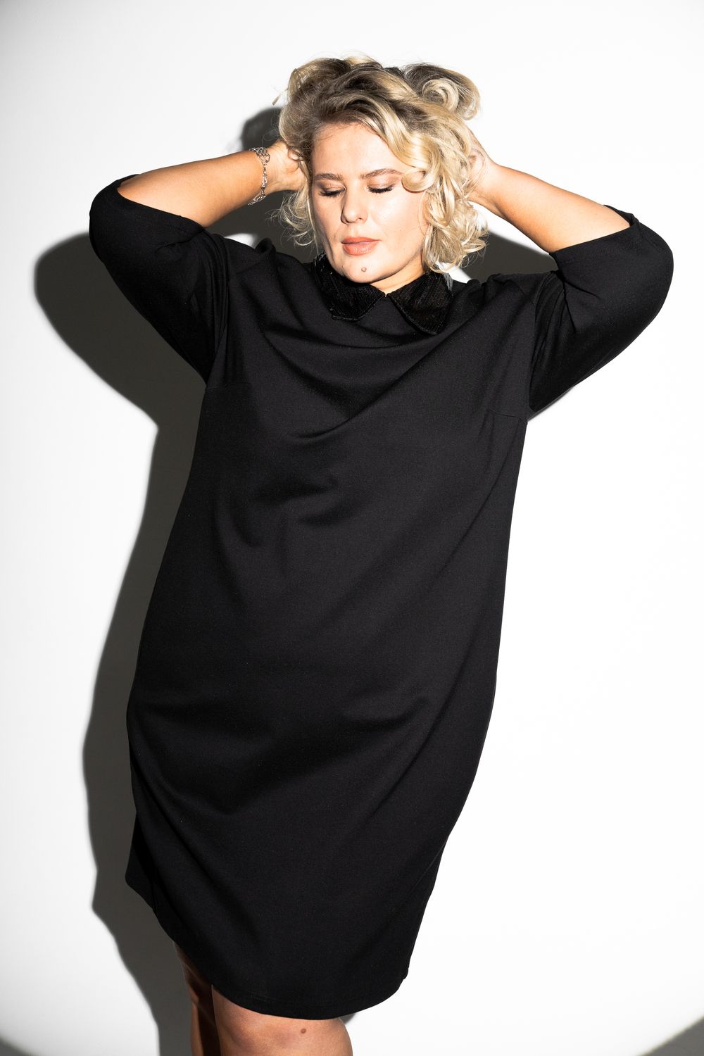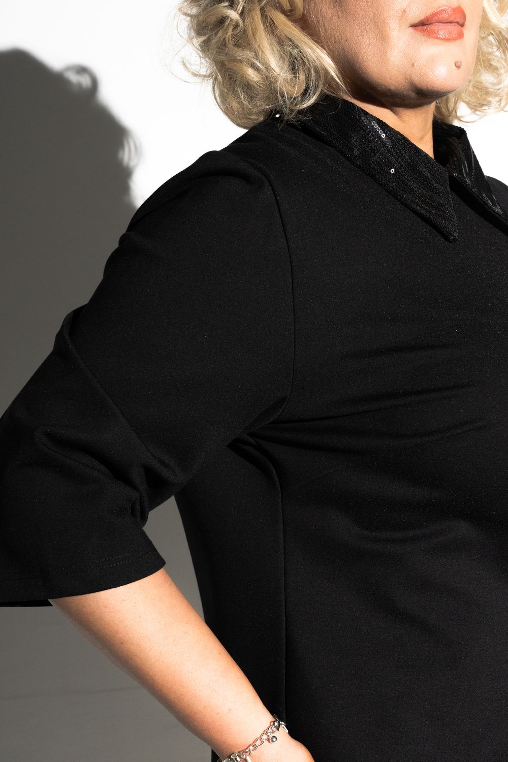 Платье с пайеточным воротом - черный