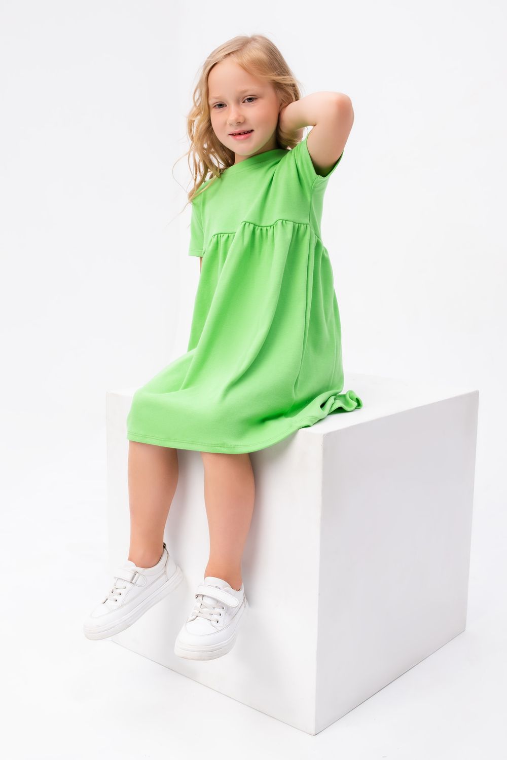 Легкое платье девочки из качественного трикотажного полотна - интерлок. Модель подойдёт и для лета, и для садика. Легко стирается, не вытягивается, не линяет, не закатывается.
