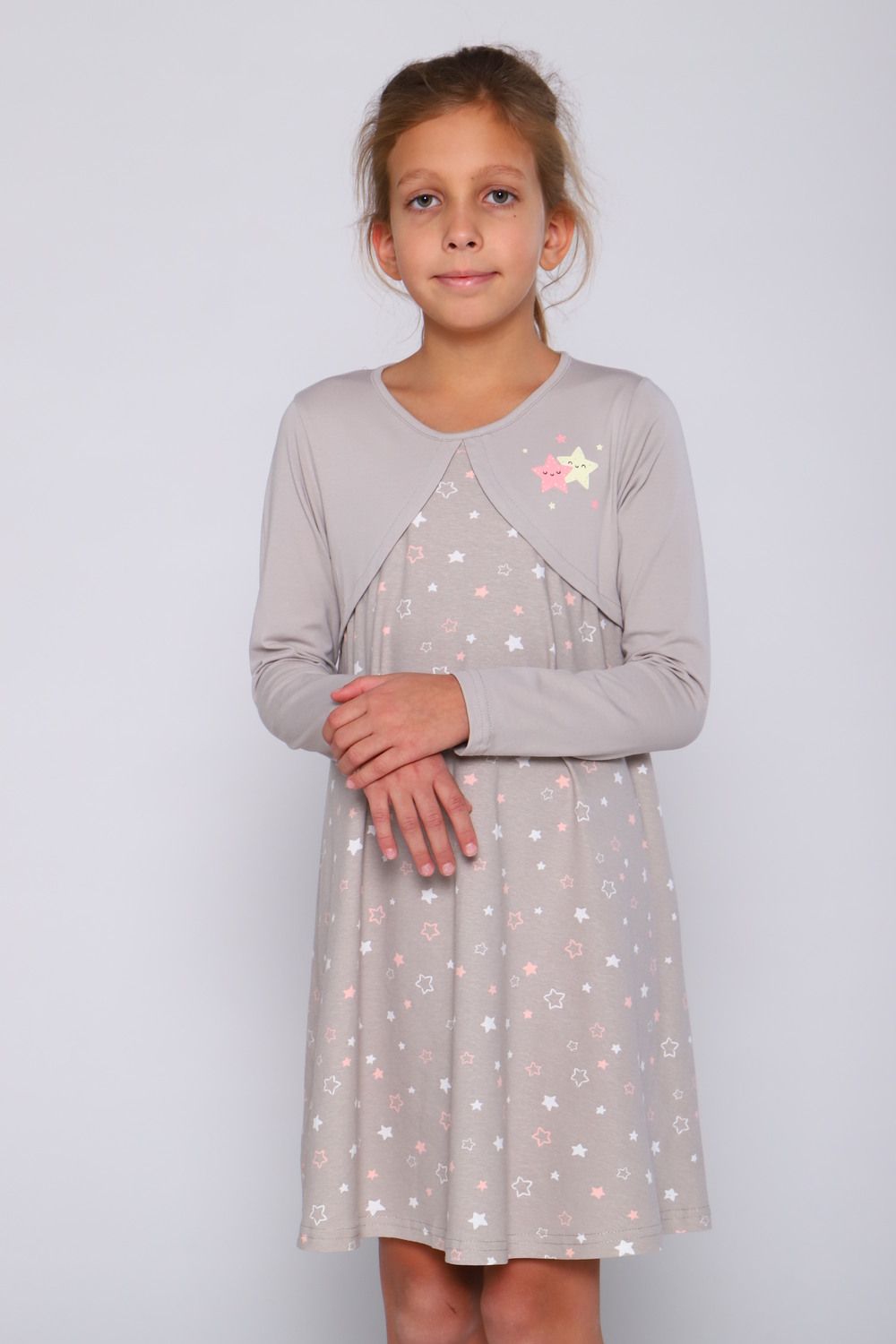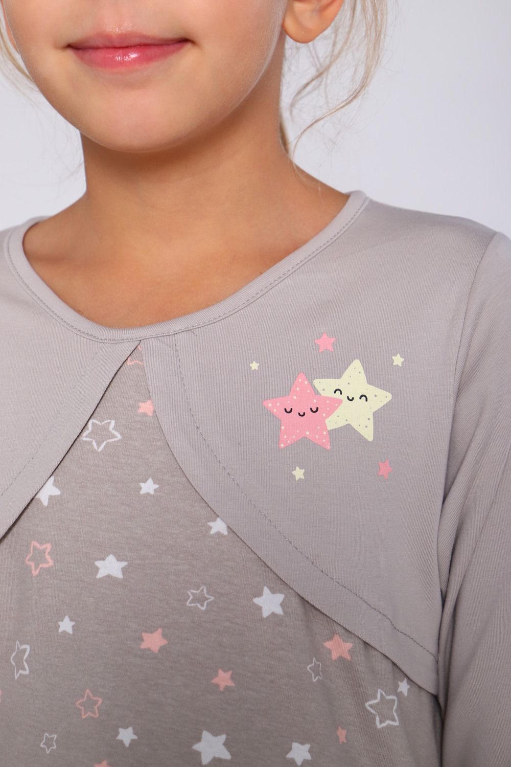Это красивое и нежное платье для девочки с длинным рукавом обязательно оценят маленькие модницы. Платье расширенного силуэта, с втачным рукавом, с центральной застежкой на петлю и пуговицу на спинке. Верх платья выполнен из однотонного полотна, низ платья с рисунком. Спереди отрезные кокетки, имитация болеро. Спинка с отрезной верхней частью. Идеально подходит для повседневной носки дома и в детский сад, также для летних прогулок, для похода в гости или на праздник. Данная модель сшита из качественного трикотажа с добавлением в состав хлопка и лайкры, используемый материал не теряет форму после многократных стирок, мягкий и приятный к телу, устойчив к износу, не закатывается. Для сохранения первоначальных свойств изделия, важно соблюдать рекомендации по уходу.
