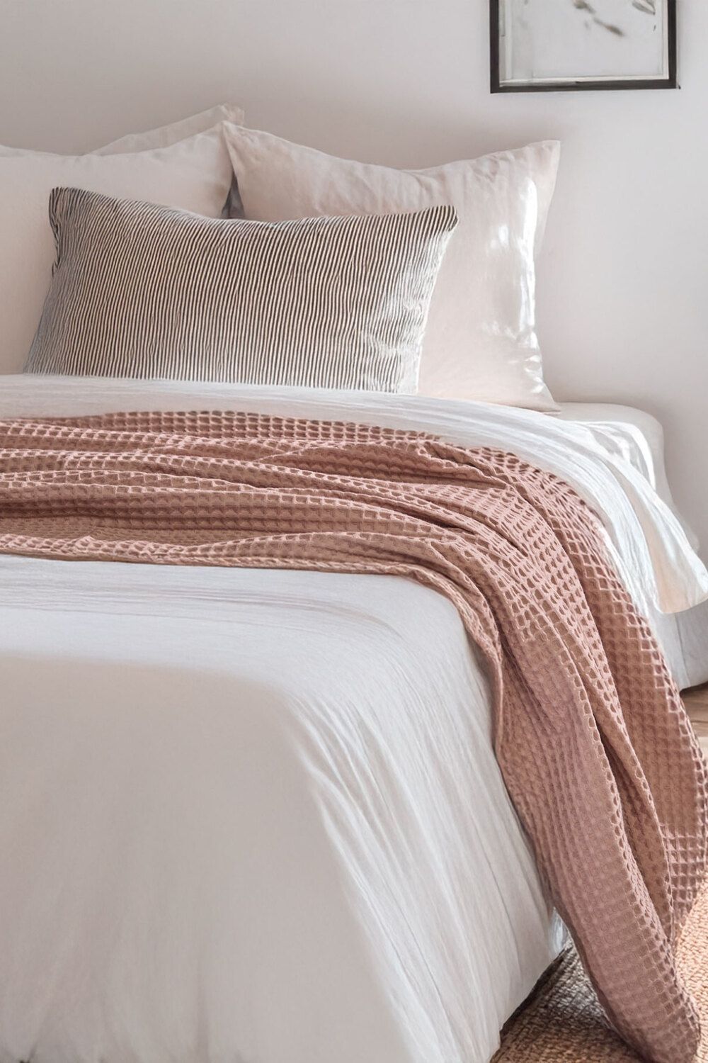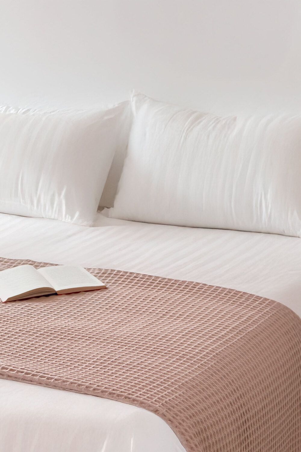 Плед вафельный 1,5 спальный 140х200 см однотонный хлопковый - универсальный элемент постельного белья для взрослых и детей с функциями легкого летнего одеяла, вафельной простыни, мягкого пледа, пляжного или банного покрывала. Плотность вафли - 320 г/м2. Отлично впитывает влагу, свободно пропускает воздух, согревает и сохраняет естественный режим терморегуляции, не вызывает аллергии и раздражения кожи даже у ребенка, обладает мягким массажным эффектом. Такой удобный вафельный плед согреет прохладной ночью, при этом под ним не жарко. Стильное и элегантное вафельное покрывало из вафли с крупными фактурными ячейками будет долгие годы украшать вашу спальню и делать каждое утро добрым.