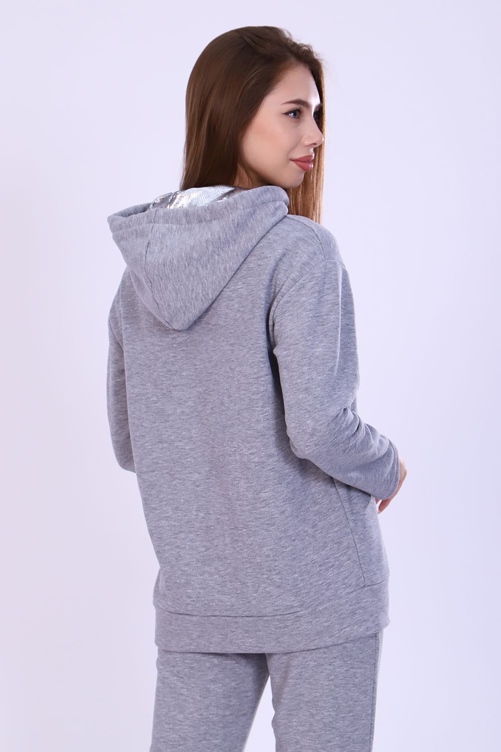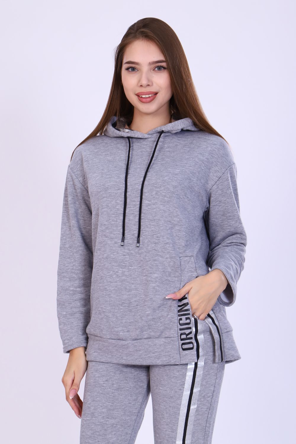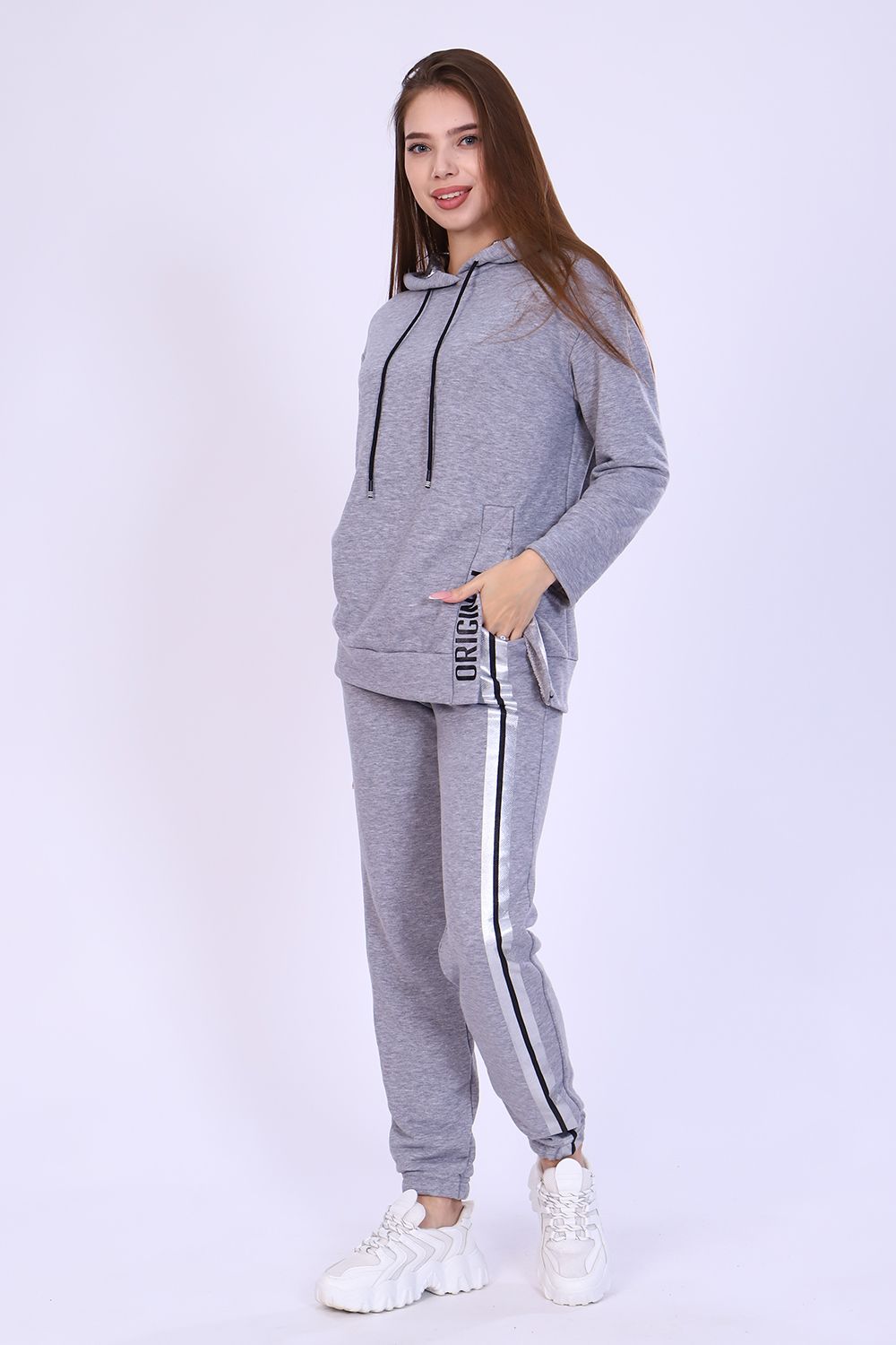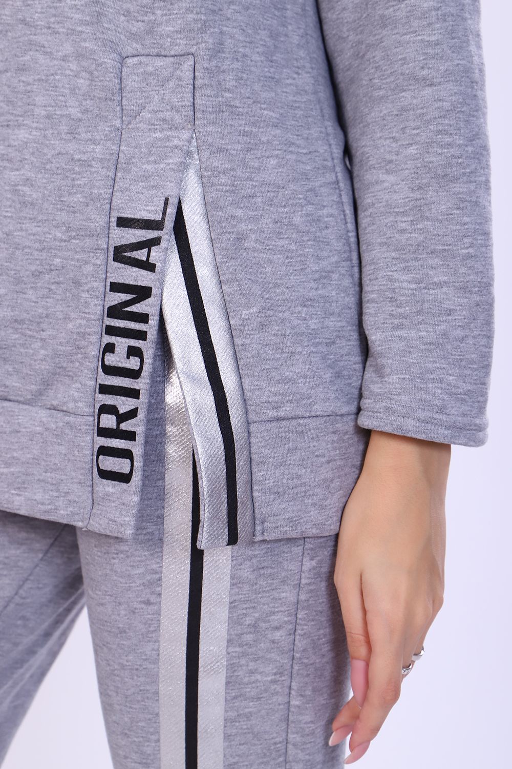 Костюм женский с принтом из футера 3-х нитки петля качества пенье. Свободная толстовка с капюшоном, обработанным внутри стильной тканью бифлекс; спущенная пройма, длинный рукав, низ передней полочки декорирован шлицей и принтом в виде надписи. Брюки прямые, полуприлегающего силуэта на распошитом поясе с удобными карманами, слегка зауженные к низу на резинке, украшены принтом в виде имитации лампаса, Тёплый, стильный костюм сделает ваш образ неповторимым. Это отличный выбор на холодную погоду. Благородные цвета изделия придают ему роскоши и элегантности.