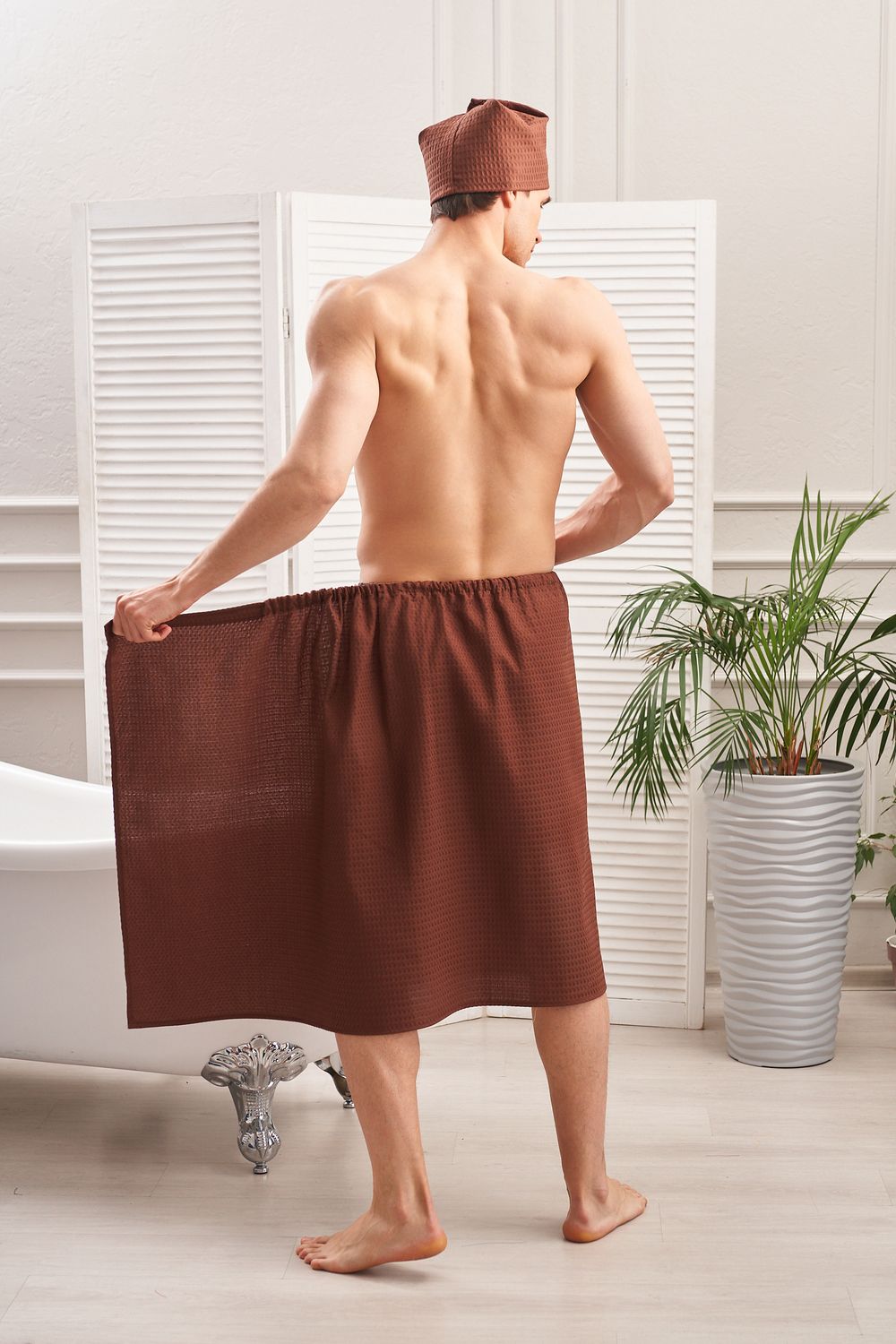 Ну кто не любит попариться в настоящей бане, или насладиться отдыхом и спа-процедурами? Если вы частый посетитель саун и бань, то вам непременно необходим этот великолепный килт банный мужской. Этот набор банный заменит все для бани и сауны, при этом в комплект входит стильная чалма в подарок. Этот килт и тюрбан будут служить как халат и банная одежда для мужчин, для детей и для мальчиков, как полотенце банное на резинке и даже как парео для пляжа. Текстиль банный вафельный - это чистый хлопок, вафельное полотно высокой плотности 240 г/м2 прекрасно впитывает влагу. Поэтому вафельные килты на резинке намного лучше впитывают влагу, чем махровый халат или полотенце и при этом он намного компактнее и занимает немного места. Килт вафельный размером 75х150 см идеально и надежно держится на поясе. Комфортные и удобные накидка и шапочка станут вашим незаменимым спутником в бане, сауне, спа-салоне и просто в душевой спортивного клуба.