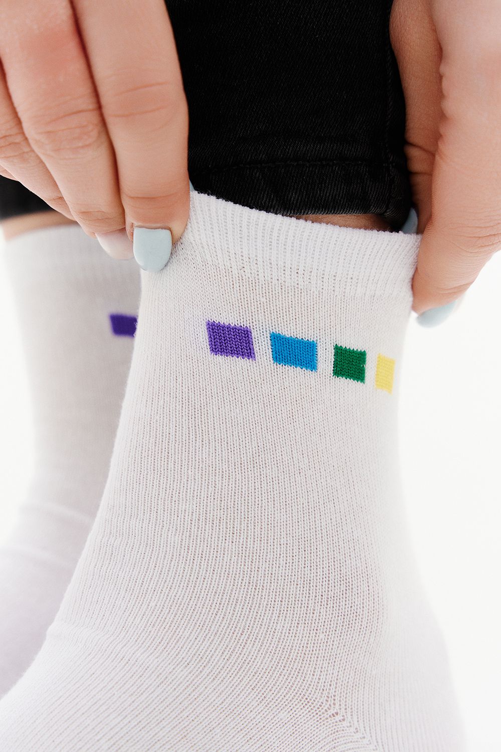 Подарочный набор "СЕМИЦВЕТ". Представлен в 2 цветах. Женская футболка с принтом и носки с принтом подчеркнут вкус и чувство стиля. Подарочный набор упакован в крафтовую коробку с тематическим принтом. Футболка из хлопка и лайкры подойдет для повседневной носки и для выхода из дома. Футболку будет удобно носить навыпуск или заправлять, отлично сочетается с юбкой, брюками с джинсами, а также можно надеть под пиджак, жакет или кардиган. Футболка будет отлично сидеть практически на любой фигуре. Носки подойдут к любой одежде и обуви. Изготовлены из высококачественного хлопка, который отлично впитывает влагу, пропускает воздух и подходит даже для самой чувствительной кожи. Хорошо сохраняют форму и цвет, устойчивы к истиранию. Подарочный набор "СЕМИЦВЕТ" будет отличным подарком второй половинке, близкой подруге, маме или сестре. На моделях 42 и 48 размеры. Размер носков 23-25.
