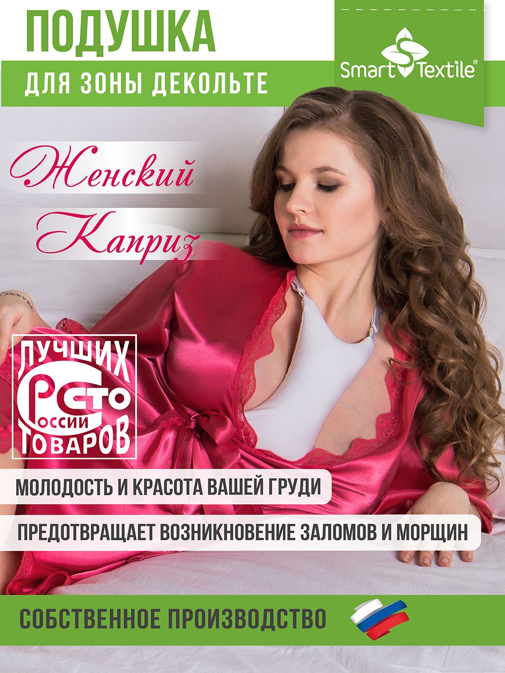 Инновационная разработка дизайнеров и ученых – подушечка для зоны декольте «Женский каприз», - была по достоинству оценена представительницами прекрасного пола за возможность позаботиться о красоте и здоровье груди и области декольте простым и комфортным способом. За свою уникальность, эффективность и доступность подушечки для декольте «Женский каприз» стали победителями конкурса "100 лучших товаров России" . Подушечки для декольте серии «Полулён» изготовлены из натурального льняного материала, отличающегося прочностью, воздухопроницаемостью, способностью впитывать влагу и быстро ее отводить. Полульняная ткань (лён+хлопок) – гигиеничная, гипоаллергенная, приятная к коже. Подушечка фиксируется с помощью удобных бретелек, не вызывает никакого дискомфорта при использовании, во время сна на боку или на животе. Полезная привычка спать с удобным аксессуаром, поддерживающим грудь, обеспечит не только отсутствие морщин в области декольте, но и профилактическое воздействие против заболеваний женской груди, связанных с изменениями в молочных железах. Использовать подушечку для декольте полезно и удобно во время беременности и лактации, когда грудь особенно нуждается в заботе и поддержке. Рекомендовано использование и в период реабилитации после операционных вмешательств или косметологических процедур.
