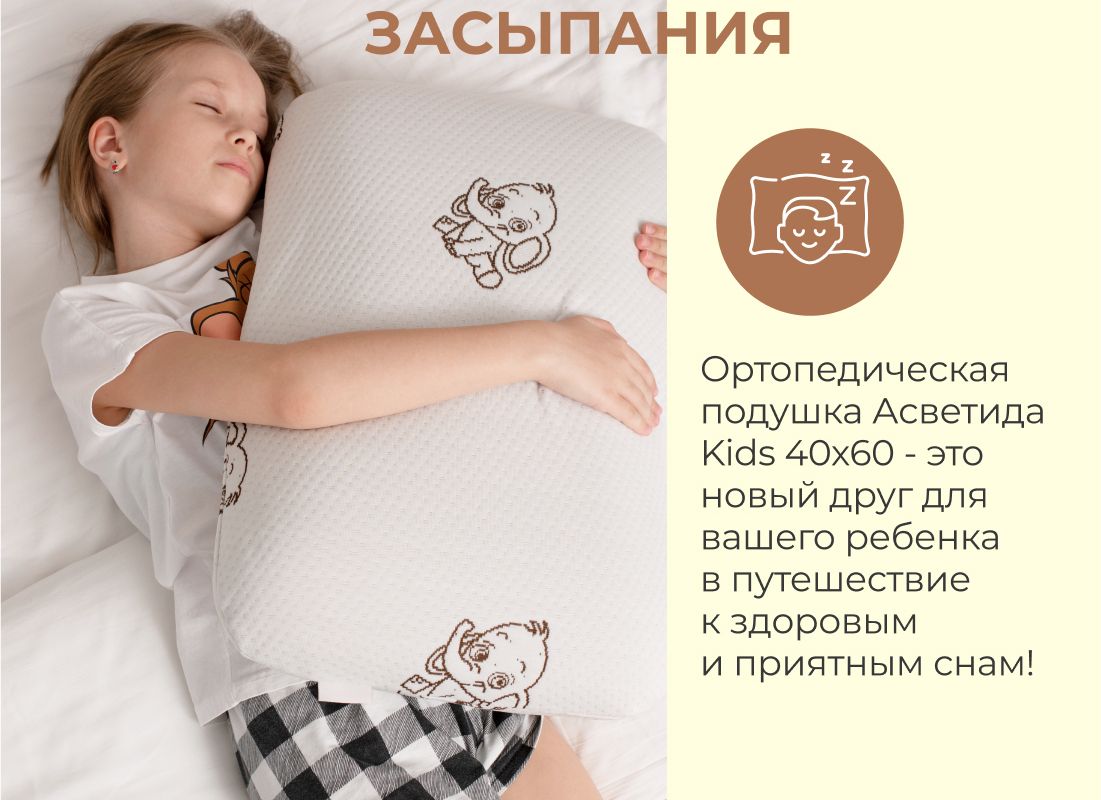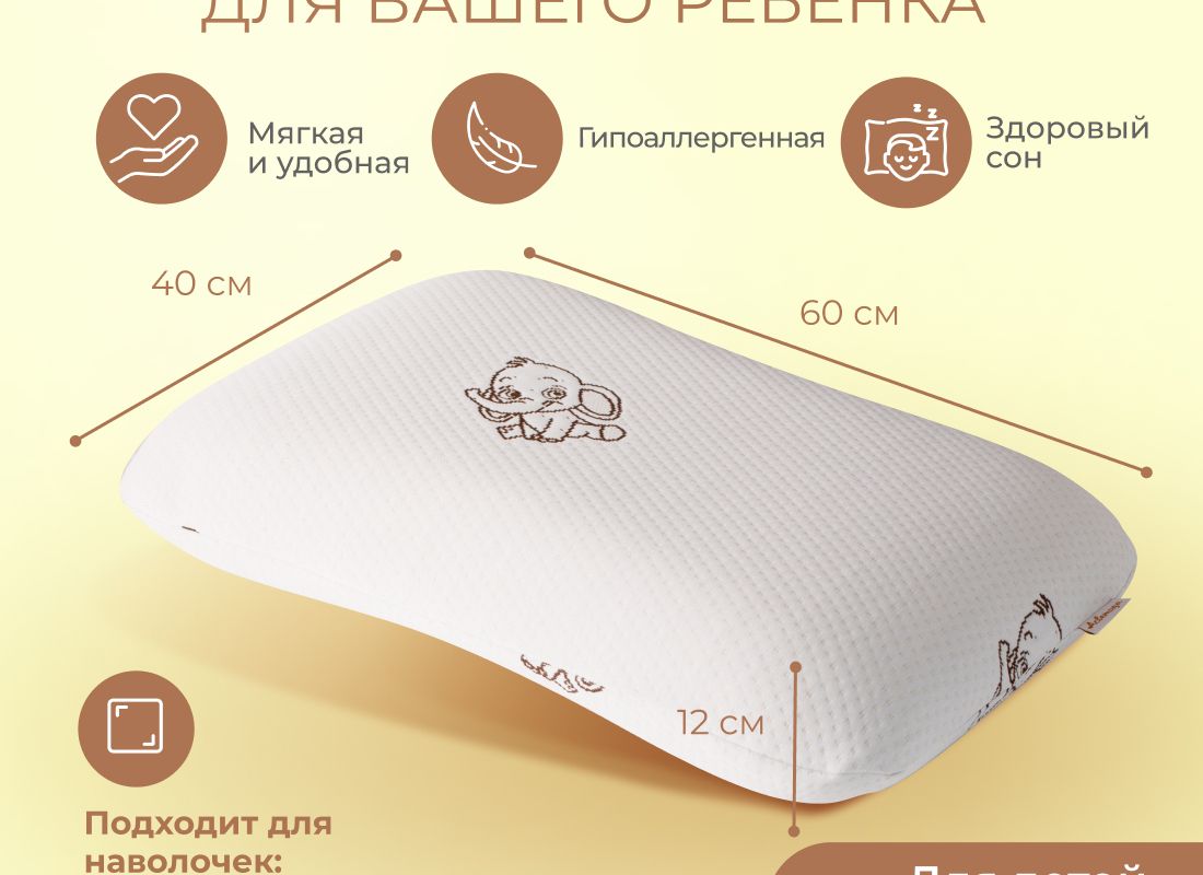 Подушка Асветида 40х60х12 Kids(детская) с эффектом памяти (мягкая)